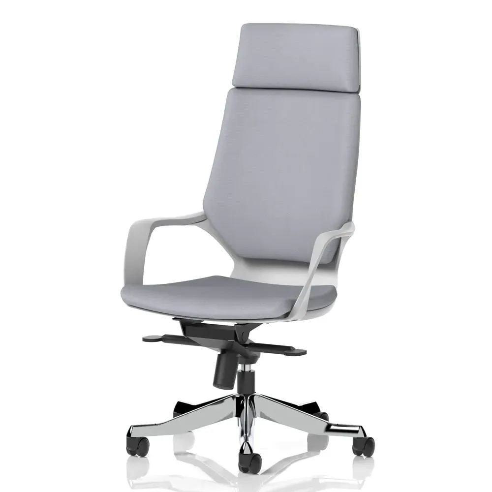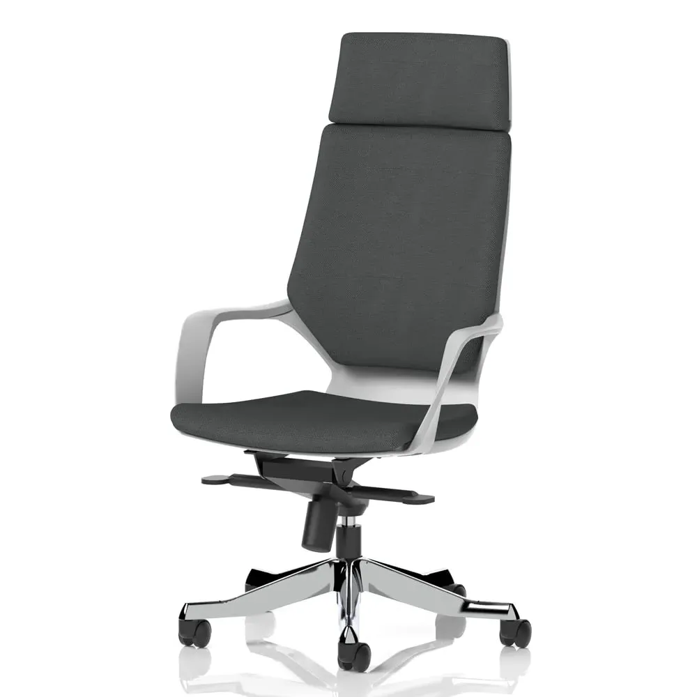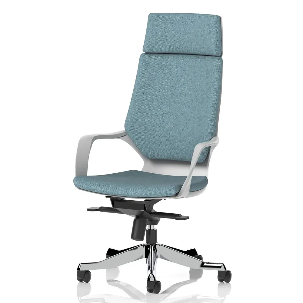 The Xenia High Back Office Chair combines ergonomic support with breathable fabric upholstery in black. Its high back design and padded armrests provide superior upper body support, while the aluminium and nylon frame ensures durability. The chair features gas height adjustment, knee tilt mechanism, and weight tensioner for personalised comfort, with integral lumbar support reducing fatigue during extended use. W64 x D65 x H122-130.5 cm.