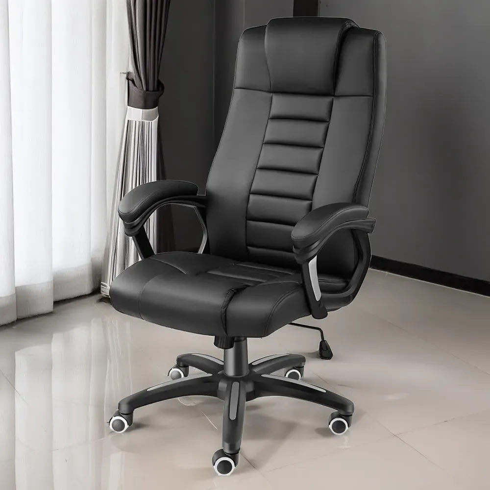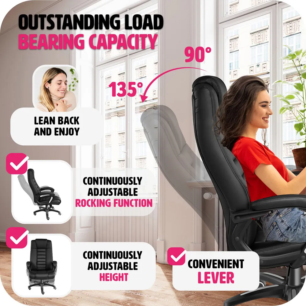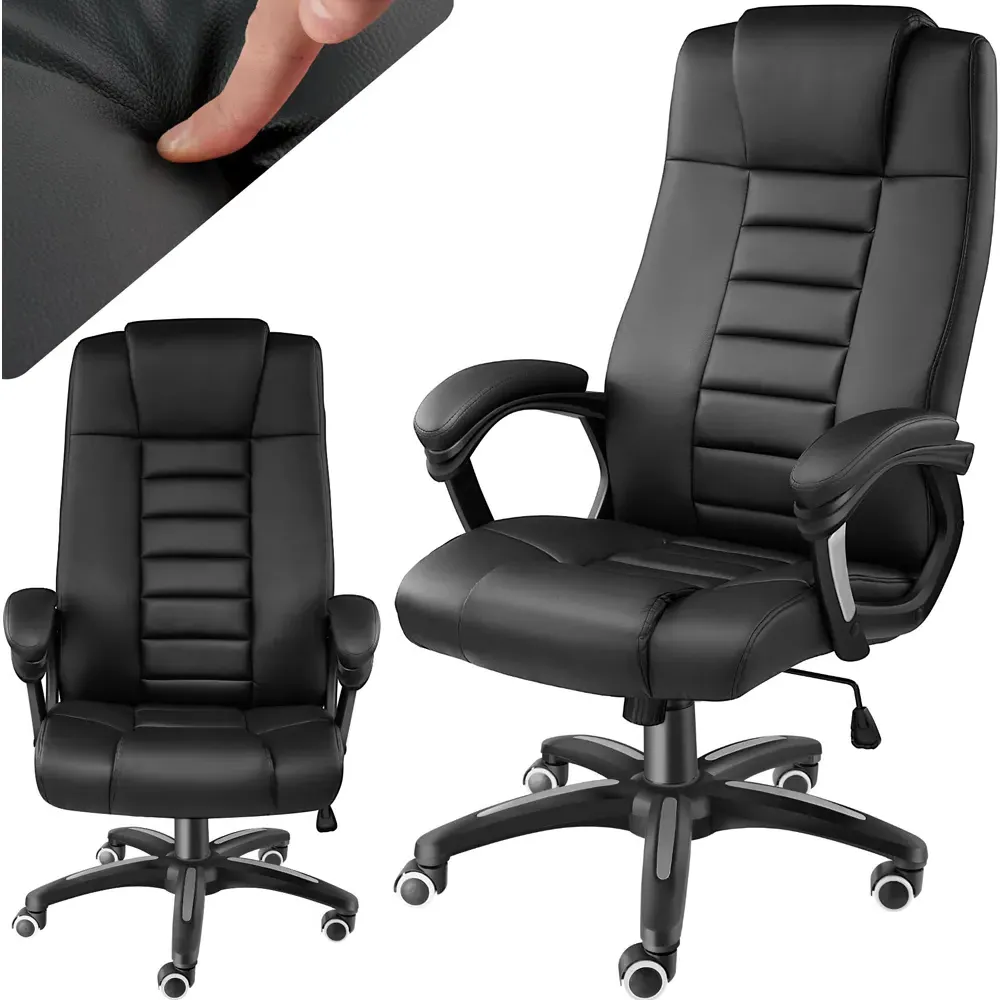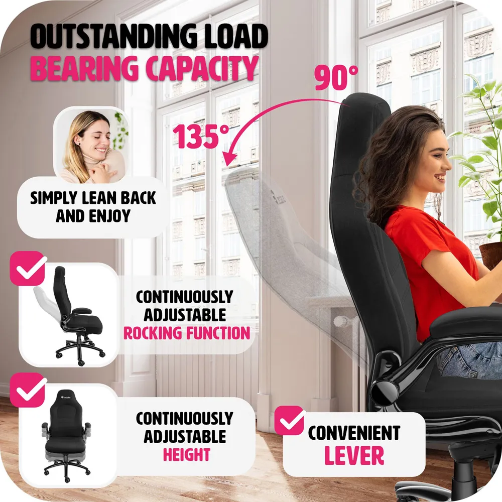 This beautiful office chair from tectake looks great and fits seamlessly alongside other pieces of furniture, be it at the workplace or in your home. Featuring a comfy seat, this chair is easy to store under the desk. Avoid cramps, tense muscles and fatigue and pay attention to your physical well-being at work with this office chair which provides high levels of seated comfort. This swivel chair is 360° rotatable and height-adjustable and is covered with a pleasant, synthetic mesh fabric which will mould to support your spine. The chairs security base with five double wheels offers great stability and allows you to glide around behind the desk. Whether in front of the office computer or just relaxing at home, this office chair by tectake will provide you with comfort and style.