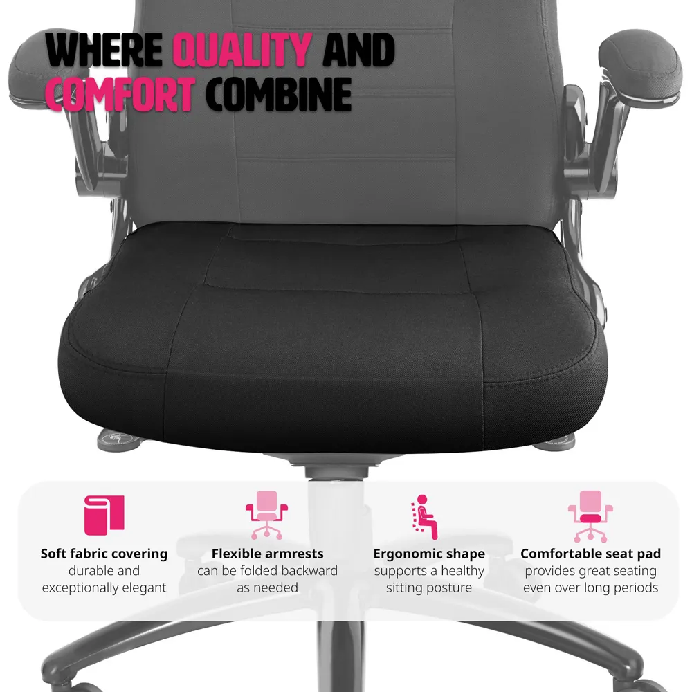 The Patrick office chair offers ergonomic support with its 360° rotation and stepless height adjustment. Its synthetic mesh fabric moulds to support your spine, while the comfy padded seat provides high levels of seated comfort. The chair features a security base with five double wheels for stability and smooth movement around the desk.