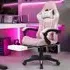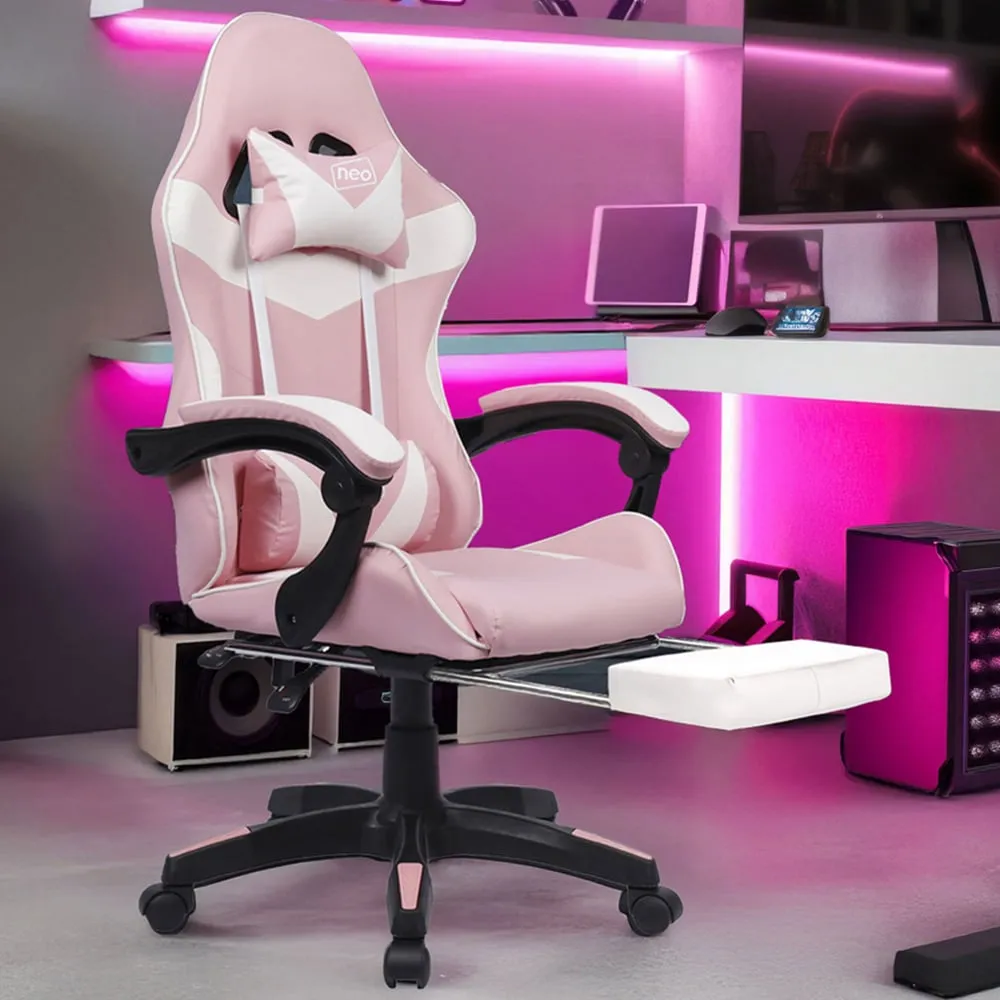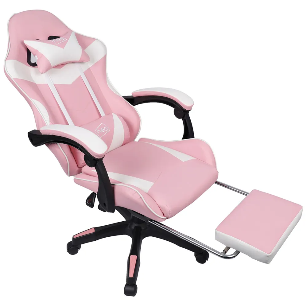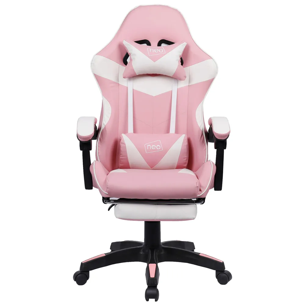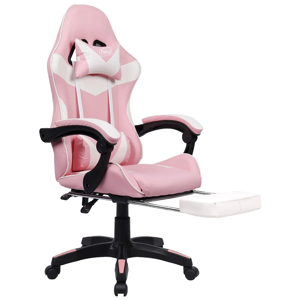 The deluxe Neo branded fully recliner racing-style white computer office gaming chair is made with high quality PU leather. The computer office gaming chair combines multiple adjustable features, luxurious materials and Ergonomic design for comfort, with lumbar and headrest support. The office chair supports a new level of comfort for gaming, studying and working office environment. Colour: Grey.