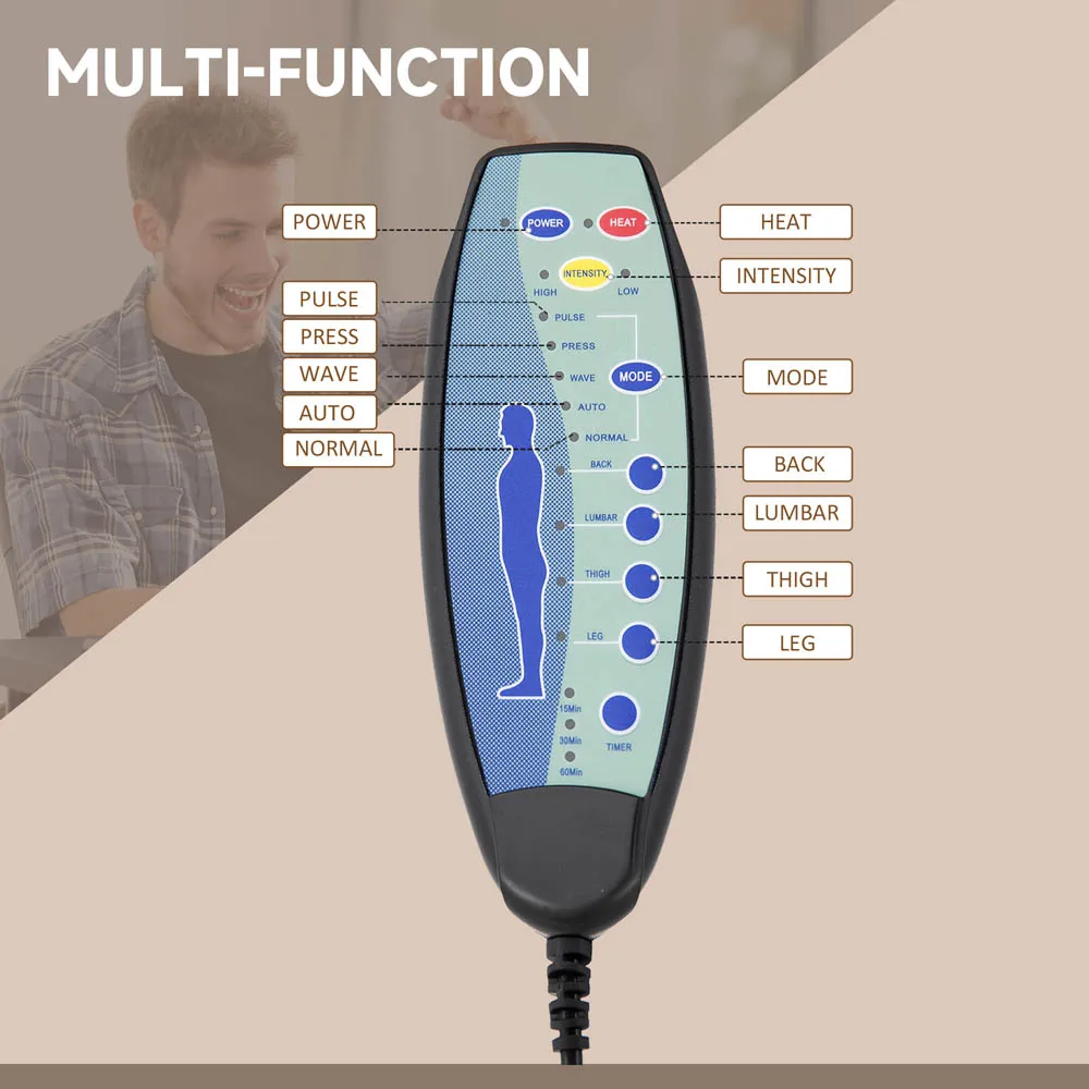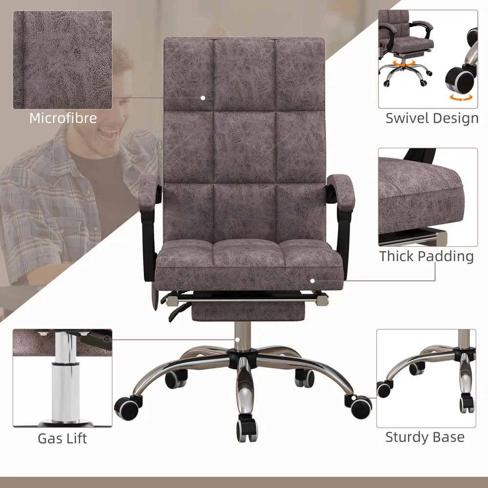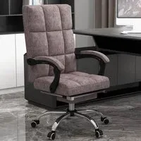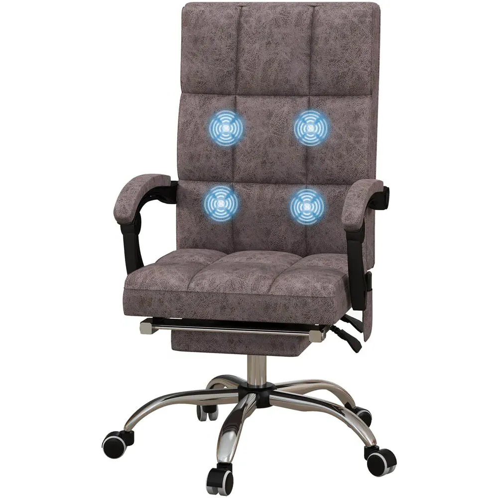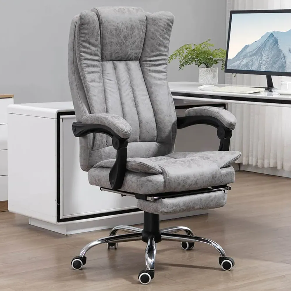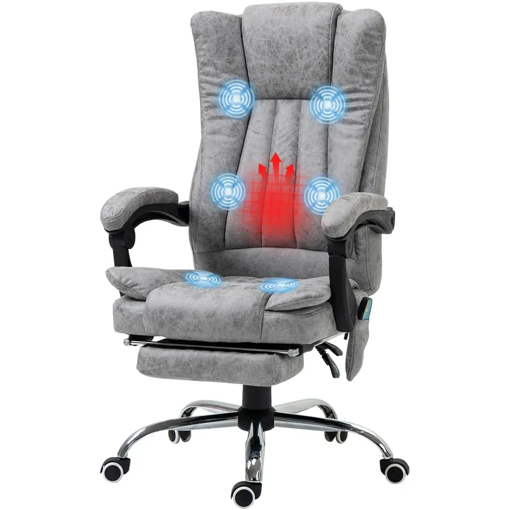 The office chair features six back massage points with lumbar heat for customizable comfort. Its 155° reclining back and footrest allow positioning to your preference, while the double padded design ensures support. The tall back and armrests provide additional comfort for extended use.