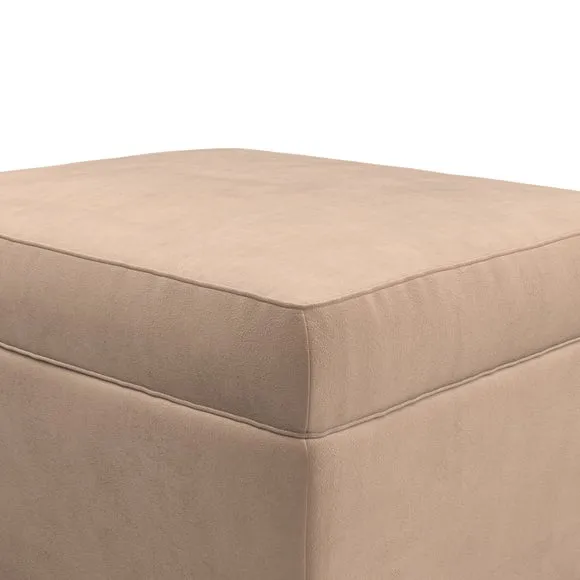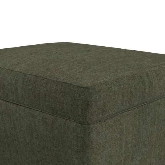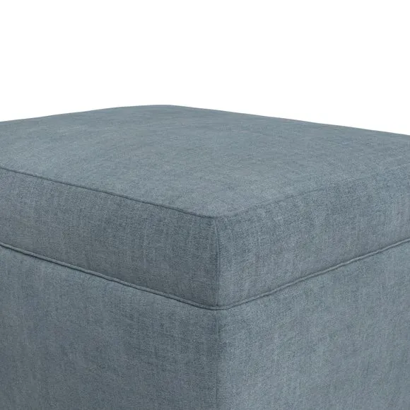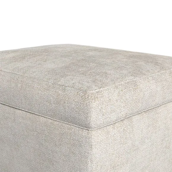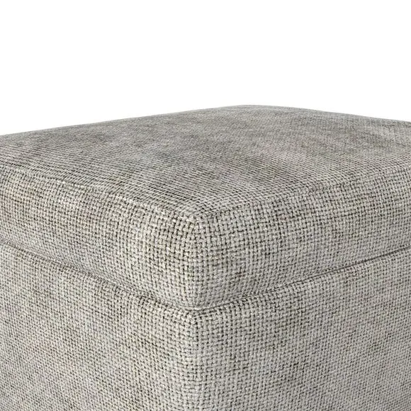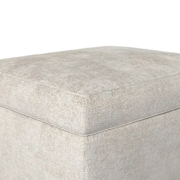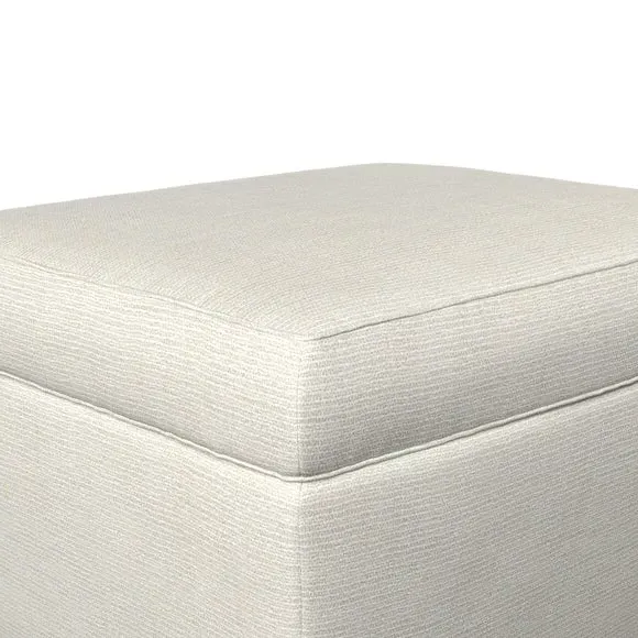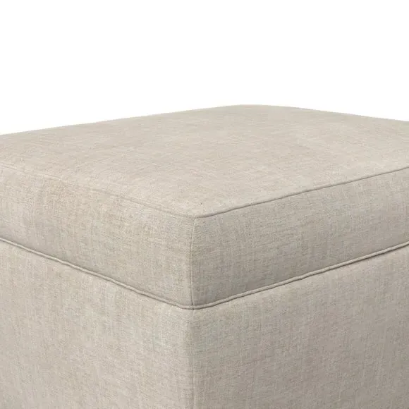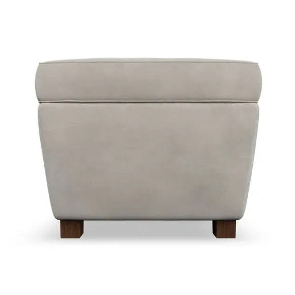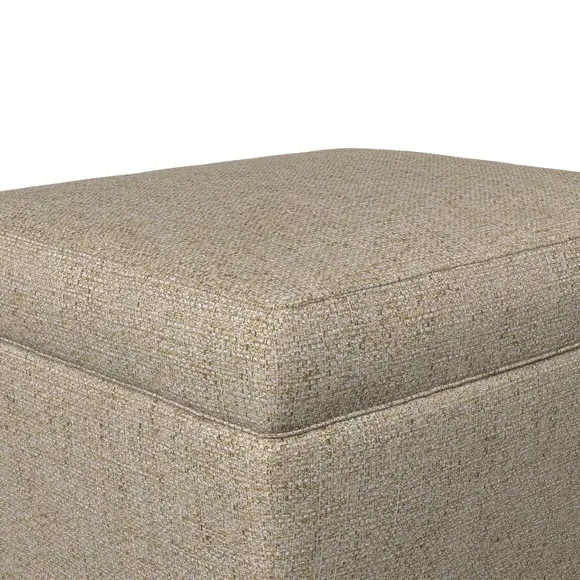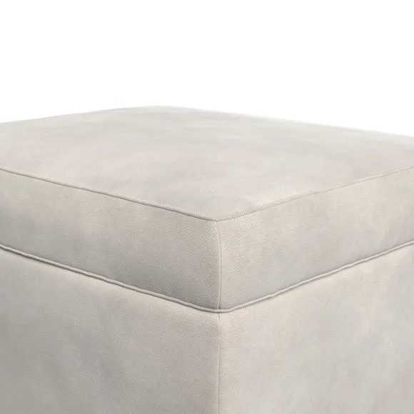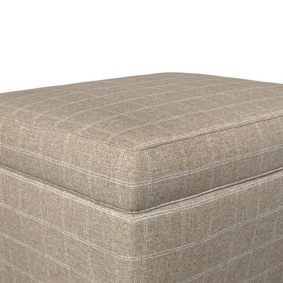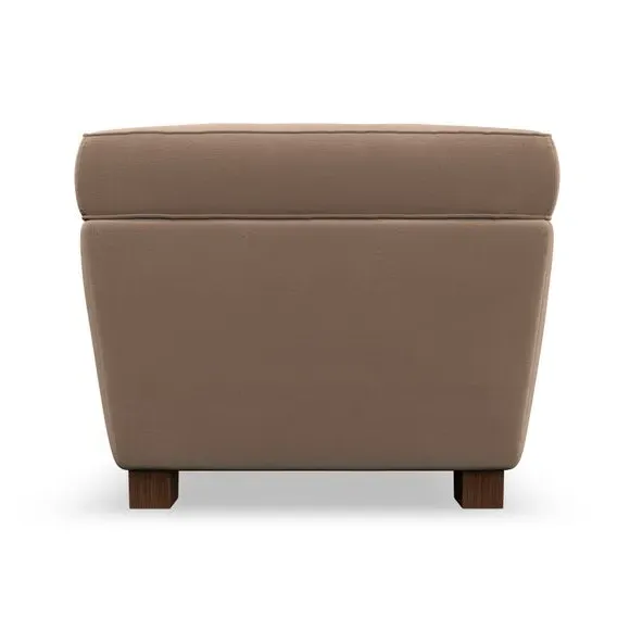The footstool combines comfort and customization with its padded top available in multiple fabric choices. Featuring elegant turned hardwood legs that deliver both stability and refined aesthetics, this versatile piece serves as a footrest or extra seating. The made-to-order construction allows selection of leg finishes and filling options.