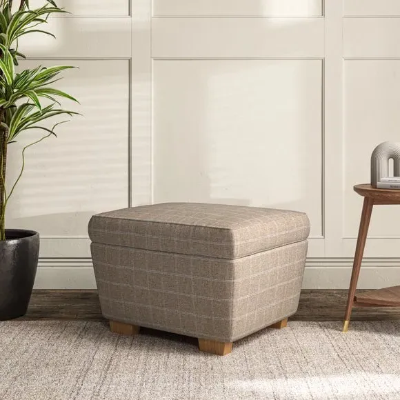 * Made to Order footstool* Wooden legs* Choose leg colour, filling and fabric type and colour This footstool features a comfortable, cushioned top that can be tailored to your preferences with a selection of fabrics and colours. The elegant turned hardwood legs, available in two finishes, provide a sturdy and stylish foundation. Whether used as a footrest or additional seating, the Arundel Footstool adds a touch of refinement to any room.