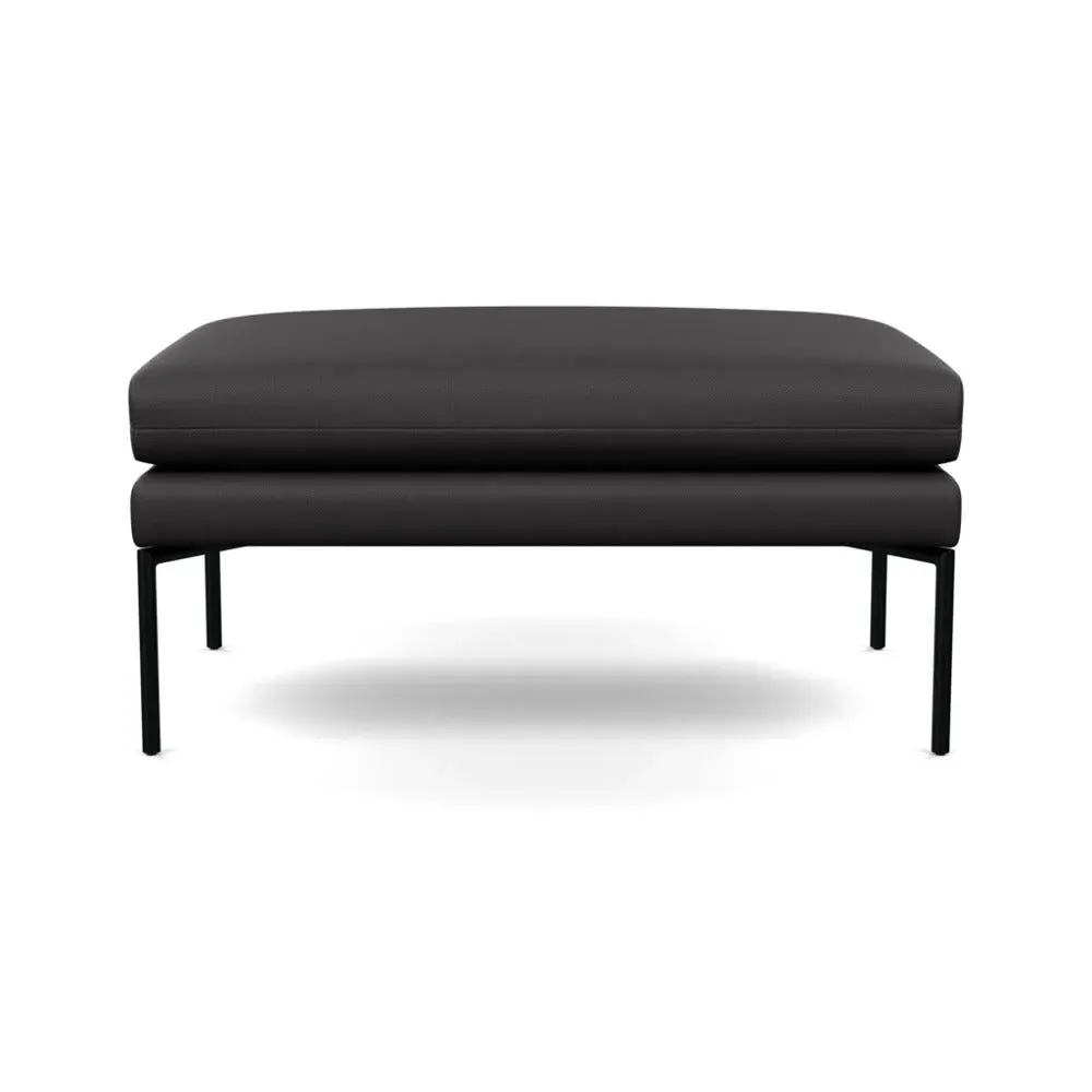 The ottoman provides contemporary Italian design with clean lines and astute attention to detail. Its pleated cushion creates an elegant silhouette, while the soft cotton upholstery offers comfortable seating. The black metal legs add modern appeal, and the compact yet generous proportions deliver both style and functionality.