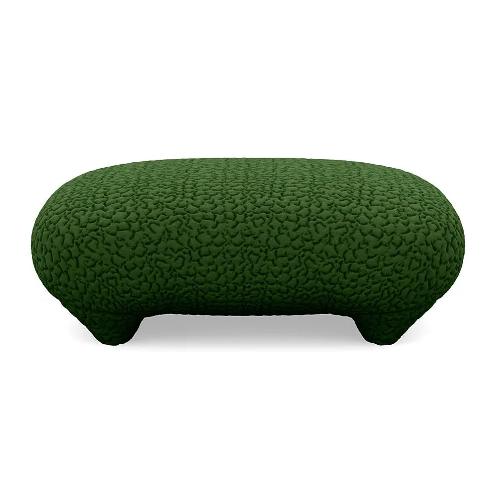 The footstool offers distinctive comfort with its domed surface created by strategic stitching points. Its tubular steel and wire mesh frame provides organic support, while layers of different density foam add inviting bounce. The stretchy fabric upholstery combines durability with flexibility, and the structured design ensures reliable stability.