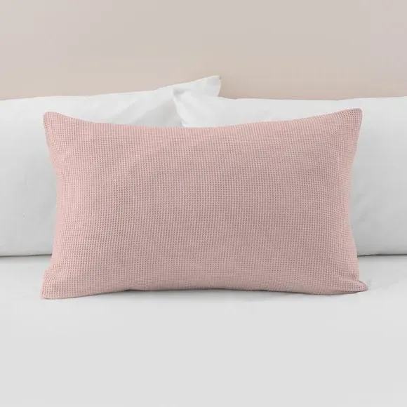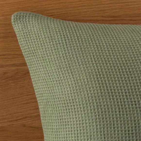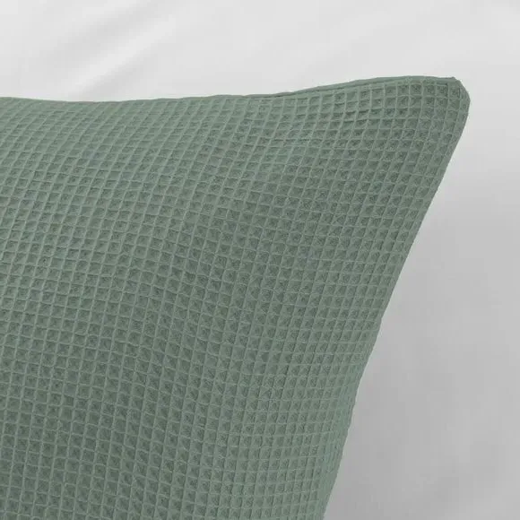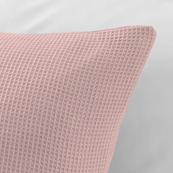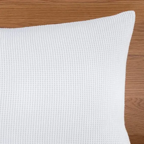 The pillowcase pair offers contemporary comfort with its textured waffle weave construction, crafted from a blend of recycled polyester and cotton. The relaxed weave provides easy-care properties while maintaining breathability and softness. Its wrinkle-resistant texture eliminates the need for ironing, and the sustainable materials combine durability with environmental responsibility.