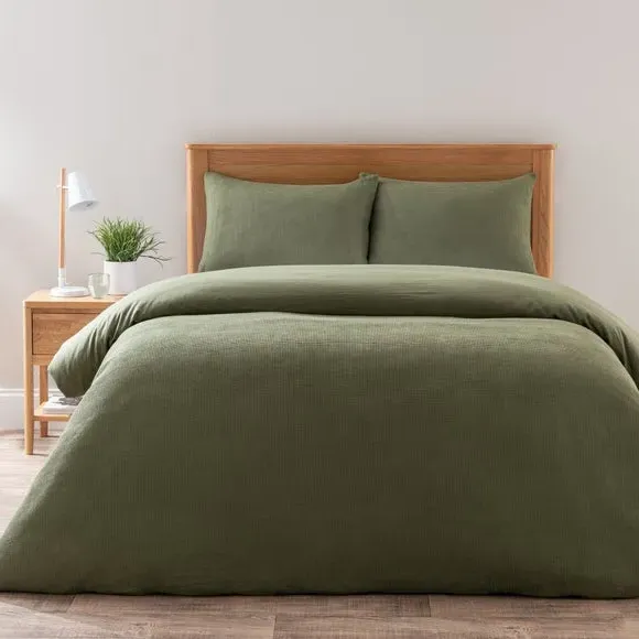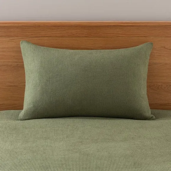 * Made from recycled polyester and cotton* Standard style pillowcase* Textured waffle weave* Coordinating duvet cover and pillowcase sets available to purchase separately Give your bedroom a relaxed contemporary look by layering your bedding with the Alston Waffle pillowcase range. The blend of cotton and polyester (both recycled fibres) combines easy to care for properties, comfort and sustainability. The relaxed waffle weave negates the need for ironing making it the perfect choice for busy lives. Check out our other fashionable colours in this range. This product is OEKO-TEX MADE IN GREEN certified, meaning it was produced in OEKO-TEX S Te P certified factories - verifying environmental, social, and chemical standards in the facility. It has also been certified to OEKO-TEX STANDARD 100, the original safety standard for everyday confidence. To offer full visibility, the production stages throughout the supply chain can be traced.