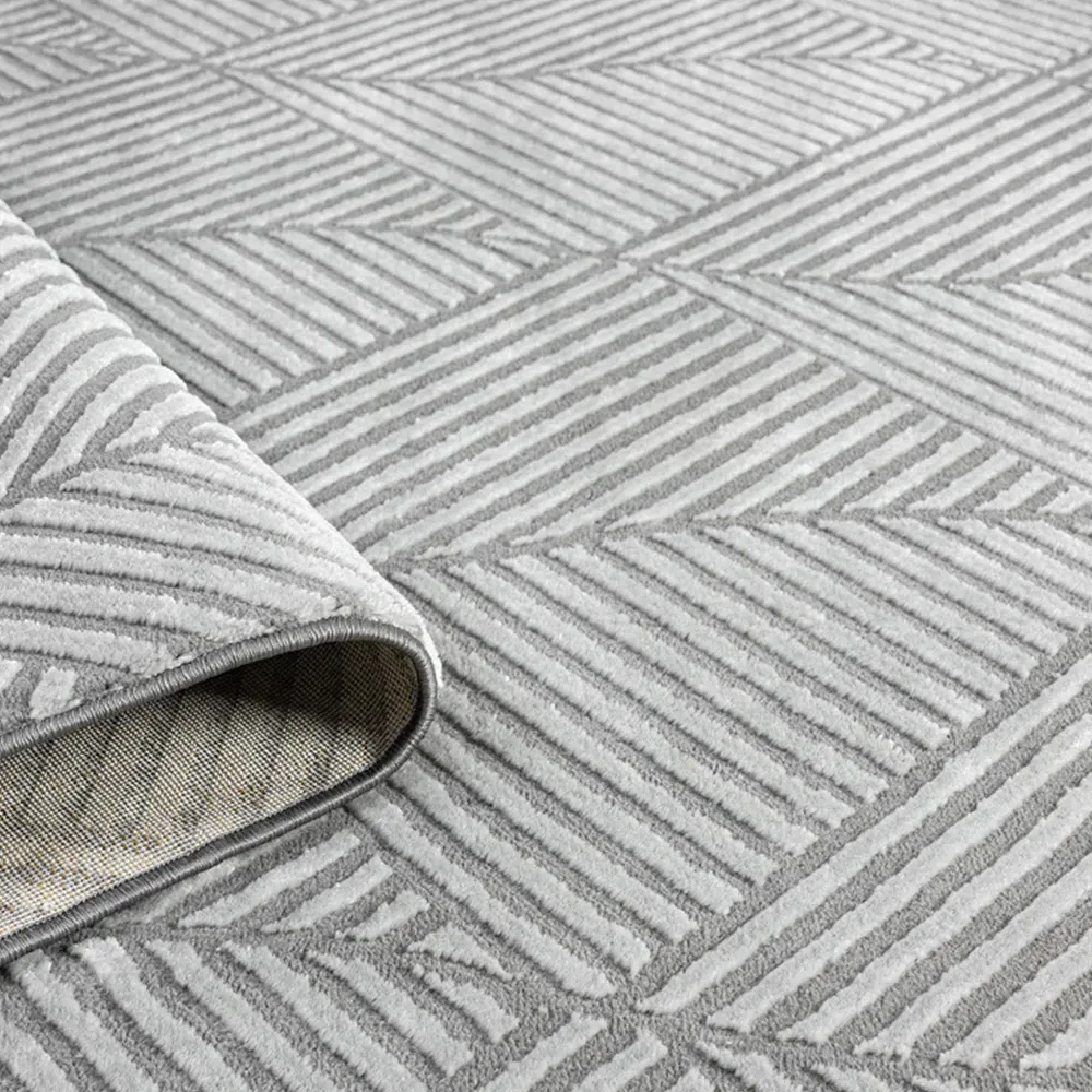 Add a modern touch to your home with the Vellure Modern Indoor Rug, expertly designed for both style and practicality. Made from a 50% polypropylene and 50% polyester blend, this rug delivers the perfect balance of softness and durability for everyday living. The 11mm embossed cut-shrink pile not only offers a luxurious underfoot feel, but also creates a subtle 3D texture with a refined metallic sheen, giving your space a polished, designer look. A sturdy natural jute backing ensures added stability and keeps the rug securely in place. It’s also easy to maintain, making it a perfect choice for busy homes.