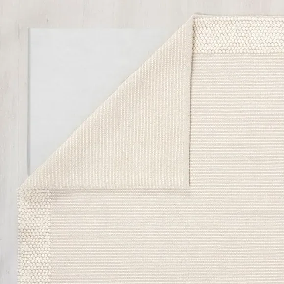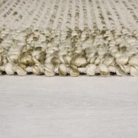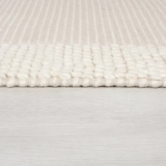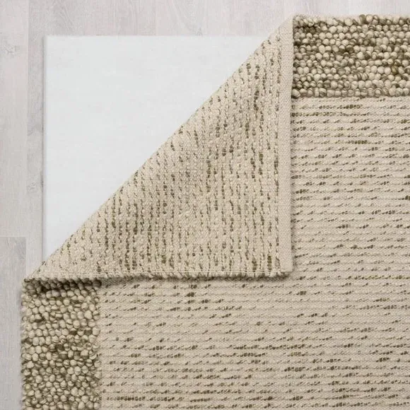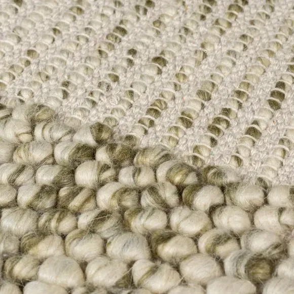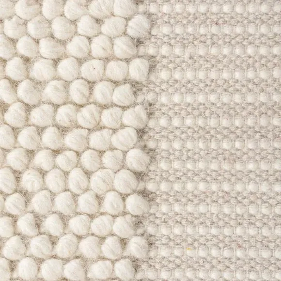 The Border Rug combines a distinctive bobbled texture with semi-plain border detailing for subtle styling. Its 70% wool composition provides natural sound and warmth insulation, while the hand-woven flatweave construction ensures durability. The latex backing adds stability and grip, and the artisan craftsmanship delivers authentic quality with characteristic wool fiber shedding that reduces over time.