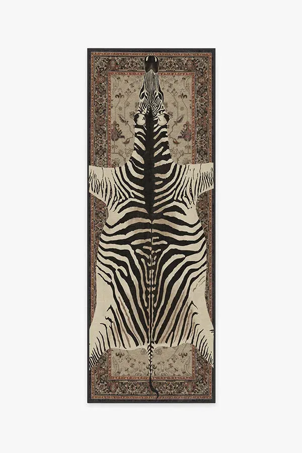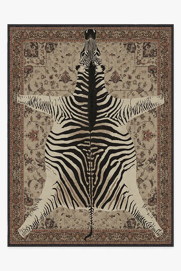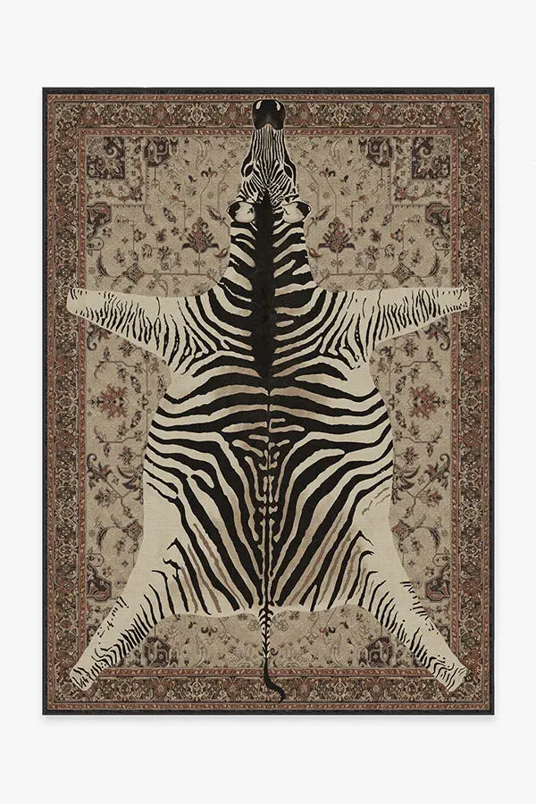 Dare to be different. Our Iris Apfel On Safari Hazel Rug features an intricate Persian-inspired design layered with large animal imagery for a sense of sophisticated eclecticism. The warm tonal tans of this piece call back to the zebra's homeland of the African grasslands and savannah woodlands. Made from our water-resistant, stain-resistant, and machine-washable low-pile Chenille material. 60x90 | Machine Washable Area Rug | Kid & Pet Friendly | Indoor Rugs | On Safari Hazel Flatwoven Rug by Iris Apfel Brown | Ruggable