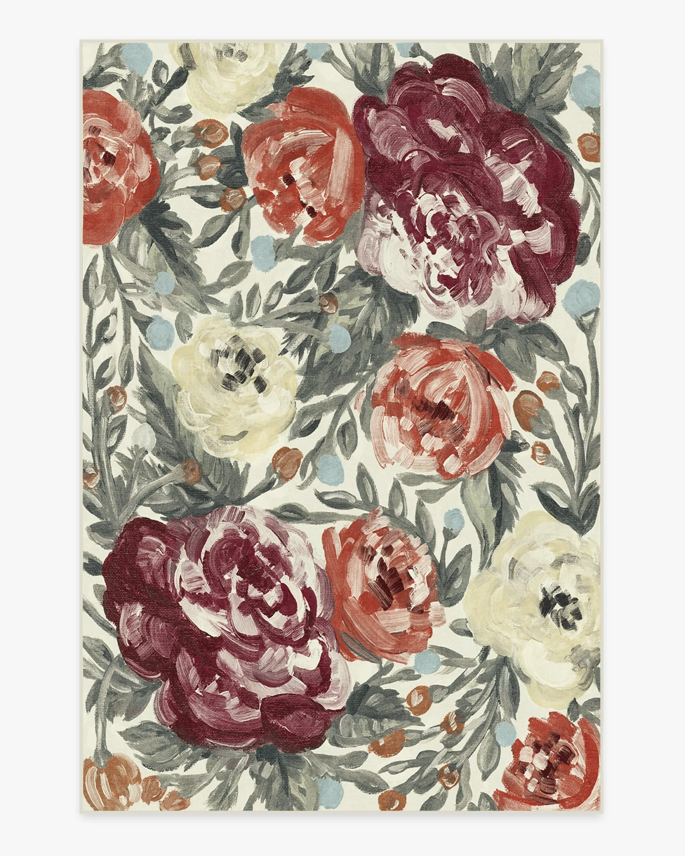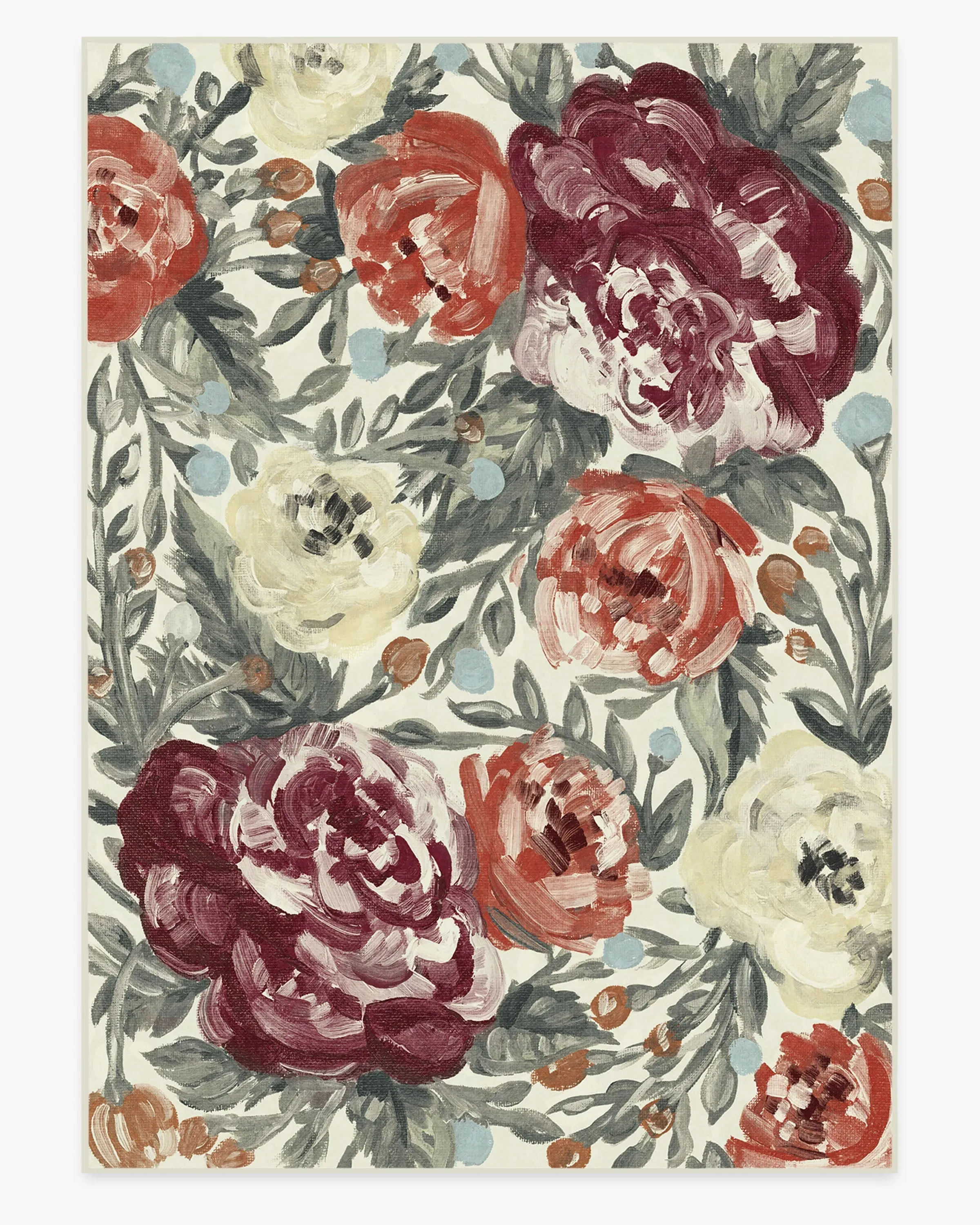 Our Camellia Currant rug uses textured brush strokes in pastel hues of red and orange to create a romantic floral motif. 60x90 | Machine Washable Area Rug | Kid & Pet Friendly | Indoor Rugs | Camellia Currant Flatwoven Rug | Ruggable
