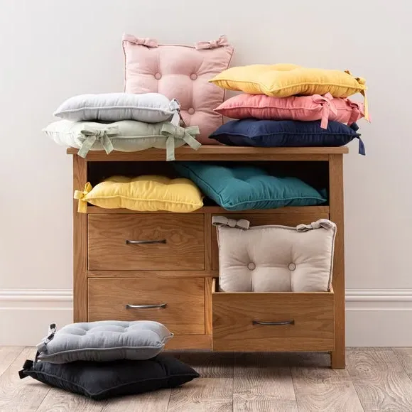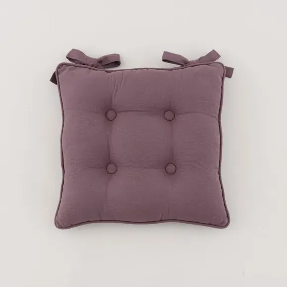 The seat pad features sophisticated button detailing crafted from pure cotton with a subtle slub texture. Its two practical ties provide secure fastening to your chair, while the cotton construction offers comfort and durability. The button detail adds visual interest, and the tie system ensures easy attachment and removal.