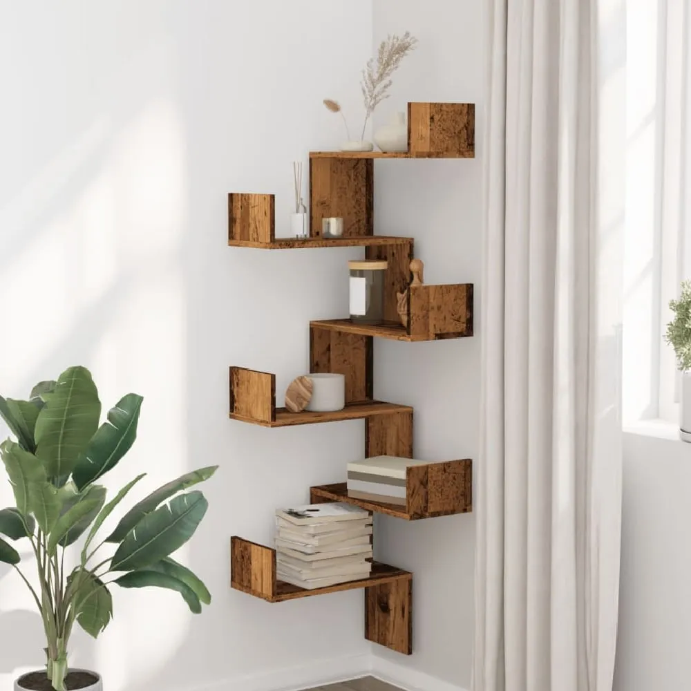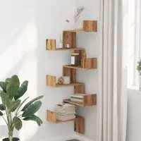 The Ruston Corner Wall Shelf offers practical storage with its six spacious shelves, designed to fit snugly into any corner. Its engineered wood construction features a smooth surface with strength, stability and moisture resistance, while the wall-mounted design maximizes floor space. The corner configuration provides ample room for books, decorative pieces and storage items, and the clean lines complement various interior styles.
