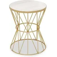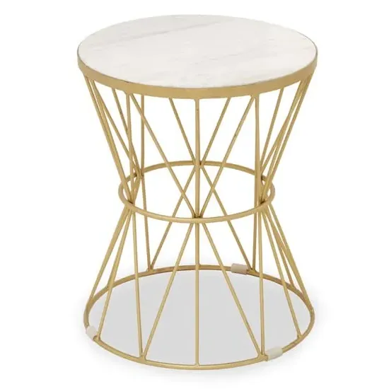 A monochromatic accent piece, the Mekbuda side table adds a chic accent to interiors. FEATURES : Material : Metal, Stone Finish : Black, White Created from smooth iron, the Mekbuda side table features a powdered black finish Slender metallic wires intertwine and cross to create an intriguing base in an hourglass figure The table's round top is formed from smooth white marble, adding a sophisticated touch that lends itself well to luxe style interiors Available at an affordable price Images shown are for illustration purpose only DIMENSIONS : Height : 55cm Width : 45cm Depth : 45cm