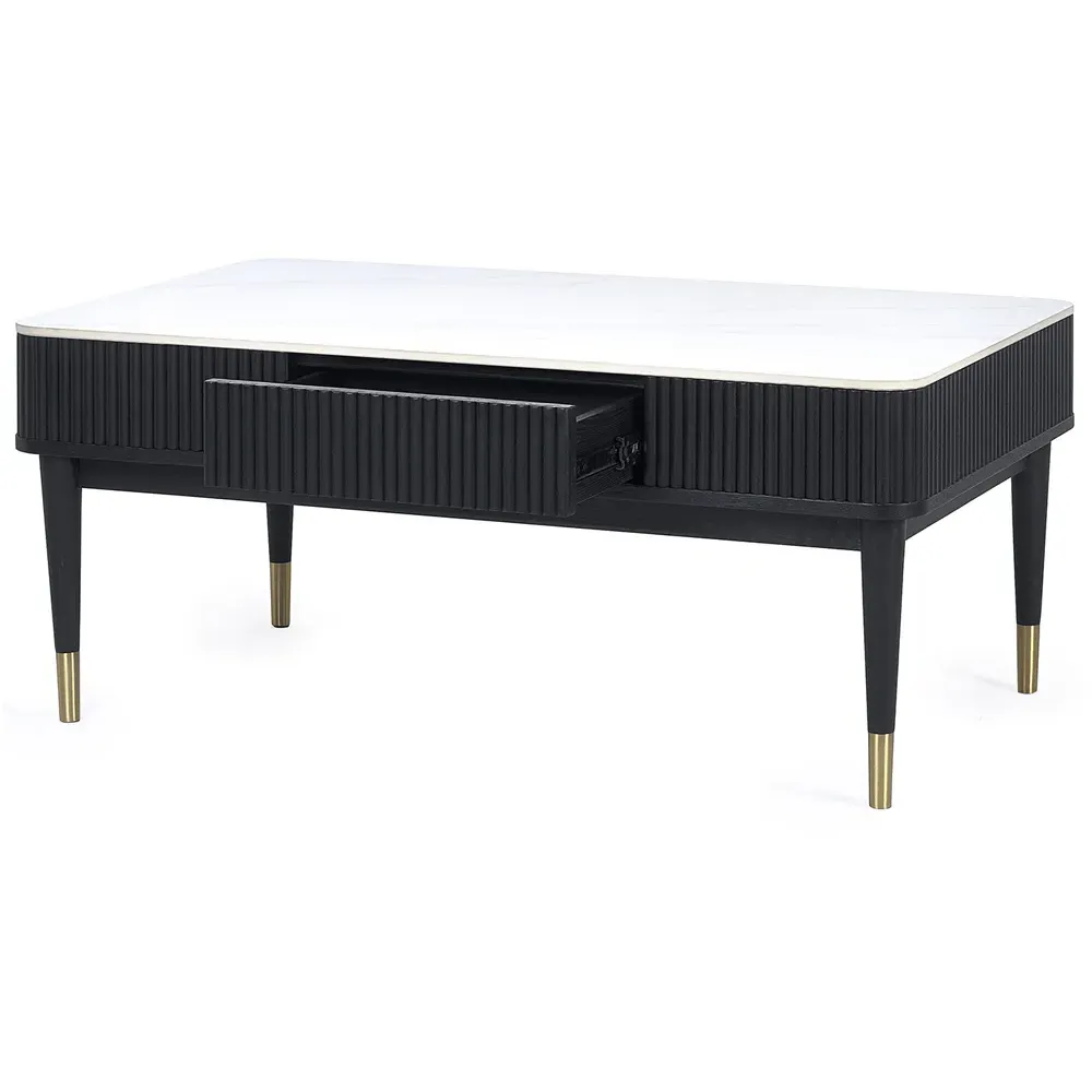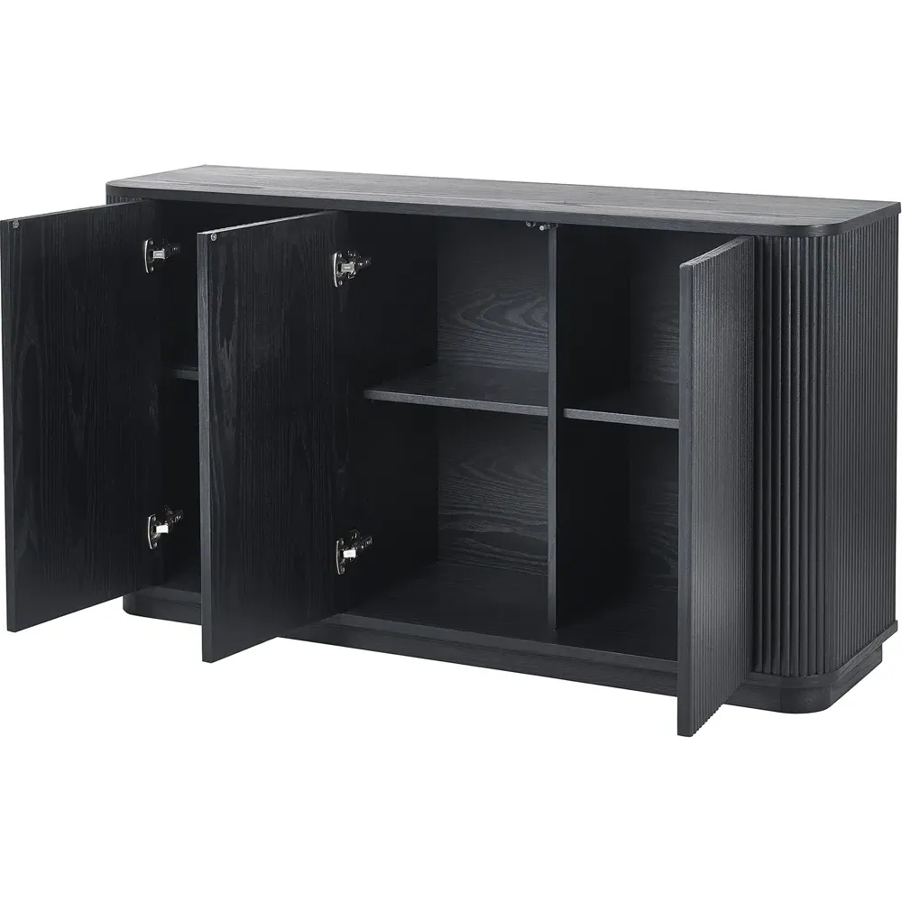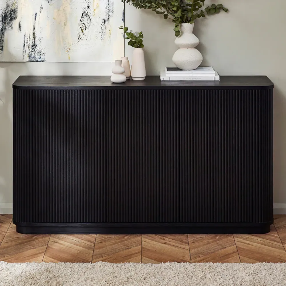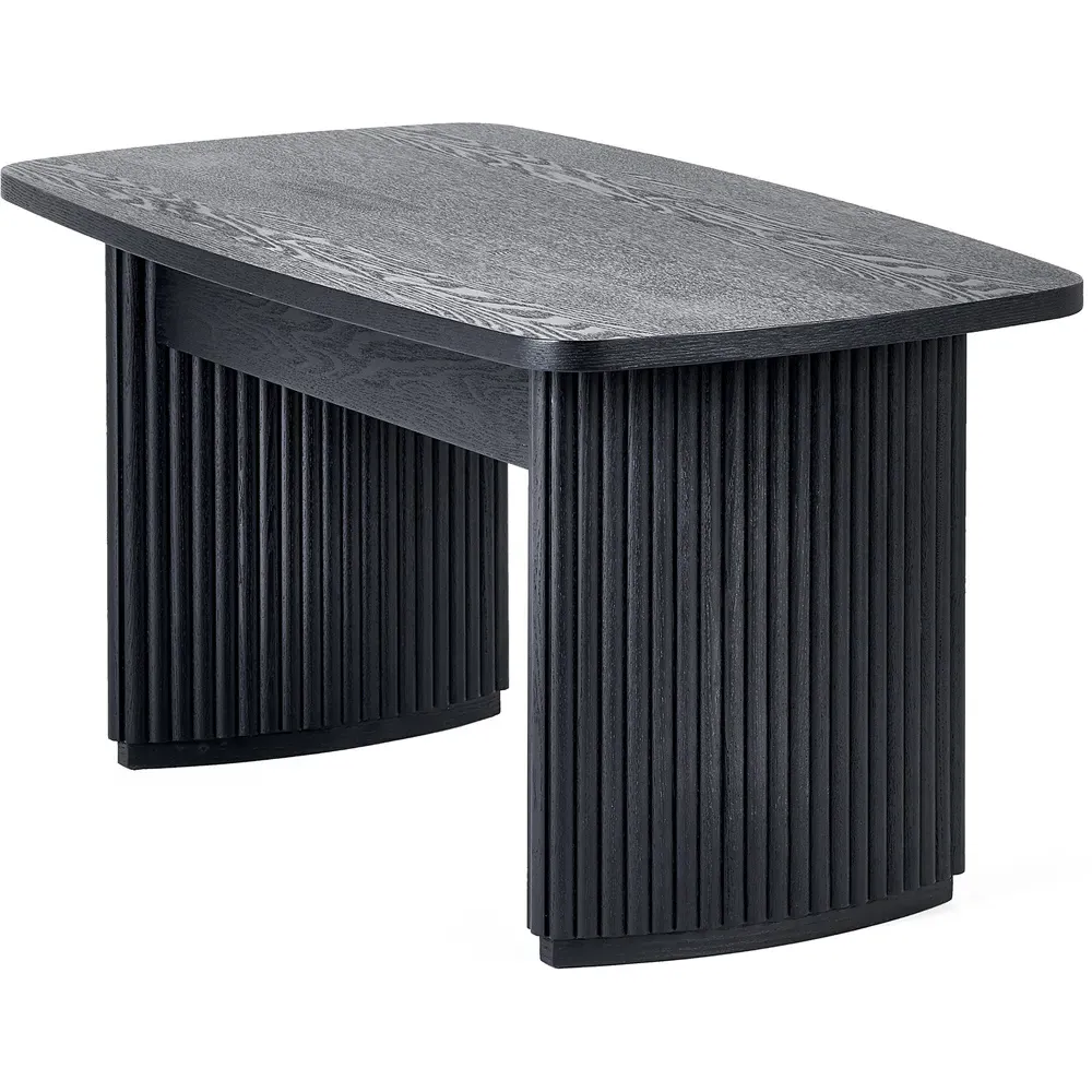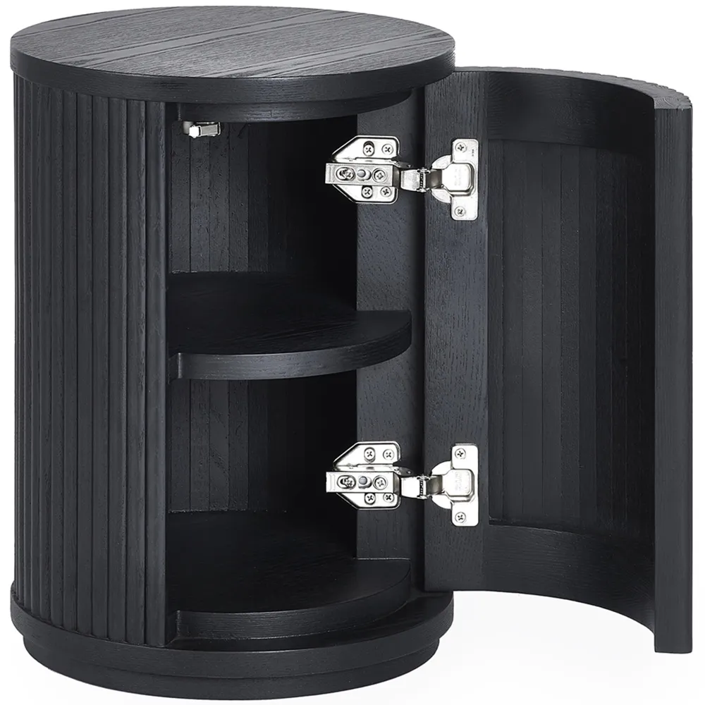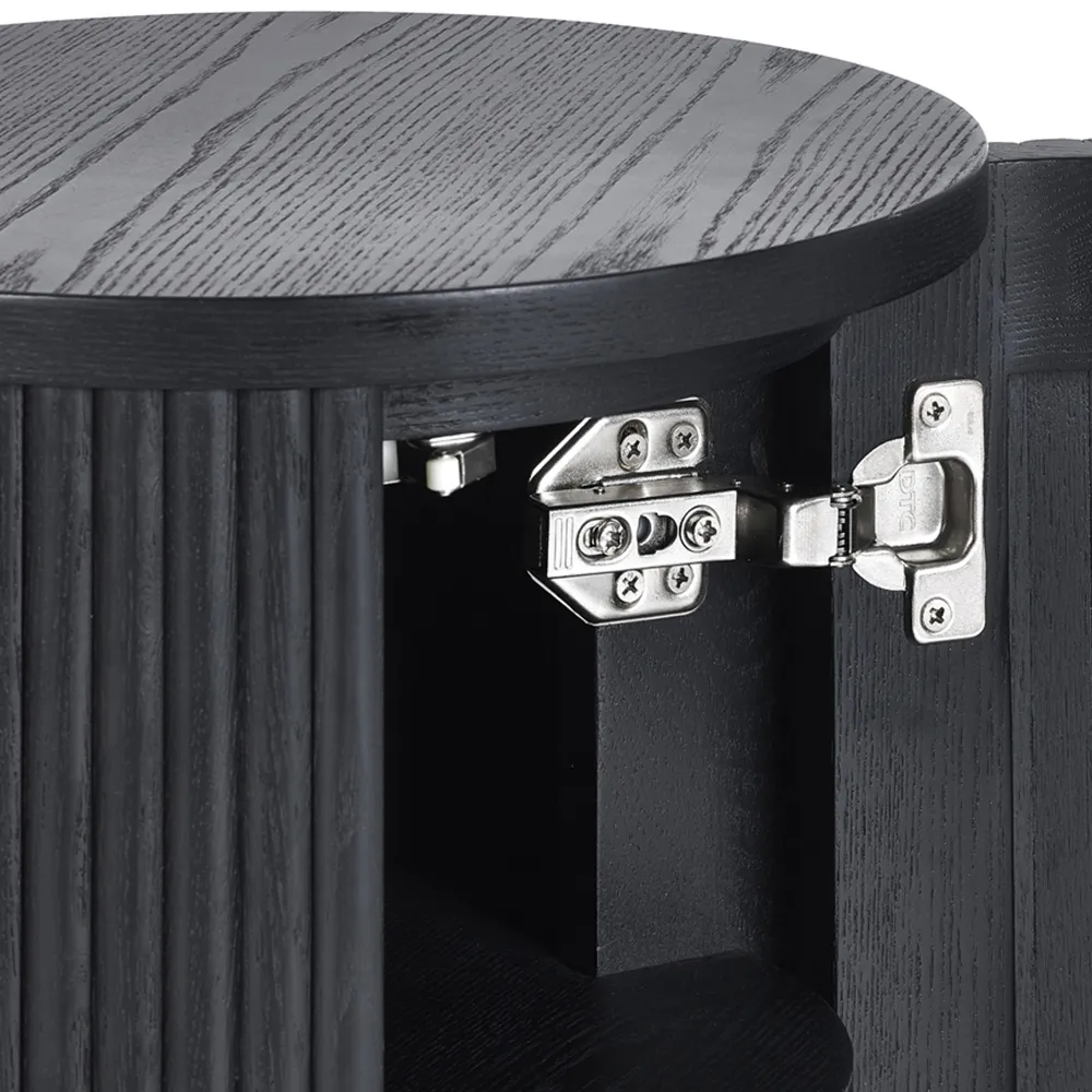 The Louis side table combines panelled fluted detailing with a round pedestal base for visual interest. Its matt black finish creates a striking appearance, while the spacious top provides ample surface area for drinks and accessories. The stable construction ensures durability, and the simple assembly process allows for quick setup.