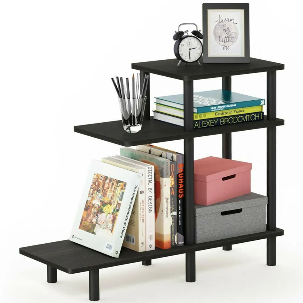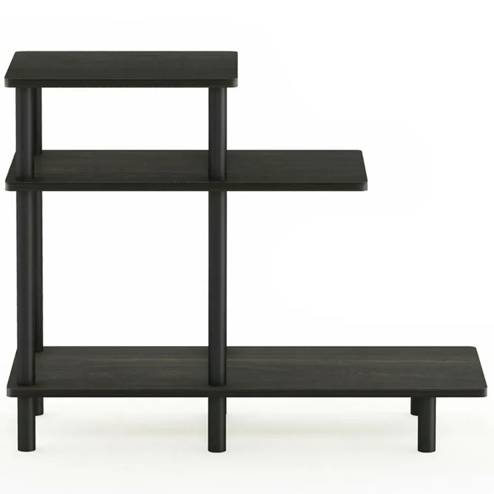 The Turn-N-Tube End Table offers versatile storage with its two-shelf design and clean finish. Constructed from 12mm CARB-grade medium-density composite wood made from recycled rubber tree materials, it provides durability and stability. The tool-free assembly system allows quick setup through simple twisting and turning of poles. Its compact design suits various spaces for storage, displays, or entertainment purposes.