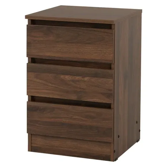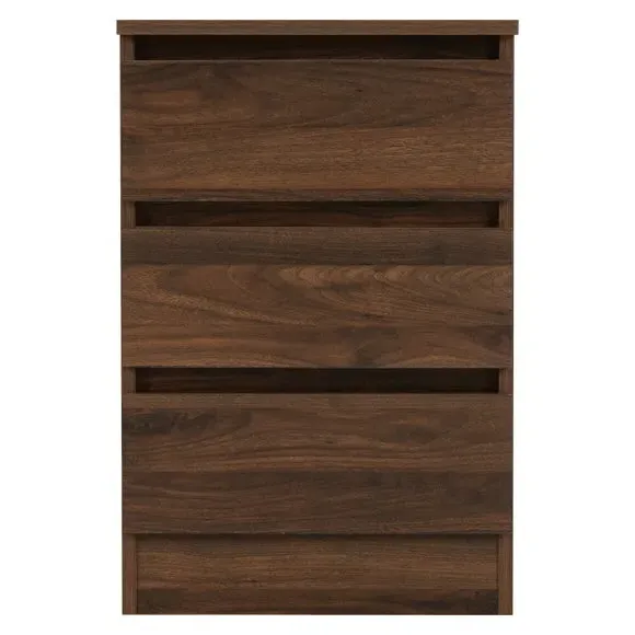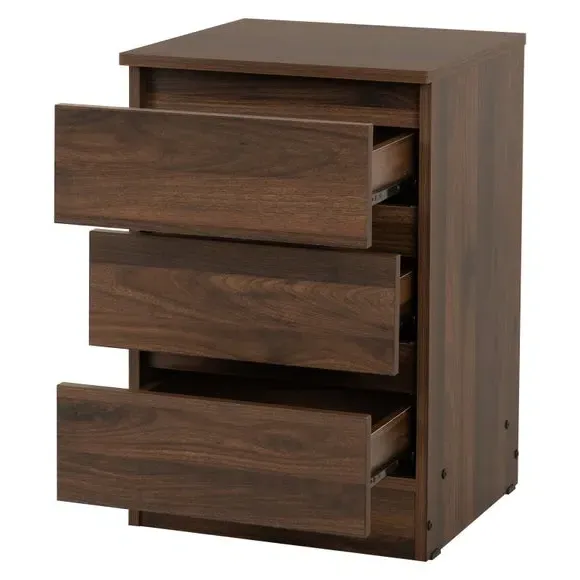 * 3 spacious drawers* Available in multiple wooden finishes* Quick assembly Available in a variety of finishes to complement your interior, this bedside table combines contemporary design with practical storage solutions. Featuring three spacious drawers, it provides ample space for keeping essentials close at hand while maintaining a clutter-free environment. The sturdy construction ensures durability, while the sleek and minimalist design adds a touch of modern elegance to your bedside.