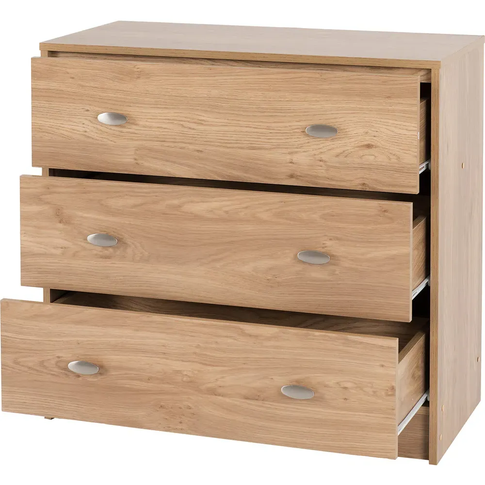 The Carlton bedside table provides convenient storage with its smooth-glide drawer and spacious cupboard. Its natural woodgrain finish combines with sleek metal handles for versatile appeal, while the compact design fits perfectly beside any bed. The medium oak effect adds warmth to both classic and contemporary interiors.