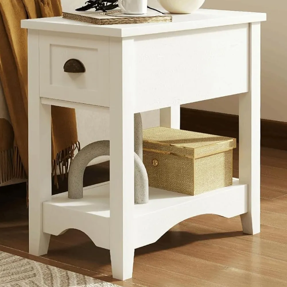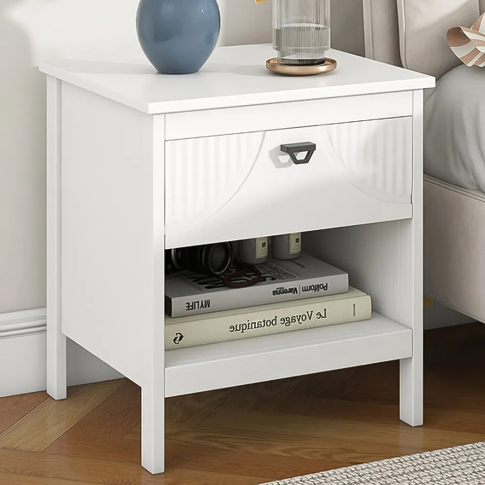 Home  /  Bedroom  /  Side Tables & Nightstands  /  Single Drawer Nightstand with Shelf - White