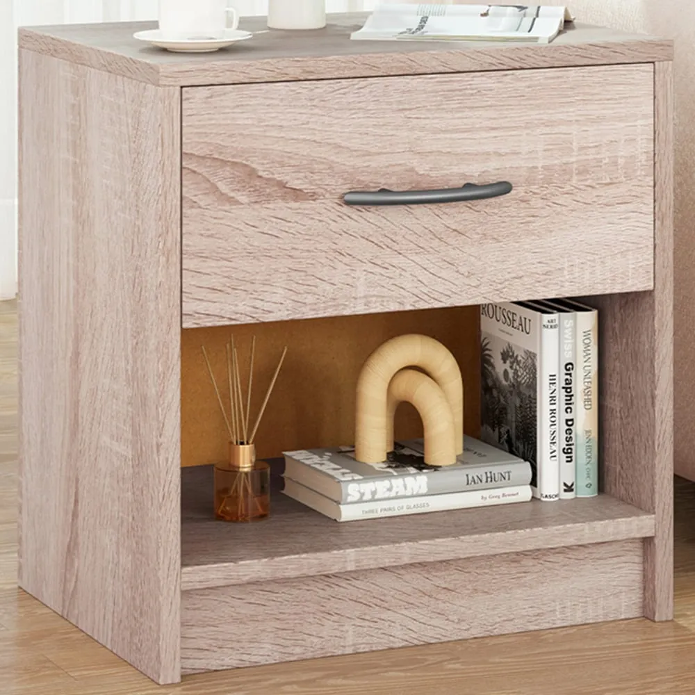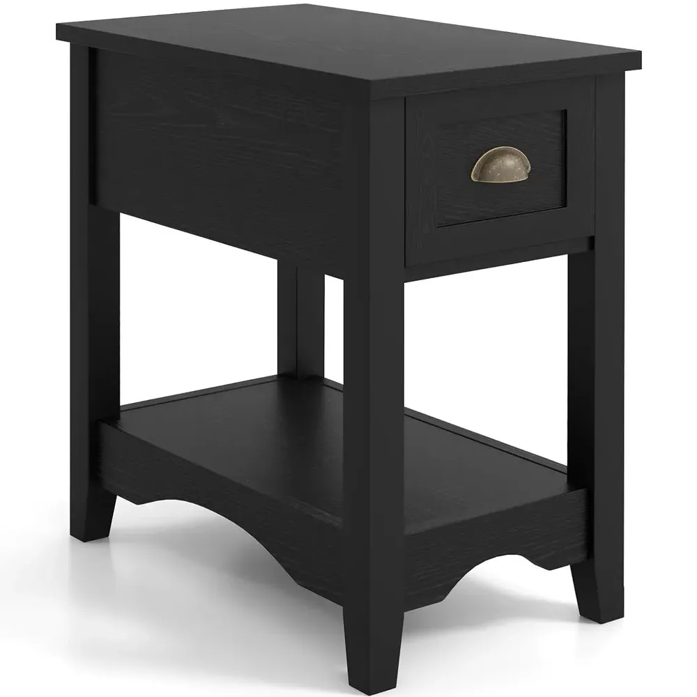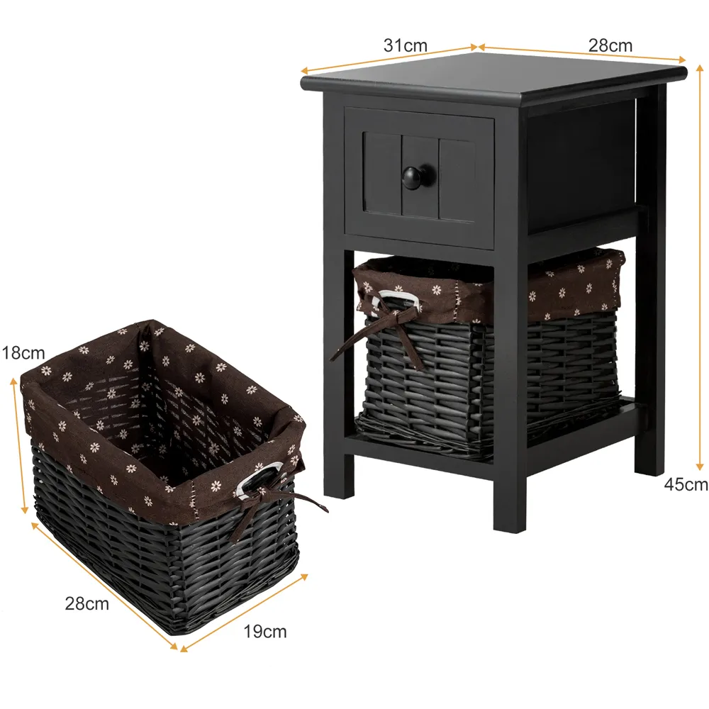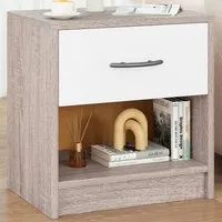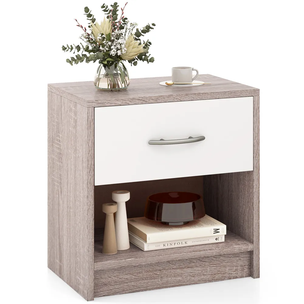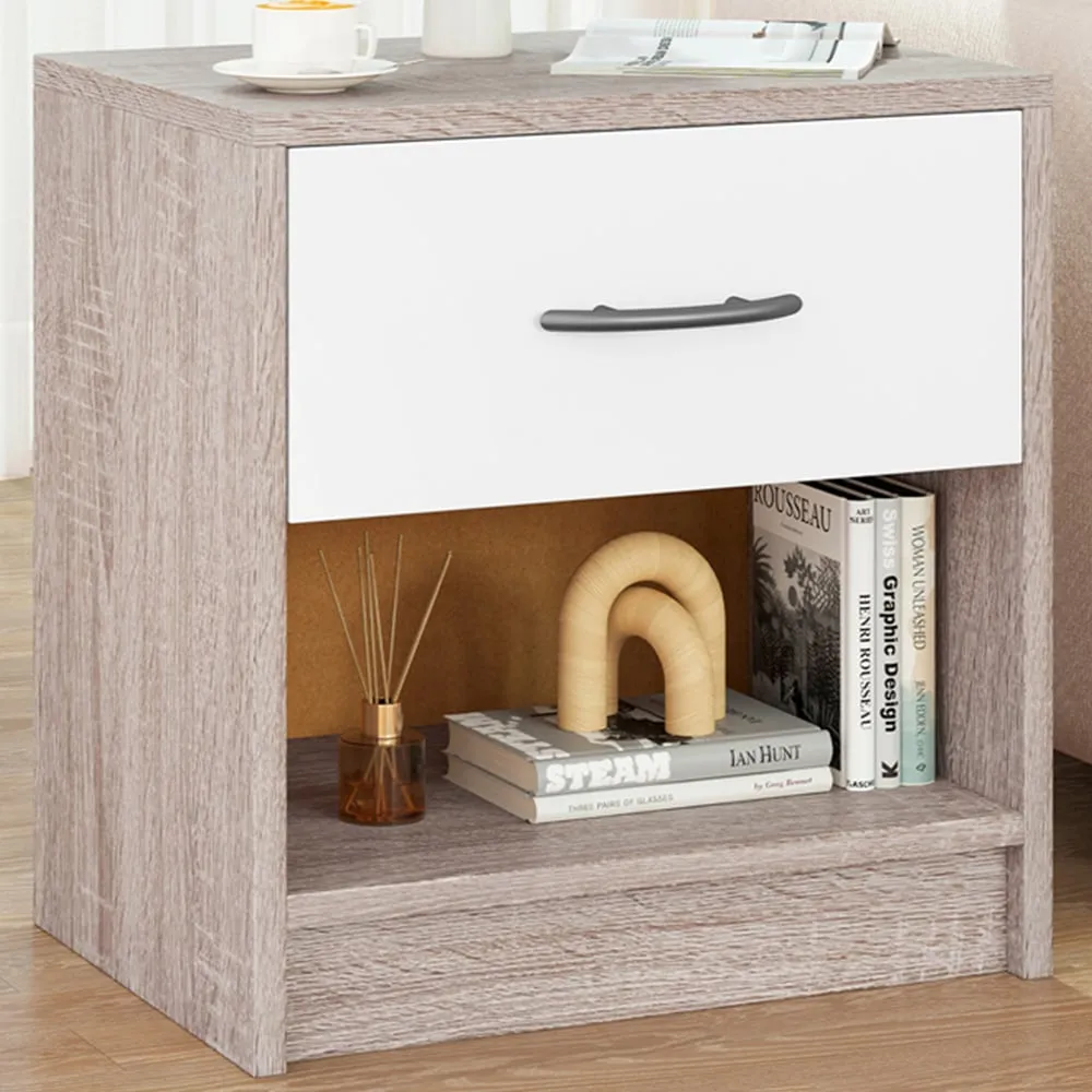 Brighten up your cosy corner with the 2-Tier Nightstand, a perfect blend of functionality and modern aesthetics. This compact yet capacious nightstand is designed to maximise your storage in minimal spaces, featuring a top surface ideal for a lamp or bedtime essentials, a handy drawer for personal items, and an open shelf for books or decorative baskets. Its robust structure, enhanced with anti-slip foot pads, ensures stability and durability, while the clean lines introduce a touch of modern charm to any room. Whether placed in a bedroom, living room, or office, this nightstand is a stylish and practical addition to small spaces.