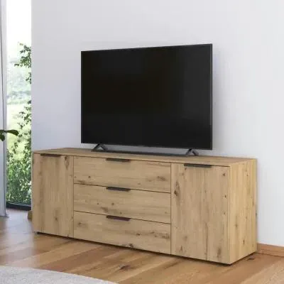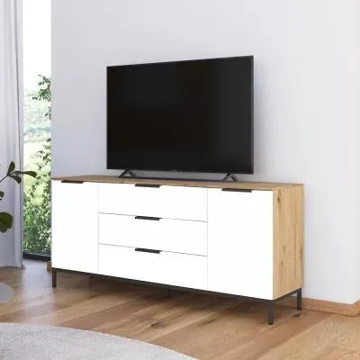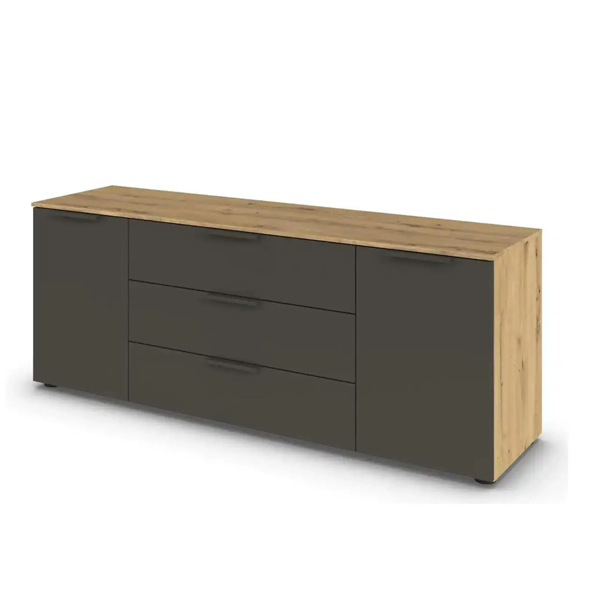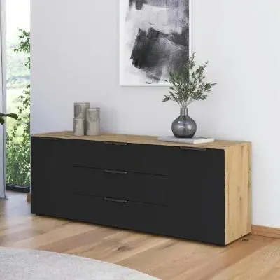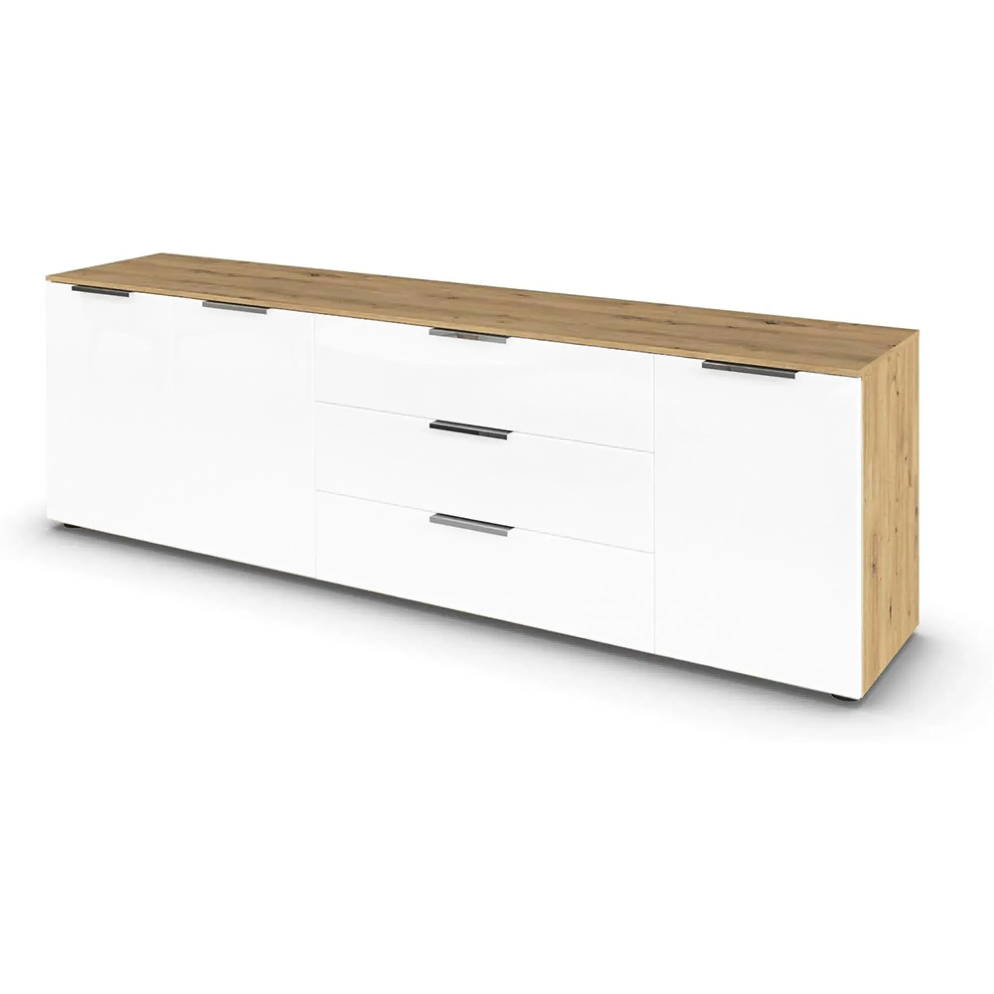 Rauch Flipp 2 Door Low Sideboard with Adjustable Height - 160cm - Artisan Oak and Alpine White - 6DA5/ A797C, available to buy online or at Choice Furniture Superstore UK on stockist sale price. Get volume - discount with fast and Free Delivery.