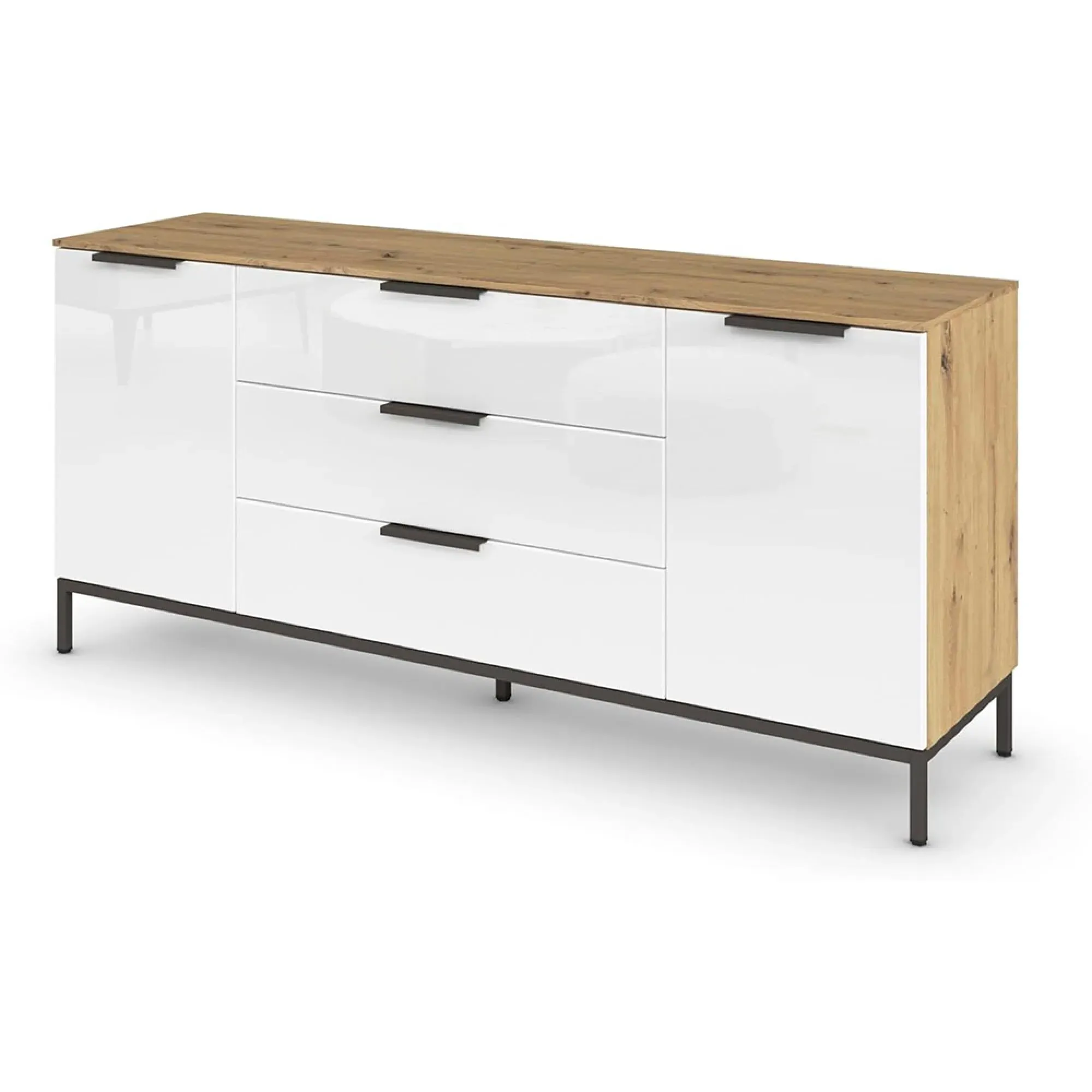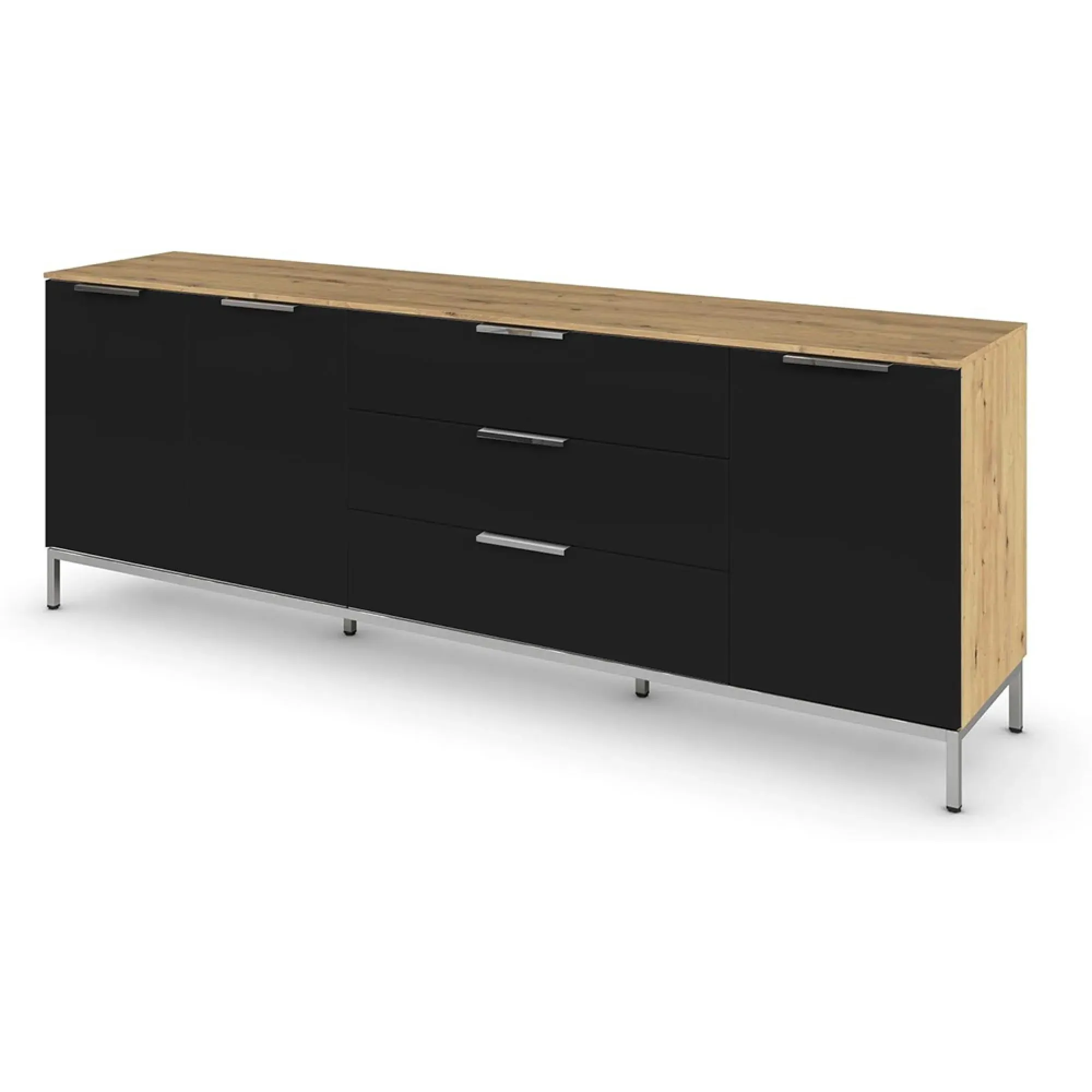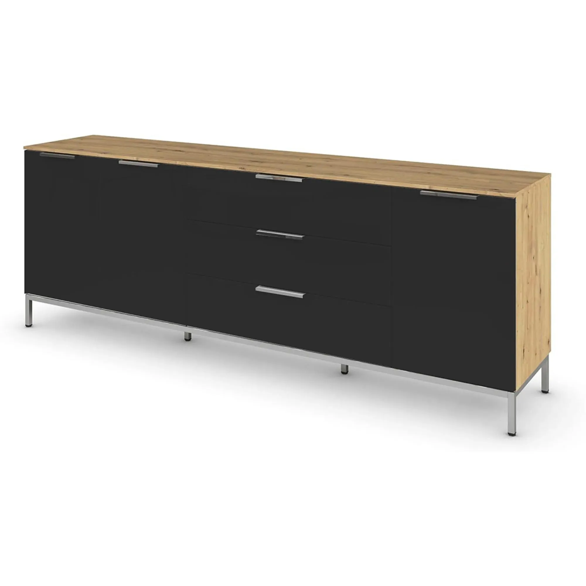 Rauch Flipp 2 Door Low Sideboard with Adjustable Height - 160cm - Artisan Oak and Alpine White - 6DA5/ A797C, available to buy online or at Choice Furniture Superstore UK on stockist sale price. Get volume - discount with fast and Free Delivery.