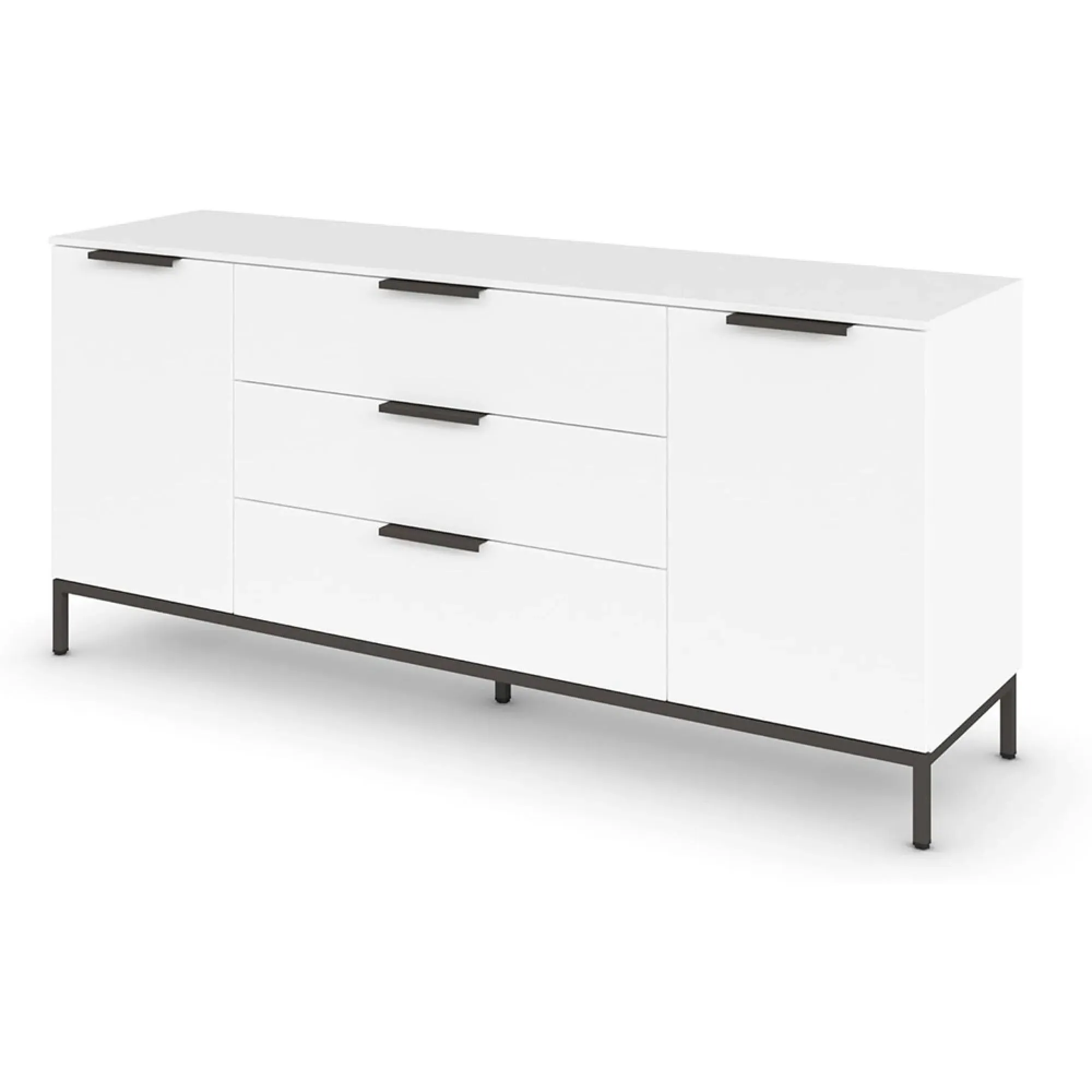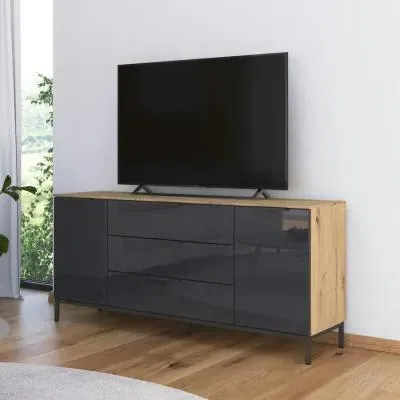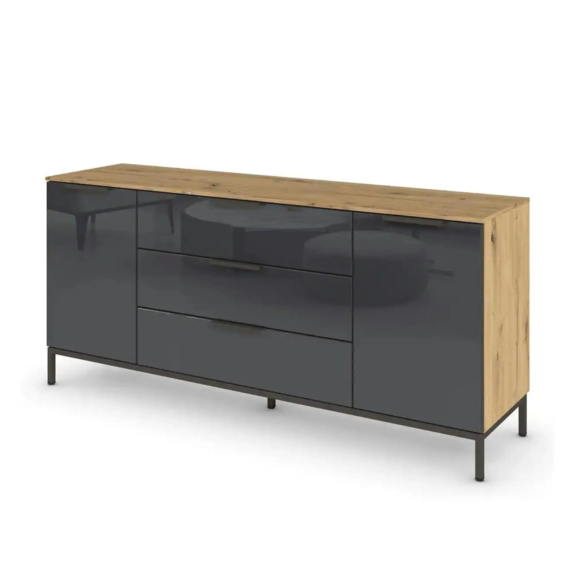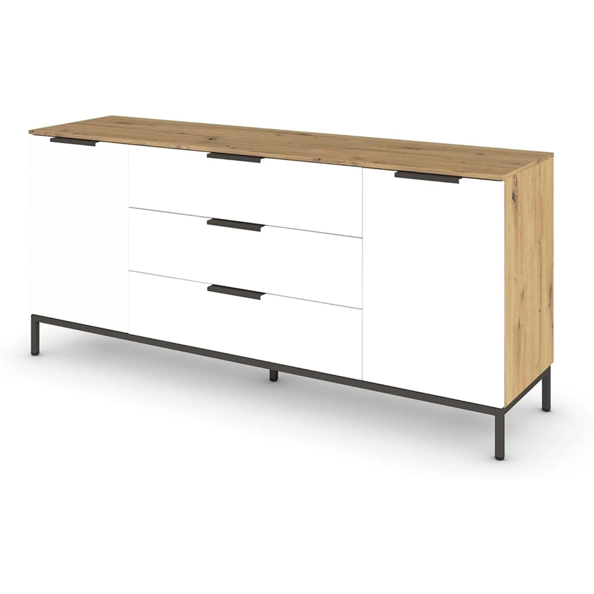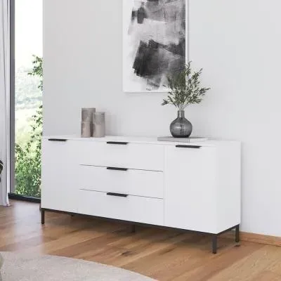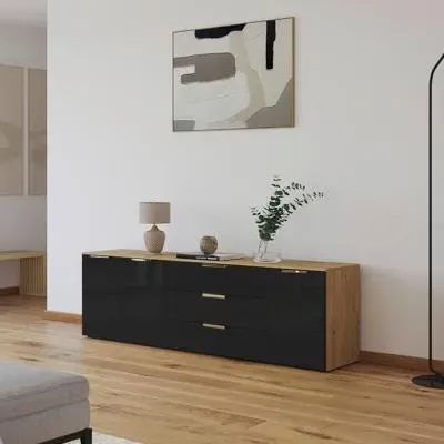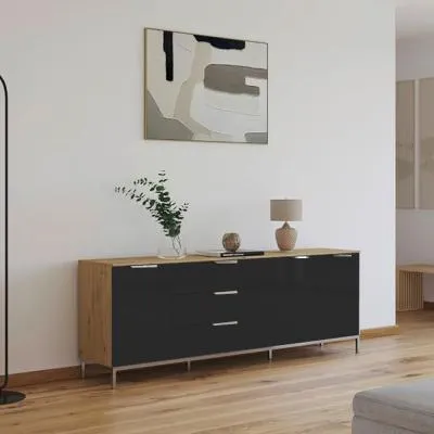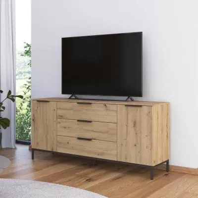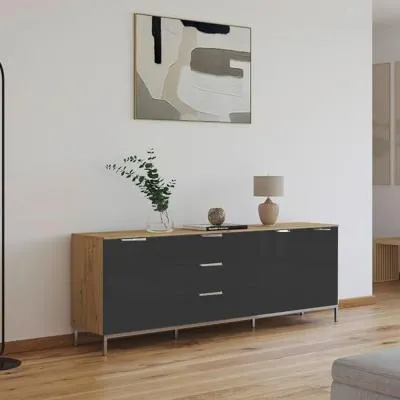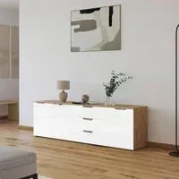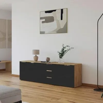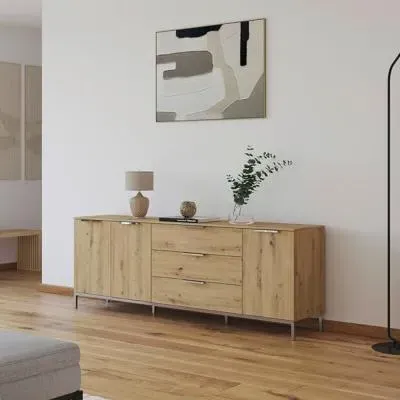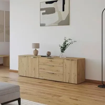 The Flipp 2 Door Low Sideboard provides functional storage with adjustable height capability, combining artisan oak and alpine white finishes. Its two-door structure offers concealed storage space, while the low profile maintains an unobtrusive presence. The height adjustment feature accommodates different requirements, and the mixed finish adds visual interest to any space.