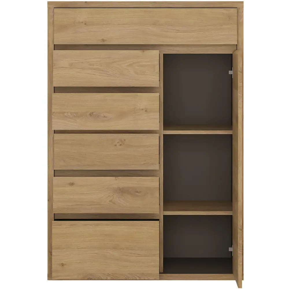 The Florence Shetland desk offers functional workspace with three integrated drawers for storage. Its clean lines provide a professional appearance while the drawer configuration keeps essentials organized and accessible. The brown finish complements the sharp design, creating a practical workspace solution.