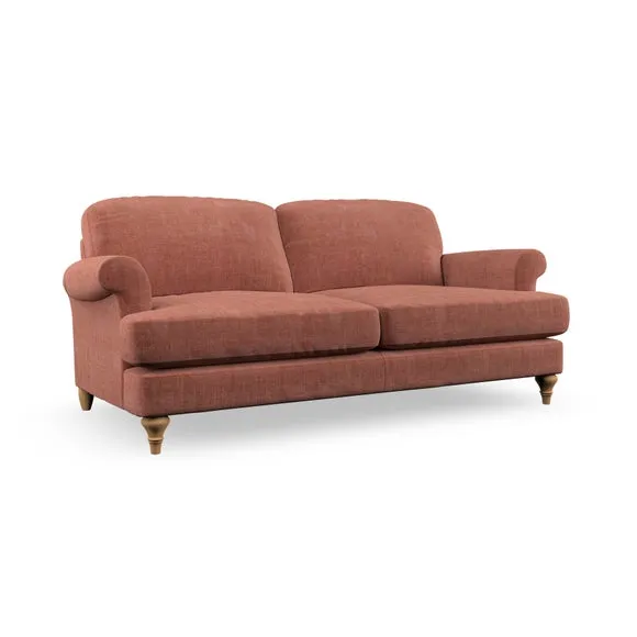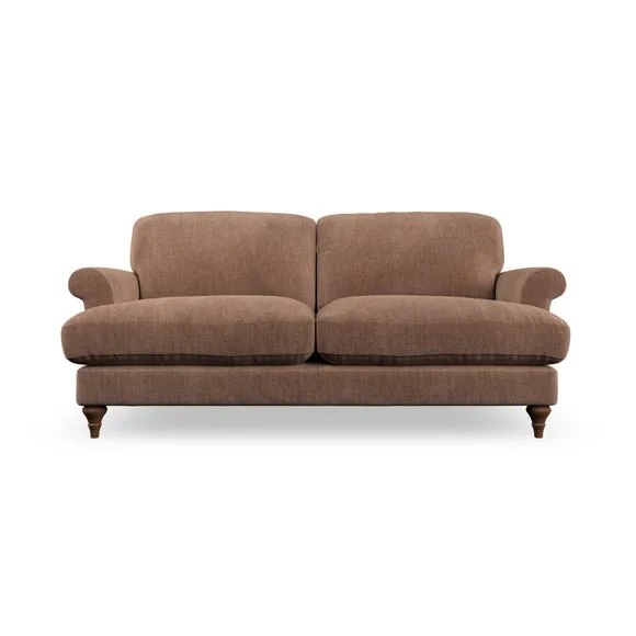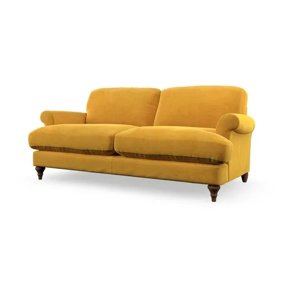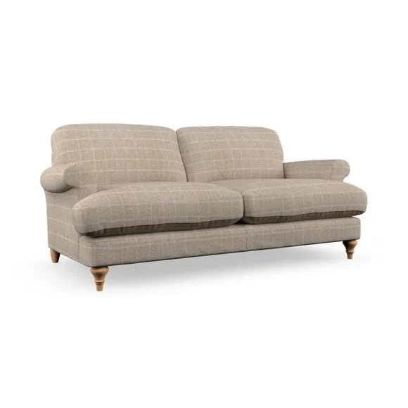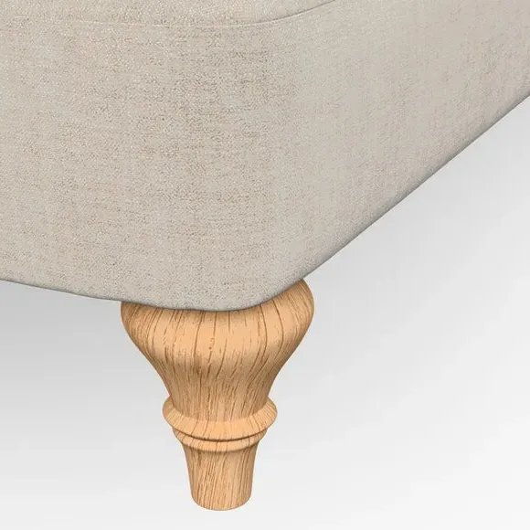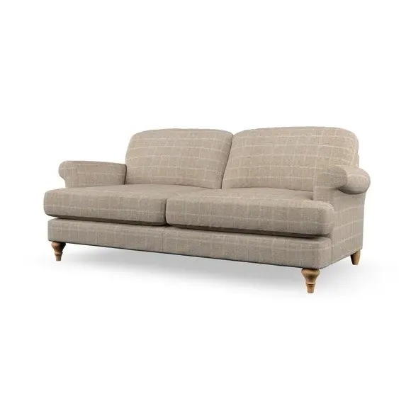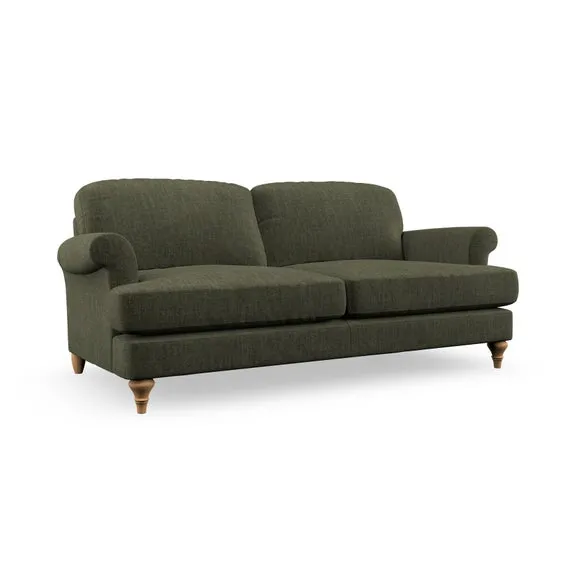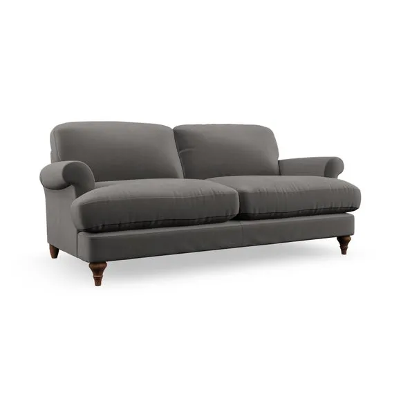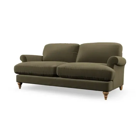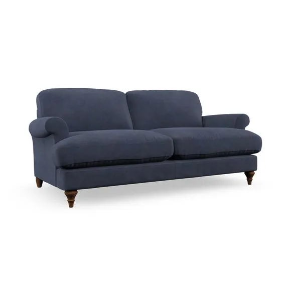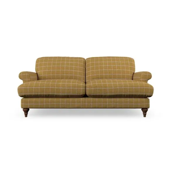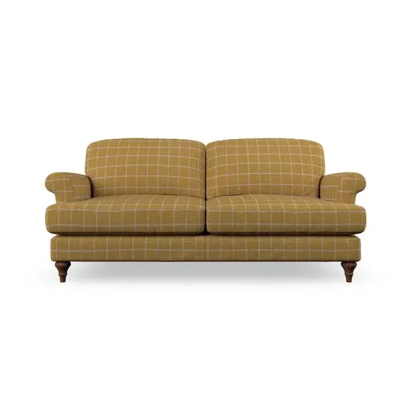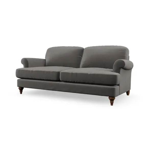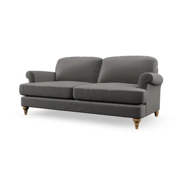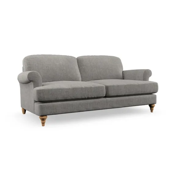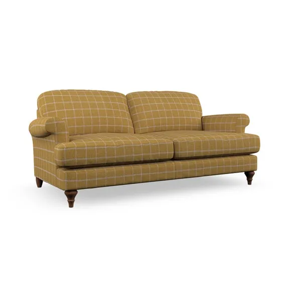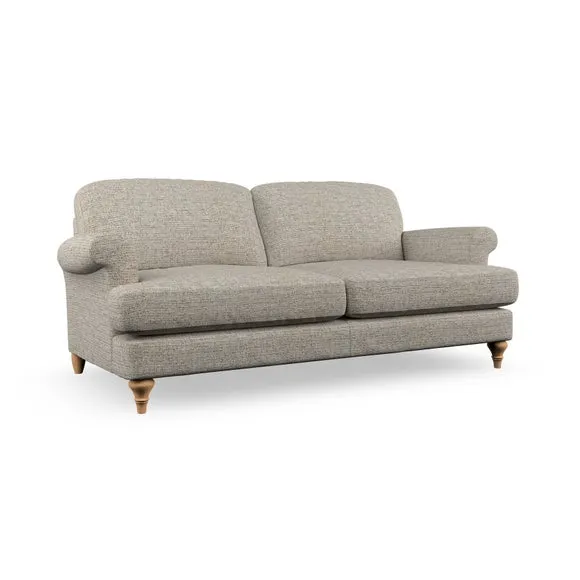 The sofa offers classic comfort with its elegant scroll arms and lugged seat cushions. Serpentine seat springs provide reliable support, while fibre-filled back cushions add softness for daily use. The refined design combines practicality with timeless appeal, and customizable fabric and leg options allow personal styling.