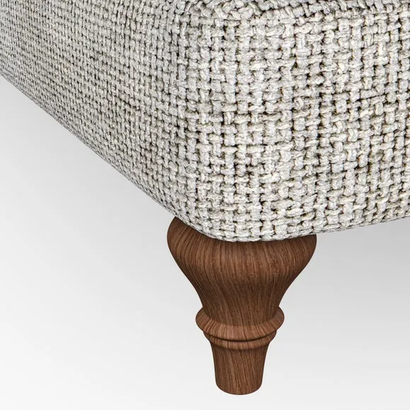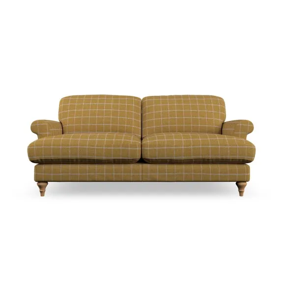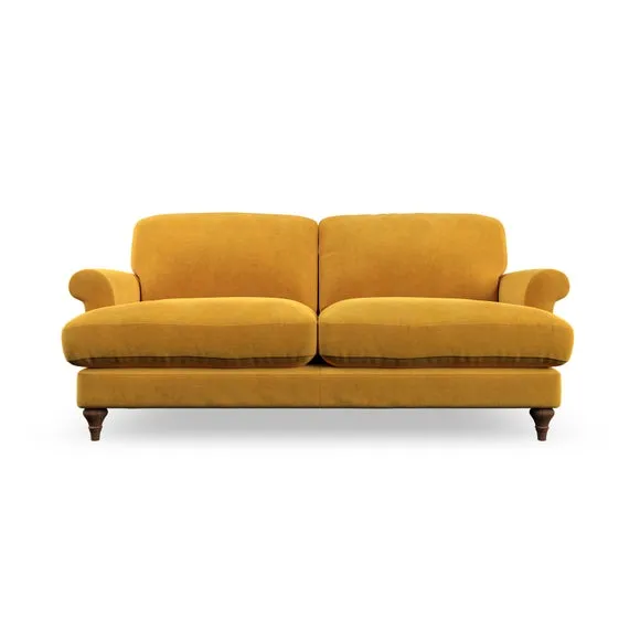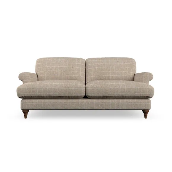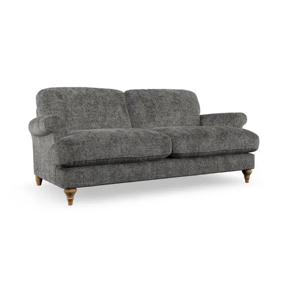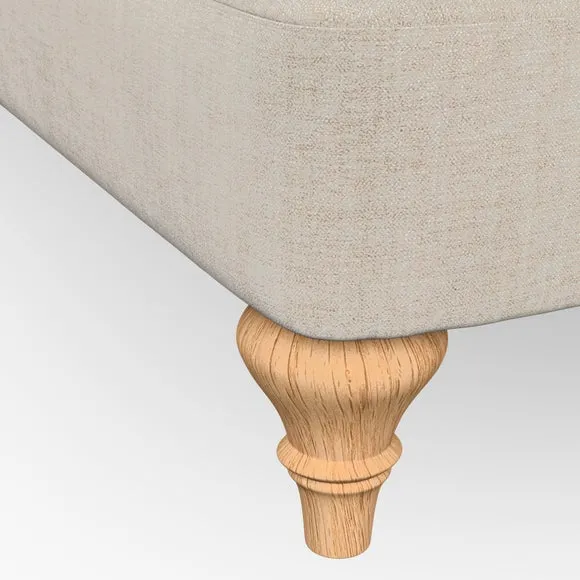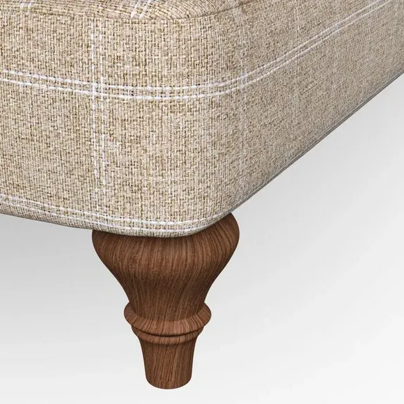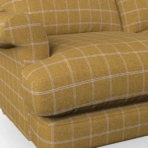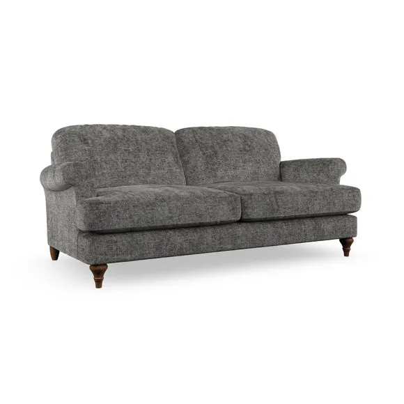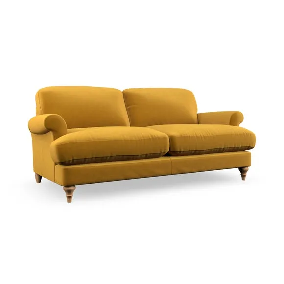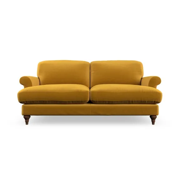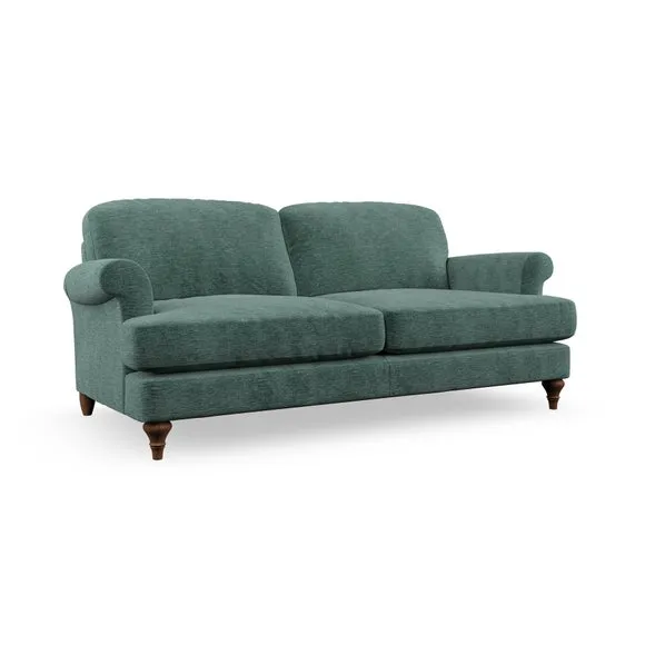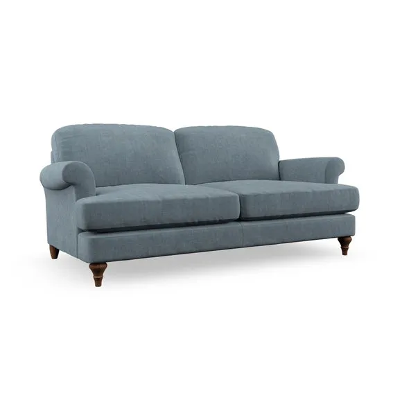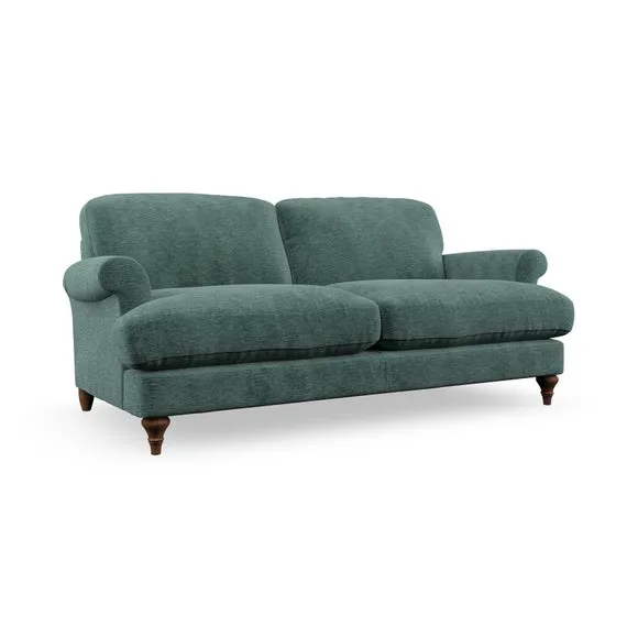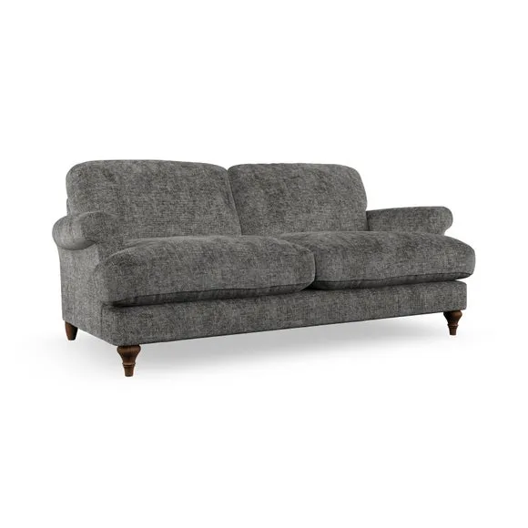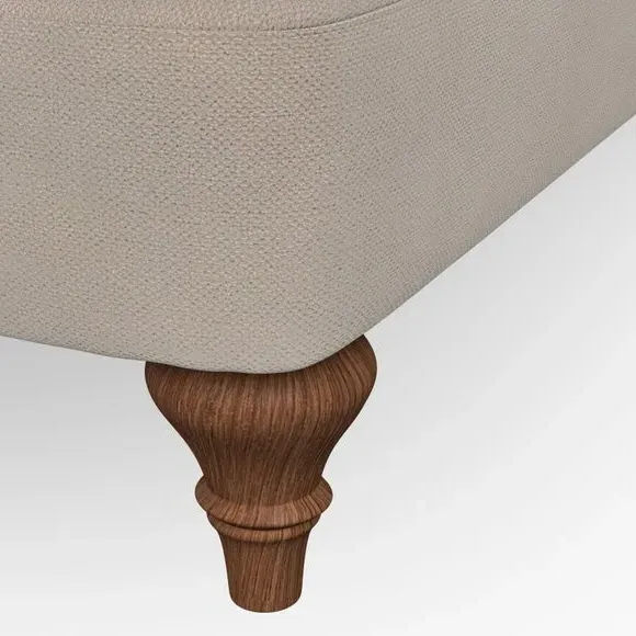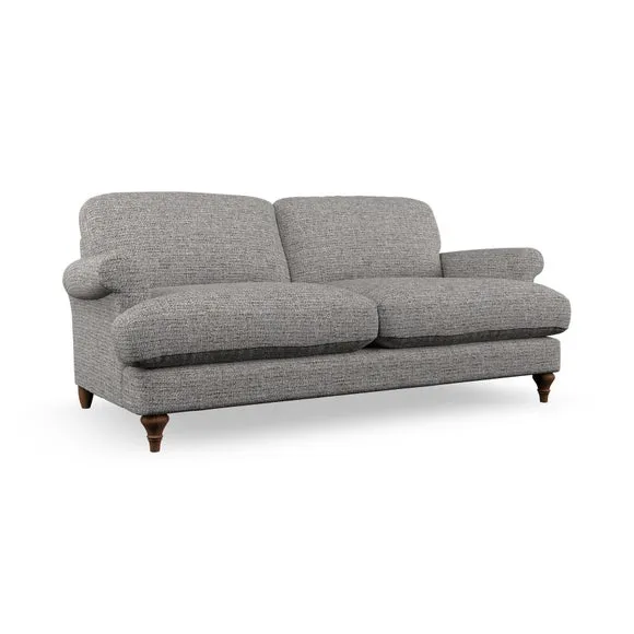 The sofa offers classic comfort with its elegant scroll arms and lugged seat cushions. Serpentine seat springs provide reliable support, while fibre-filled back cushions add softness for daily use. The refined design combines practicality with timeless appeal, and customizable fabric and leg options allow personal styling.