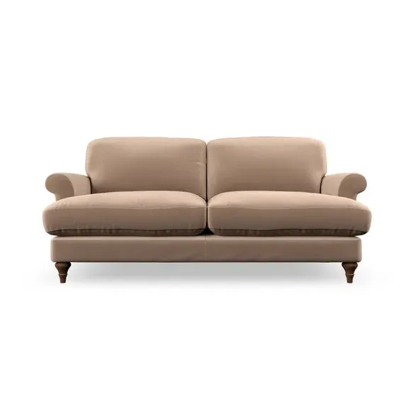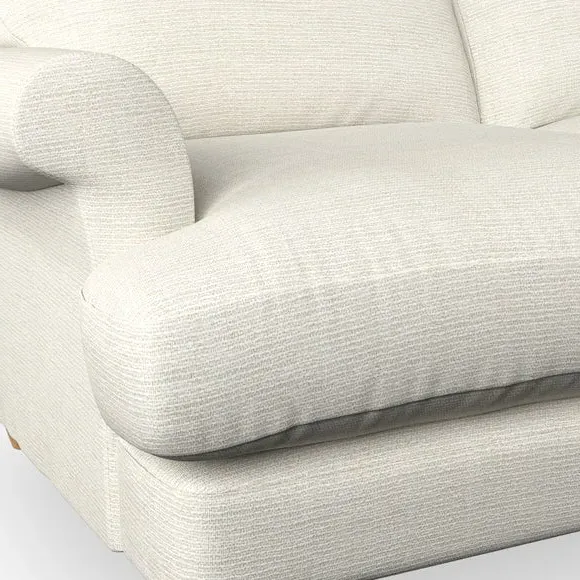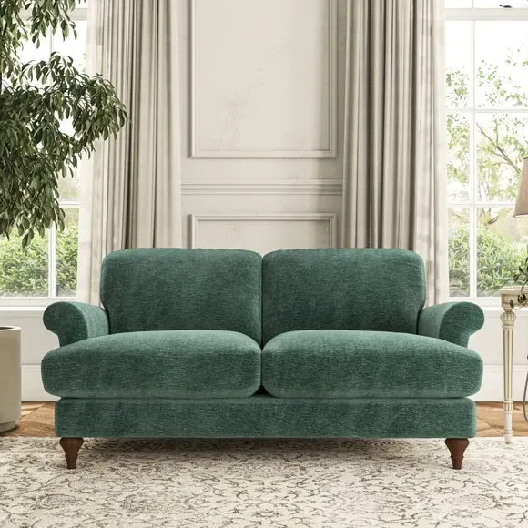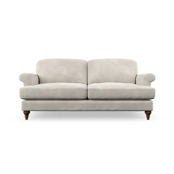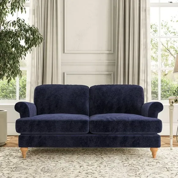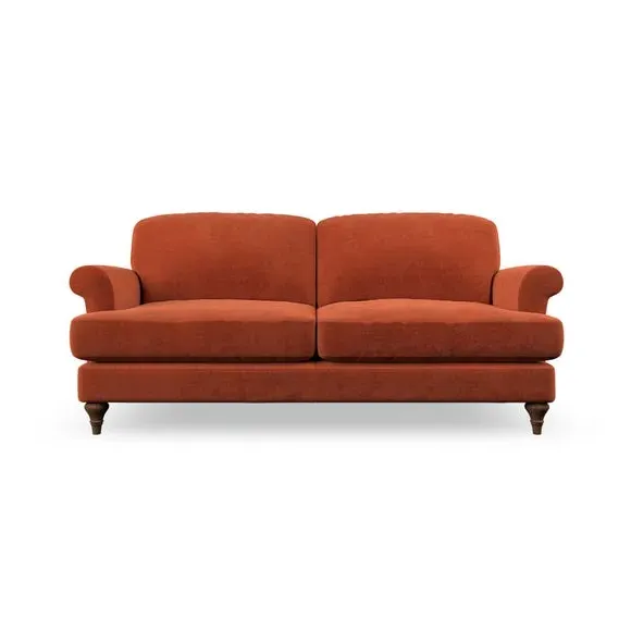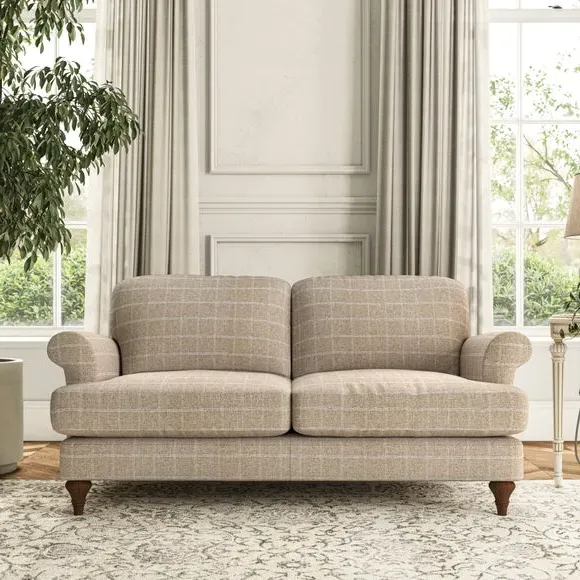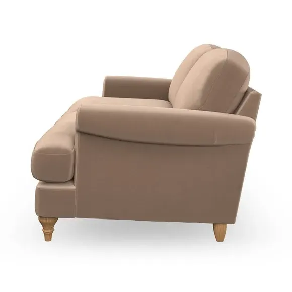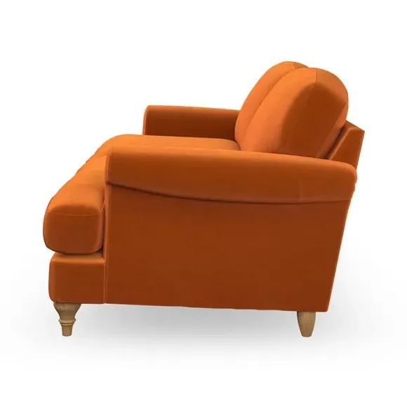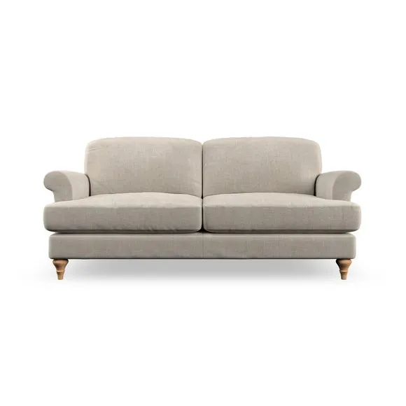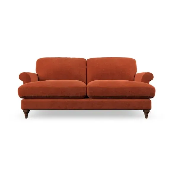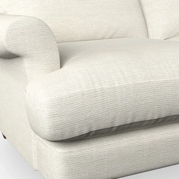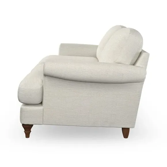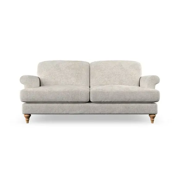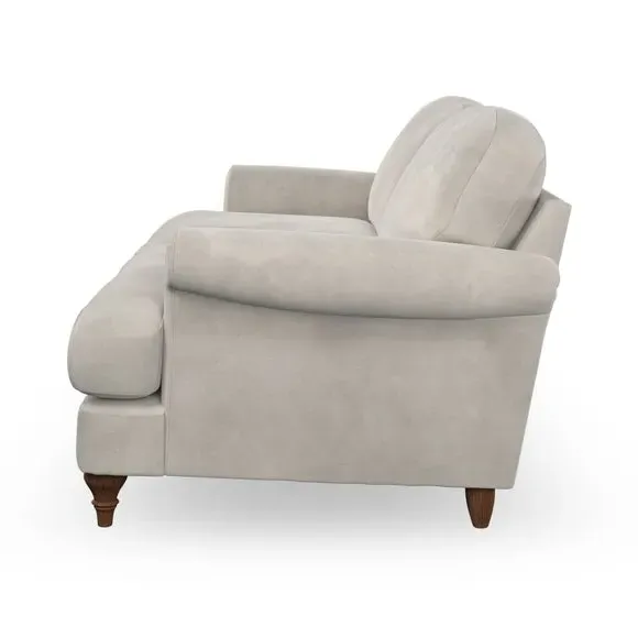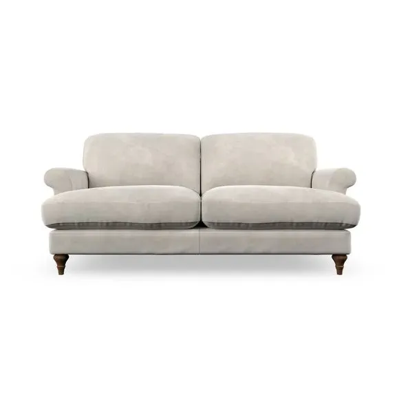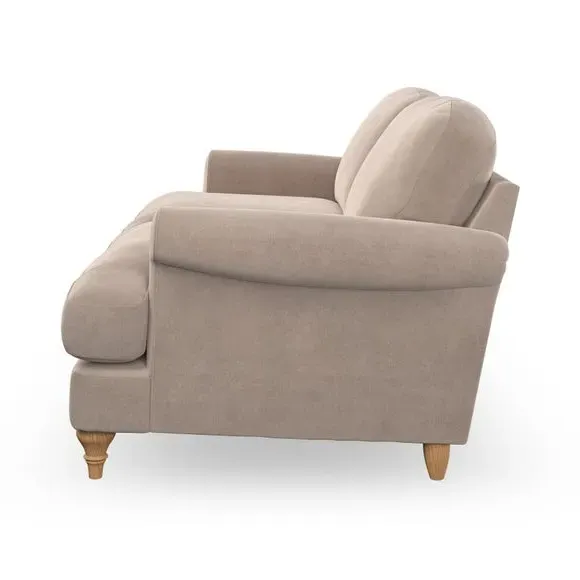 * Elegant, classic design* Scroll Arms* Lugged seat cushion* Serpentine seat springs* Choose your orientation, support, fabric and leg colour The Evie Large 2 Seater Sofa offers a comfortable and refined seating solution for more compact spaces. With its slim scroll arms and neat lugged seat cushions, this sofa combines practicality with a classic design. The fibre-filled back cushions add a soft yet supportive feel, perfect for everyday lounging. Choose your preferred fabric, colour, cushion filling, and leg finish to make this piece truly your own.