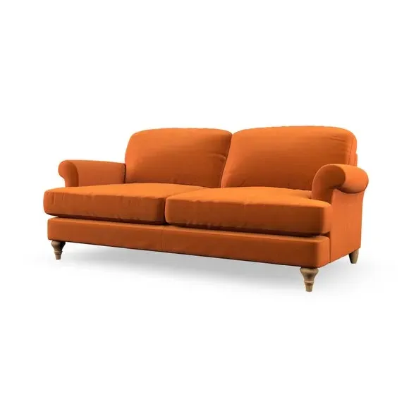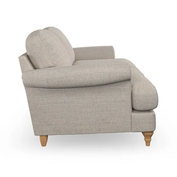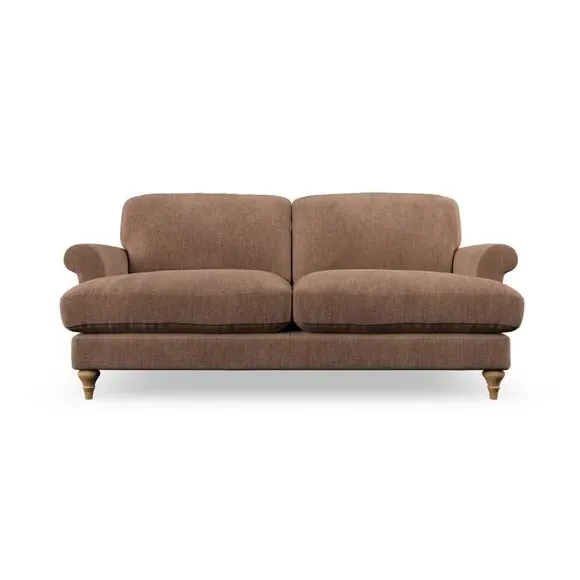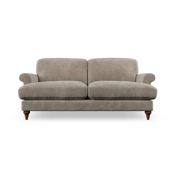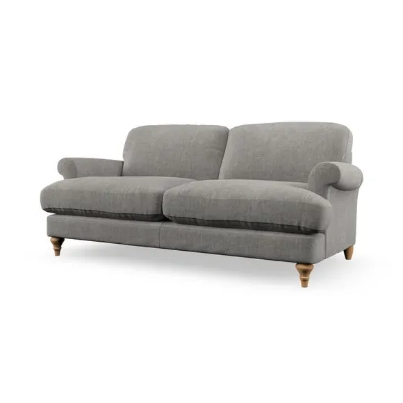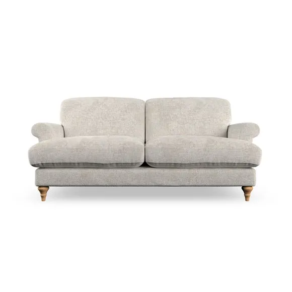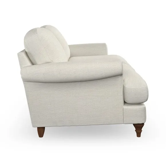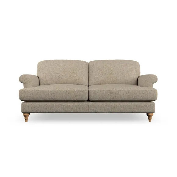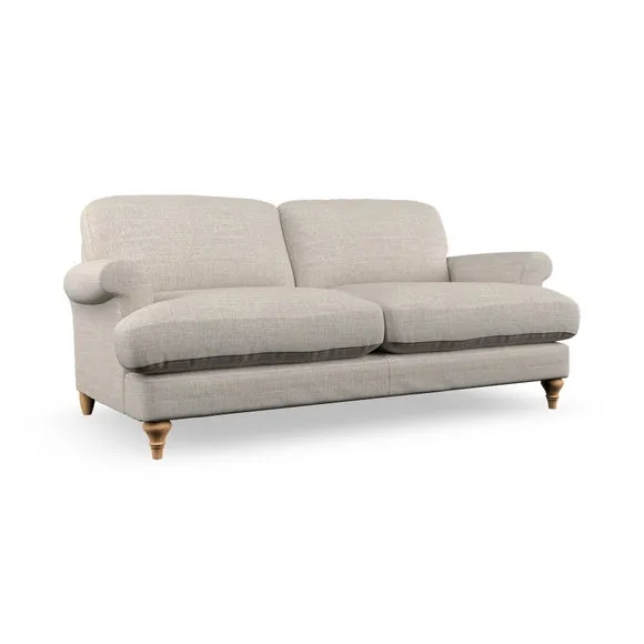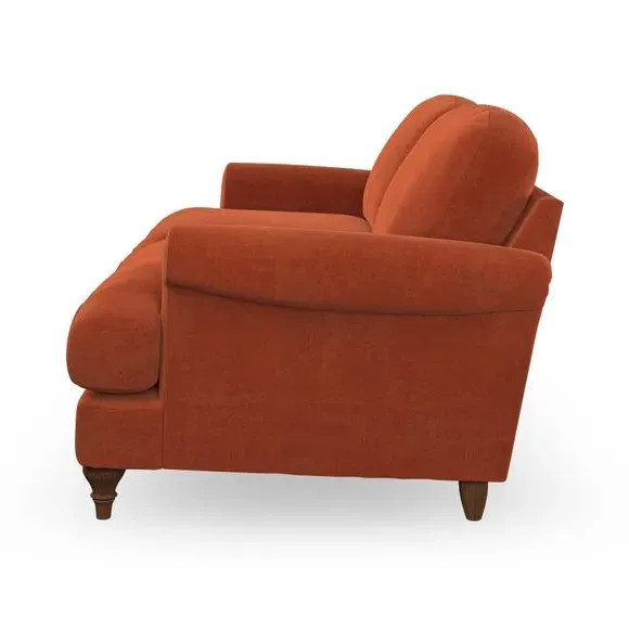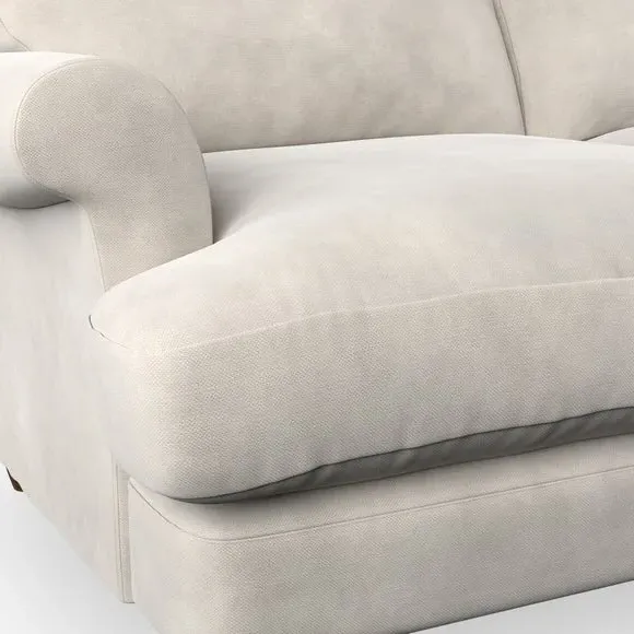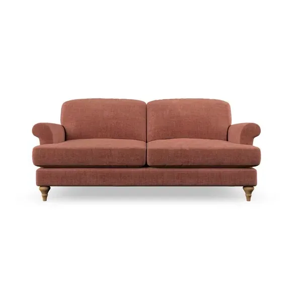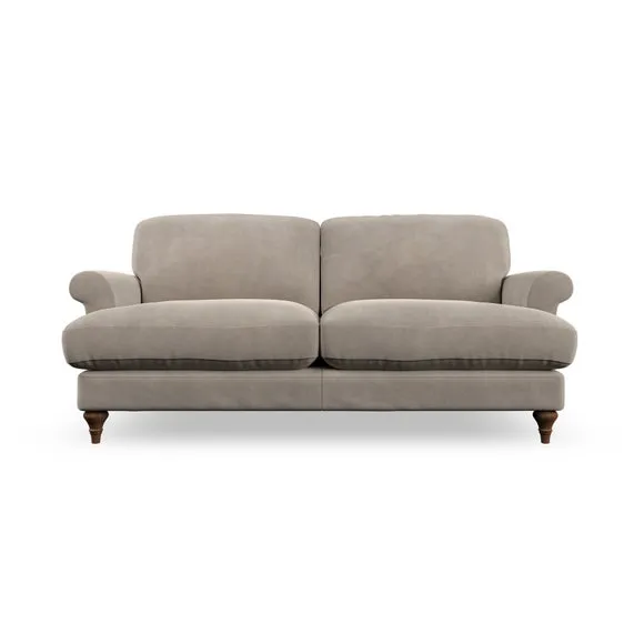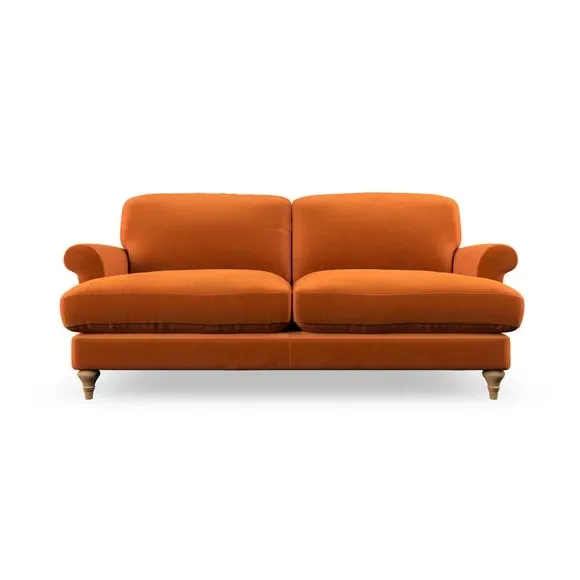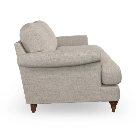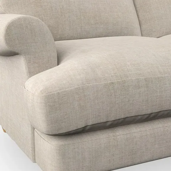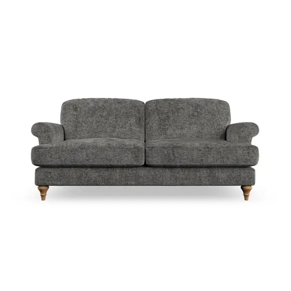 * Elegant, classic design* Scroll Arms* Lugged seat cushion* Serpentine seat springs* Choose your orientation, support, fabric and leg colour The Evie Large 2 Seater Sofa offers a comfortable and refined seating solution for more compact spaces. With its slim scroll arms and neat lugged seat cushions, this sofa combines practicality with a classic design. The fibre-filled back cushions add a soft yet supportive feel, perfect for everyday lounging. Choose your preferred fabric, colour, cushion filling, and leg finish to make this piece truly your own.