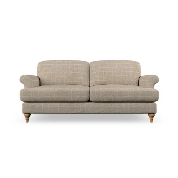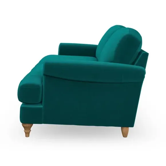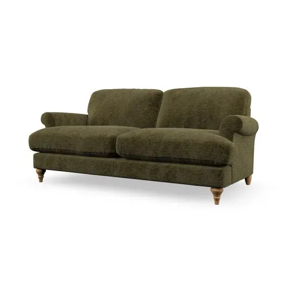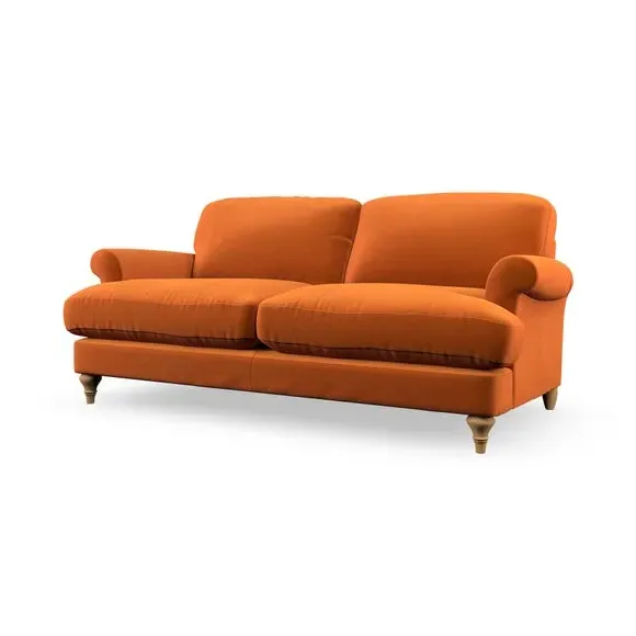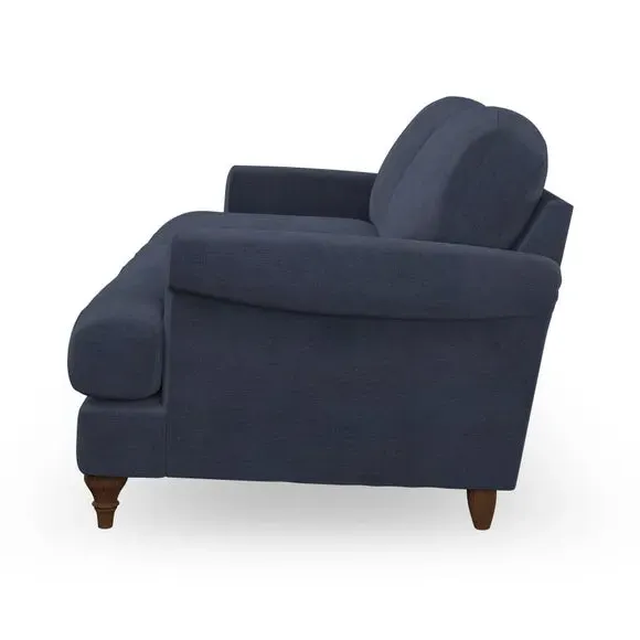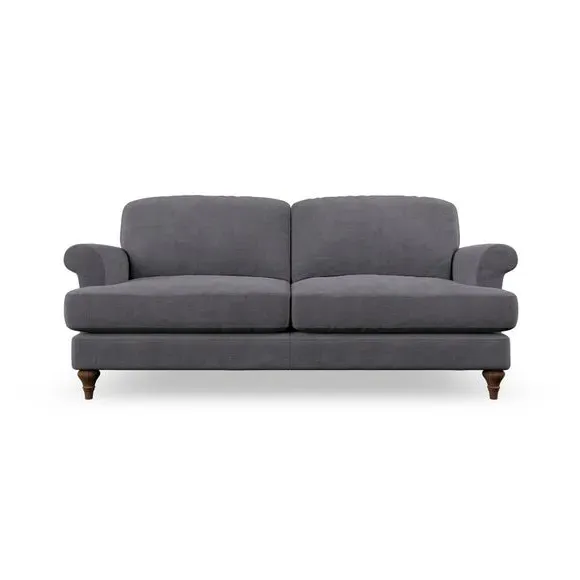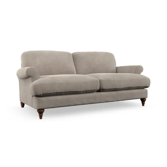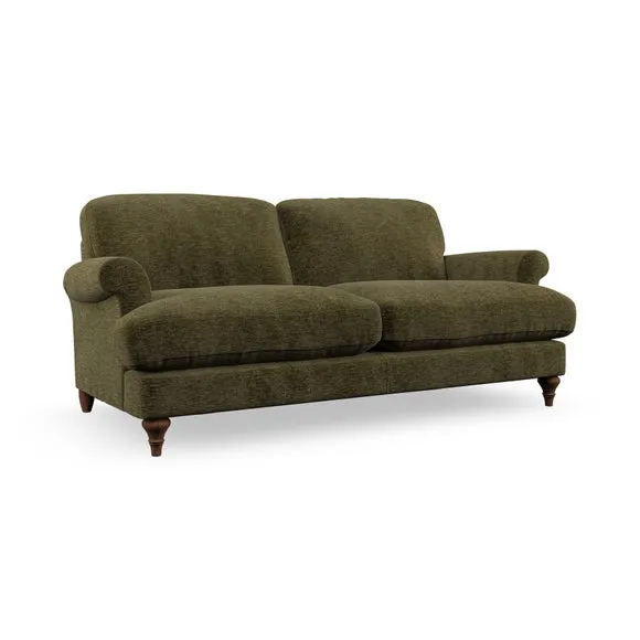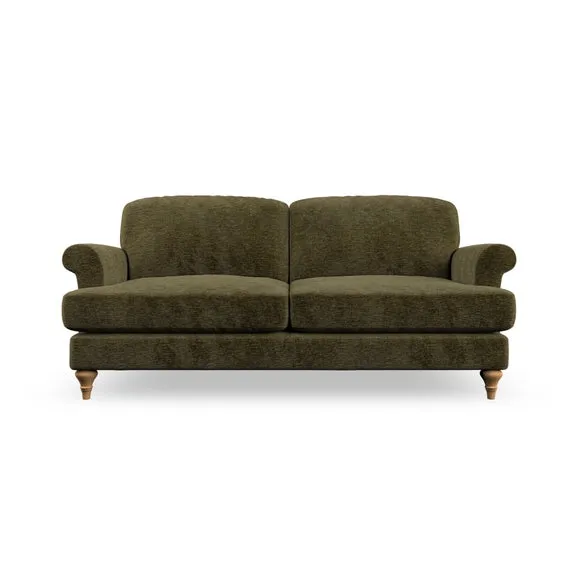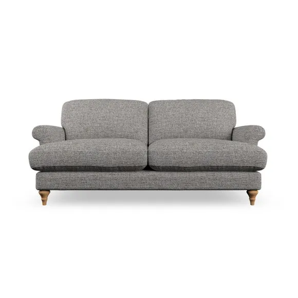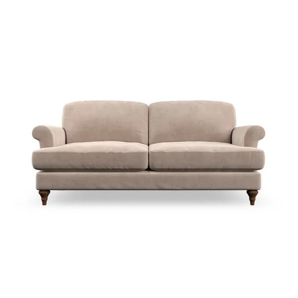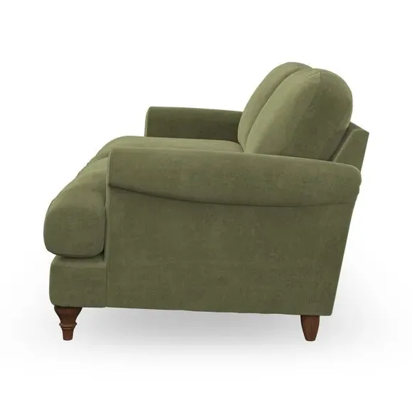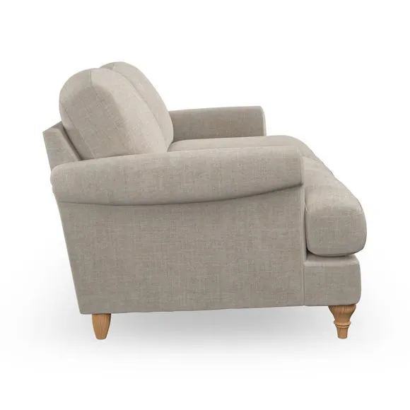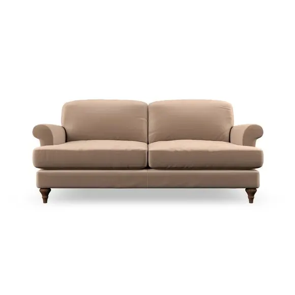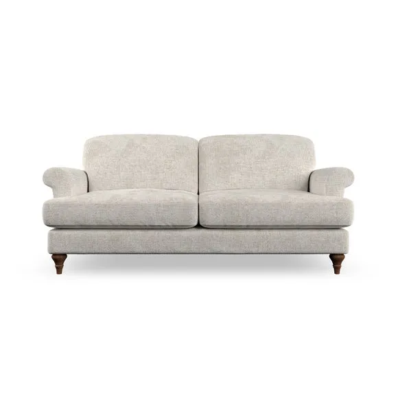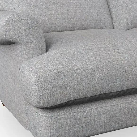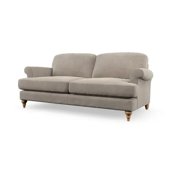* Elegant, classic design* Scroll Arms* Lugged seat cushion* Serpentine seat springs* Choose your orientation, support, fabric and leg colour The Evie Large 2 Seater Sofa offers a comfortable and refined seating solution for more compact spaces. With its slim scroll arms and neat lugged seat cushions, this sofa combines practicality with a classic design. The fibre-filled back cushions add a soft yet supportive feel, perfect for everyday lounging. Choose your preferred fabric, colour, cushion filling, and leg finish to make this piece truly your own.