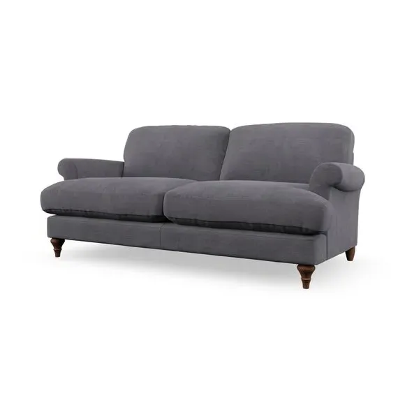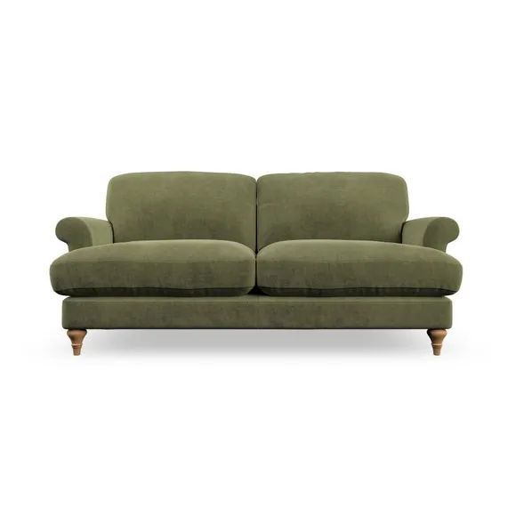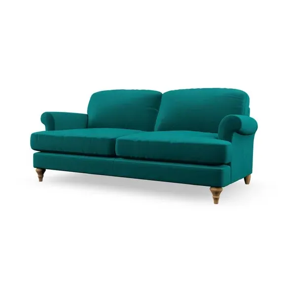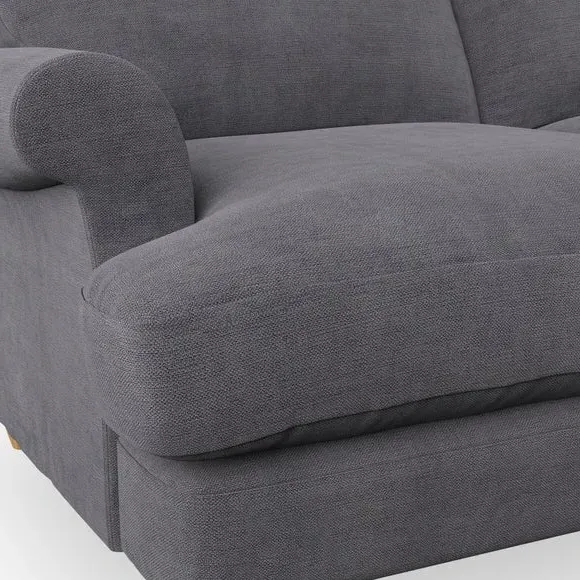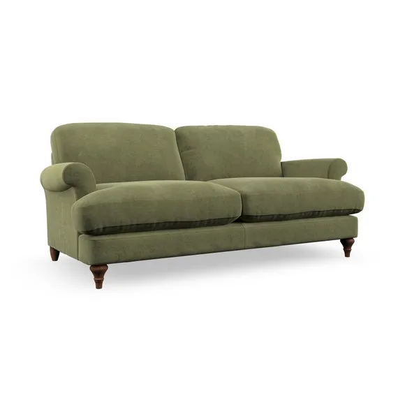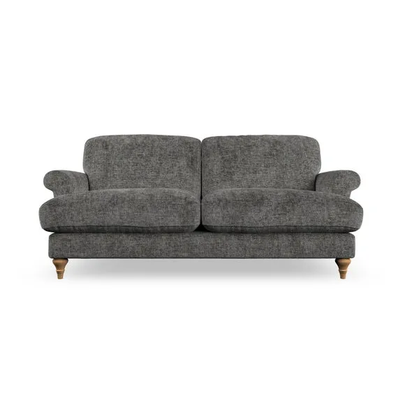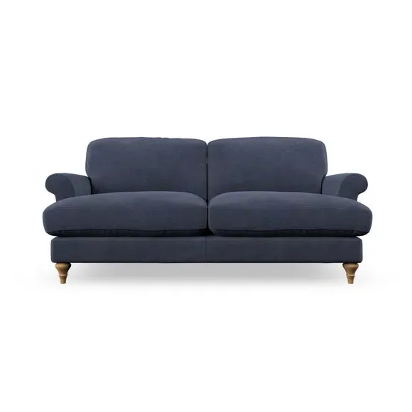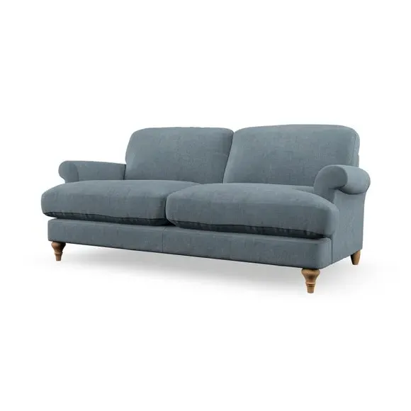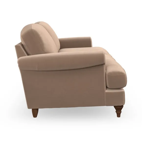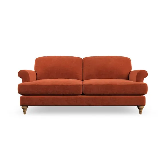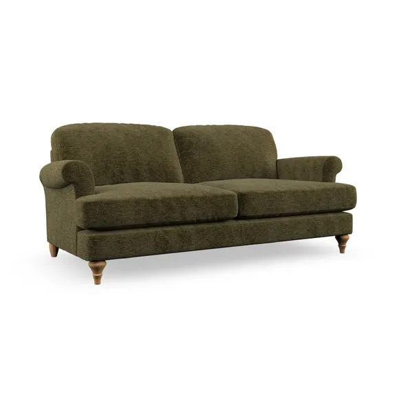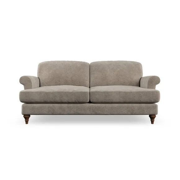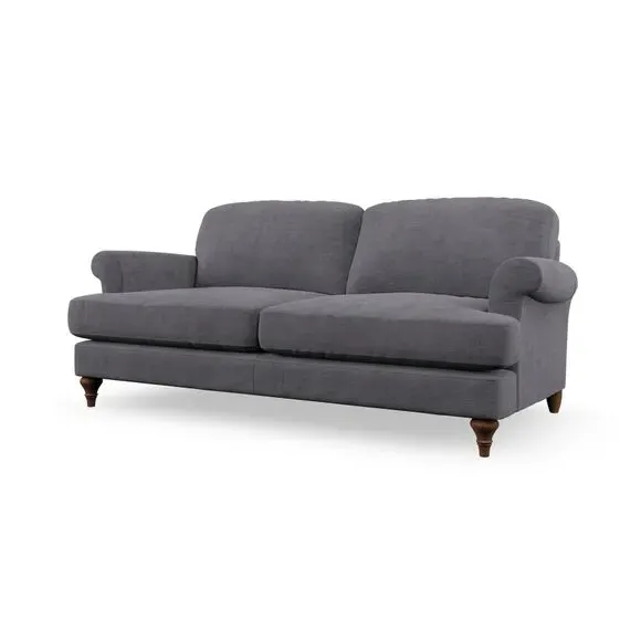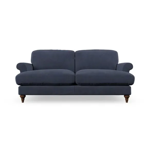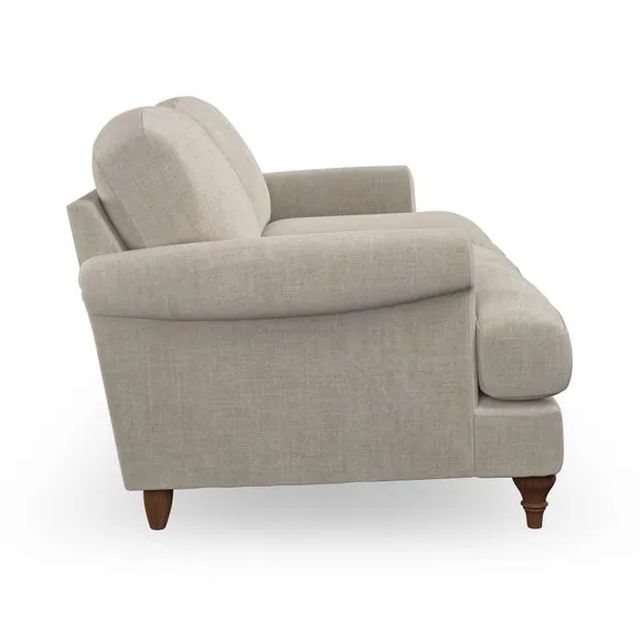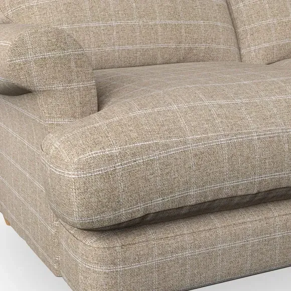 * Elegant, classic design* Scroll Arms* Lugged seat cushion* Serpentine seat springs* Choose your orientation, support, fabric and leg colour The Evie Large 2 Seater Sofa offers a comfortable and refined seating solution for more compact spaces. With its slim scroll arms and neat lugged seat cushions, this sofa combines practicality with a classic design. The fibre-filled back cushions add a soft yet supportive feel, perfect for everyday lounging. Choose your preferred fabric, colour, cushion filling, and leg finish to make this piece truly your own.