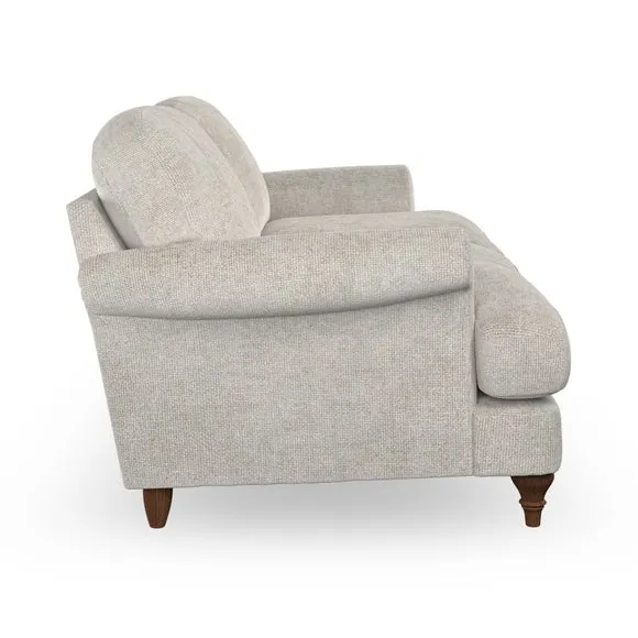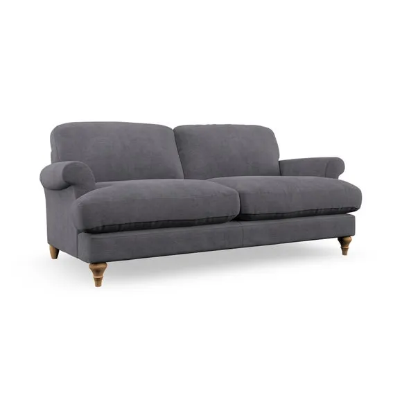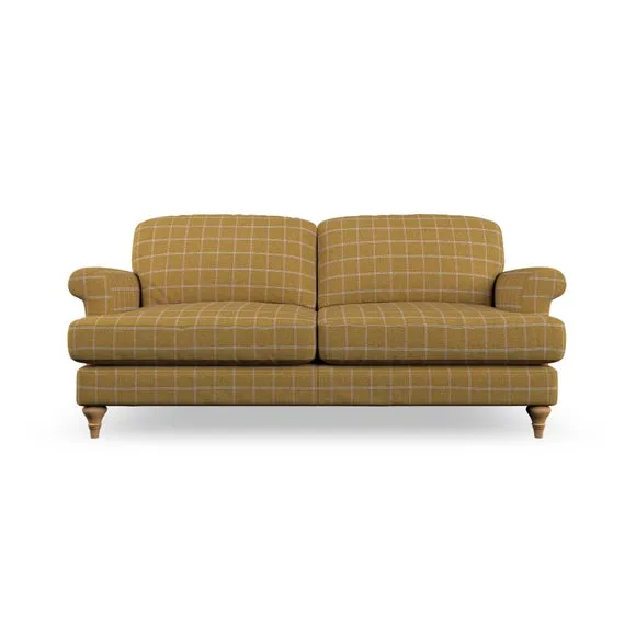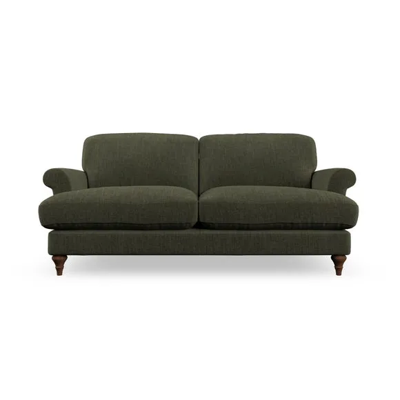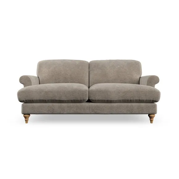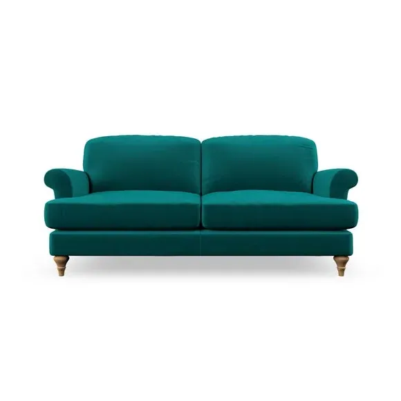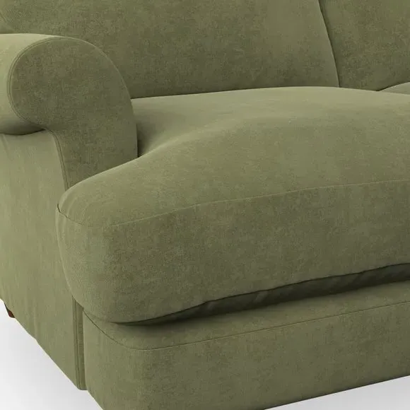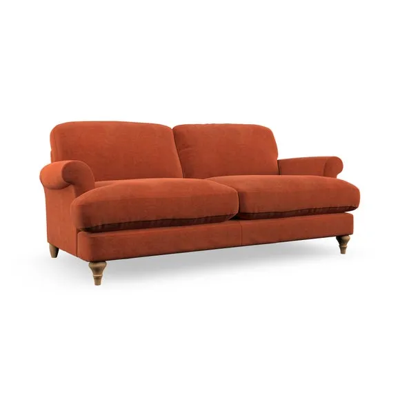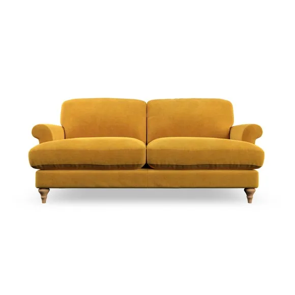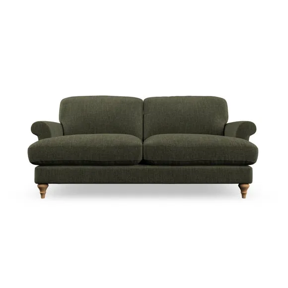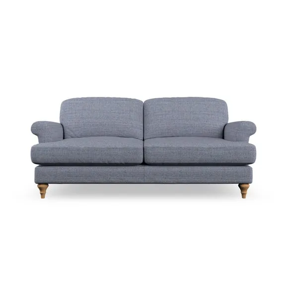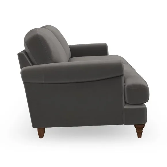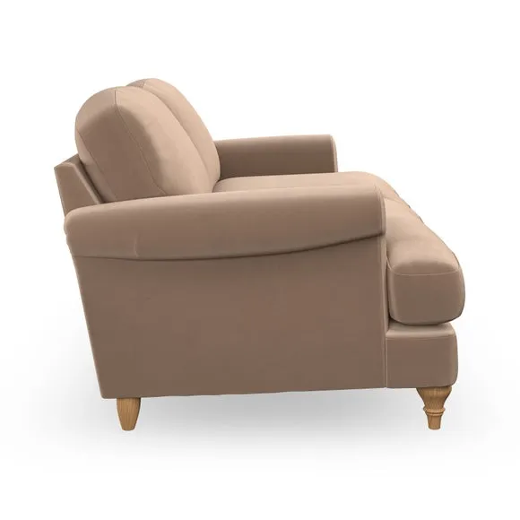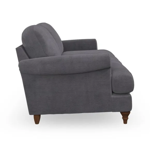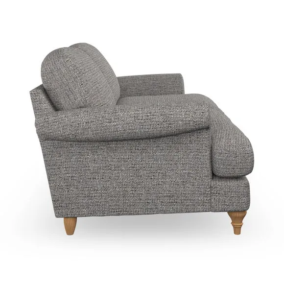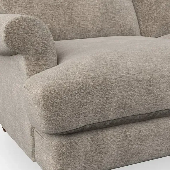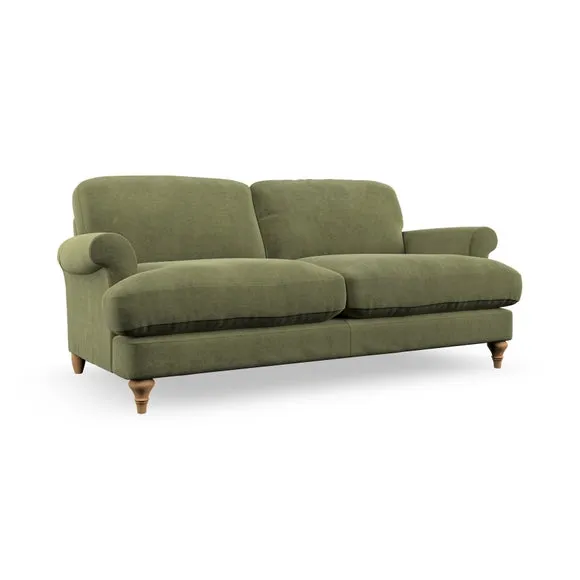 * Elegant, classic design* Scroll Arms* Lugged seat cushion* Serpentine seat springs* Choose your orientation, support, fabric and leg colour The Evie Large 2 Seater Sofa offers a comfortable and refined seating solution for more compact spaces. With its slim scroll arms and neat lugged seat cushions, this sofa combines practicality with a classic design. The fibre-filled back cushions add a soft yet supportive feel, perfect for everyday lounging. Choose your preferred fabric, colour, cushion filling, and leg finish to make this piece truly your own.