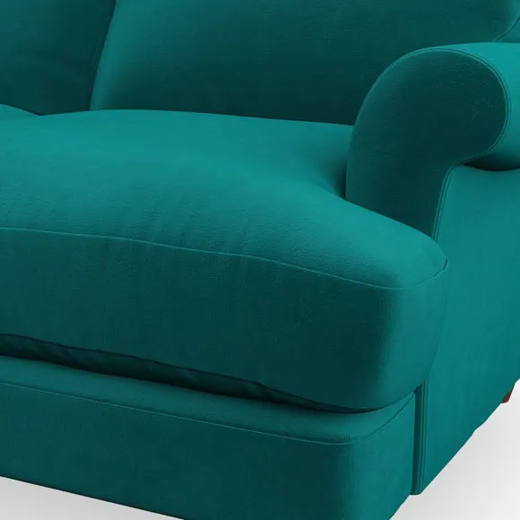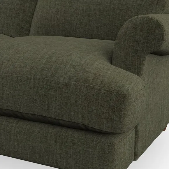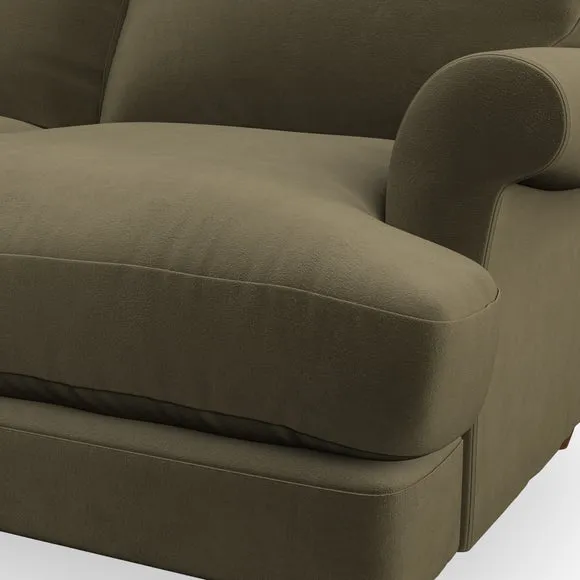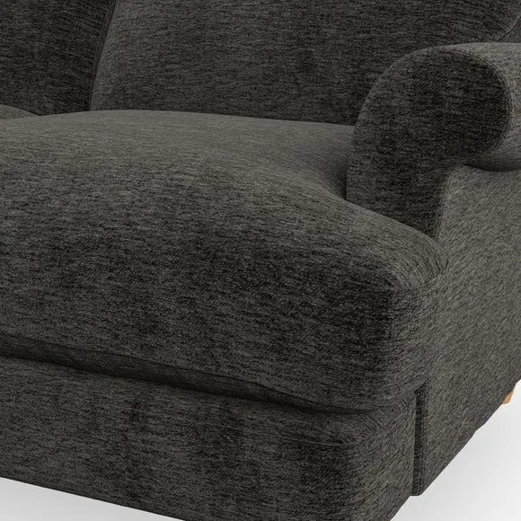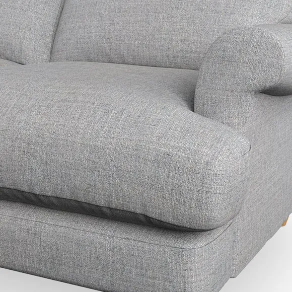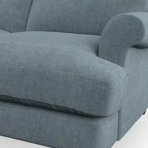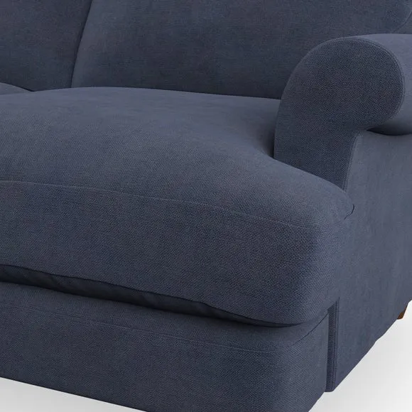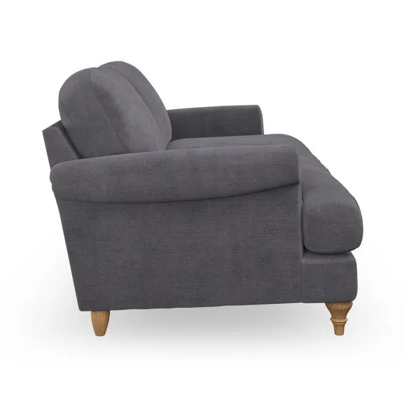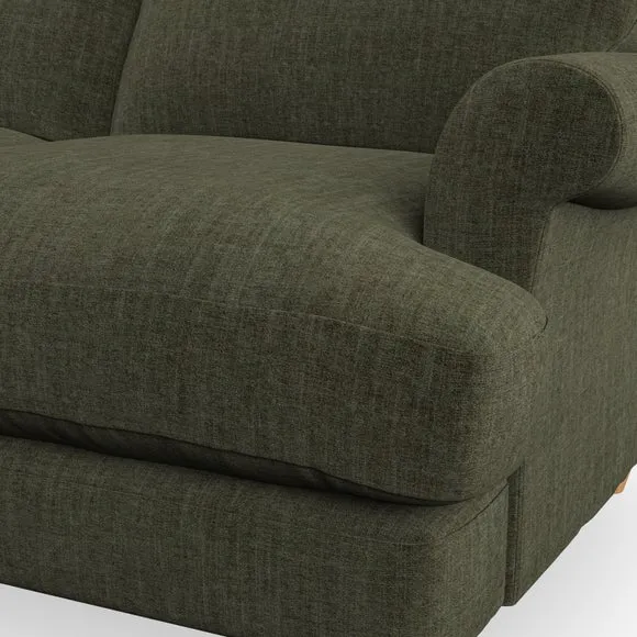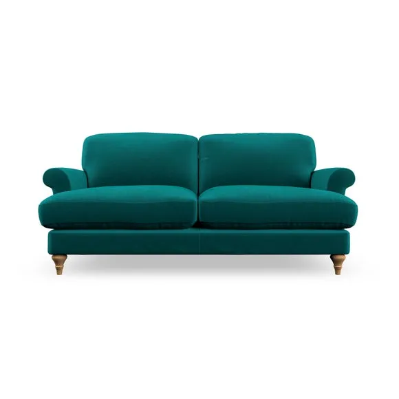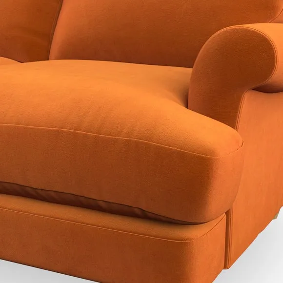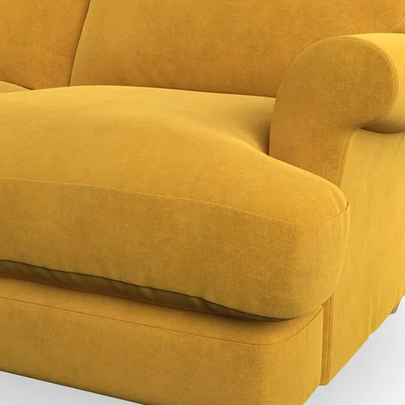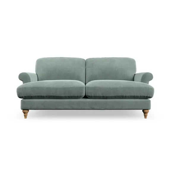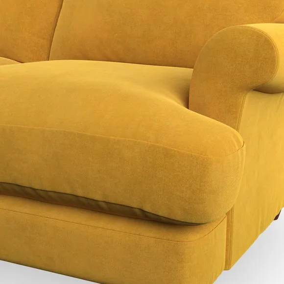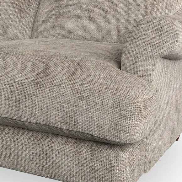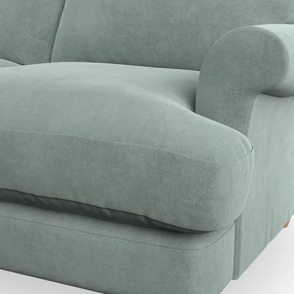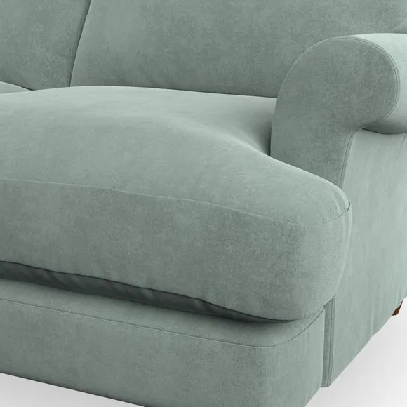 * Elegant, classic design* Scroll Arms* Lugged seat cushion* Serpentine seat springs* Choose your orientation, support, fabric and leg colour The Evie Large 2 Seater Sofa offers a comfortable and refined seating solution for more compact spaces. With its slim scroll arms and neat lugged seat cushions, this sofa combines practicality with a classic design. The fibre-filled back cushions add a soft yet supportive feel, perfect for everyday lounging. Choose your preferred fabric, colour, cushion filling, and leg finish to make this piece truly your own.