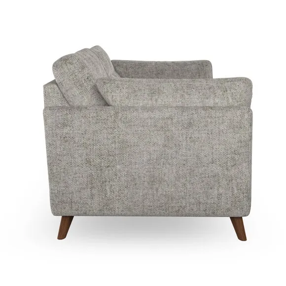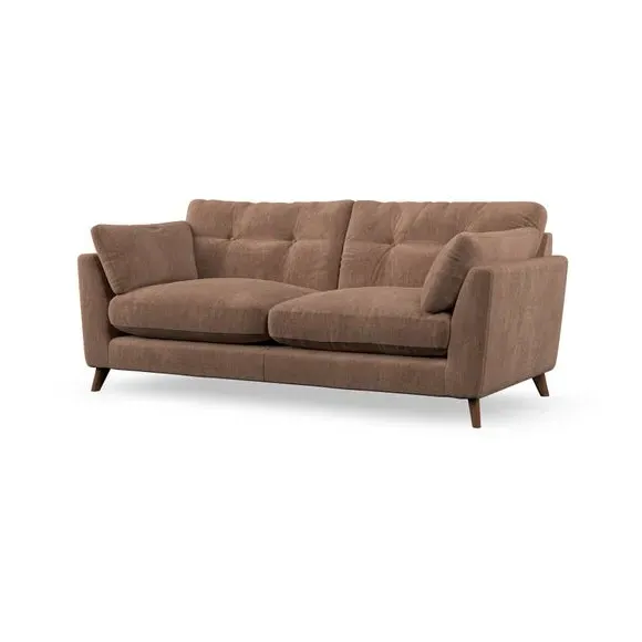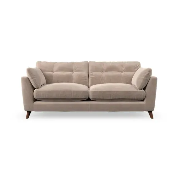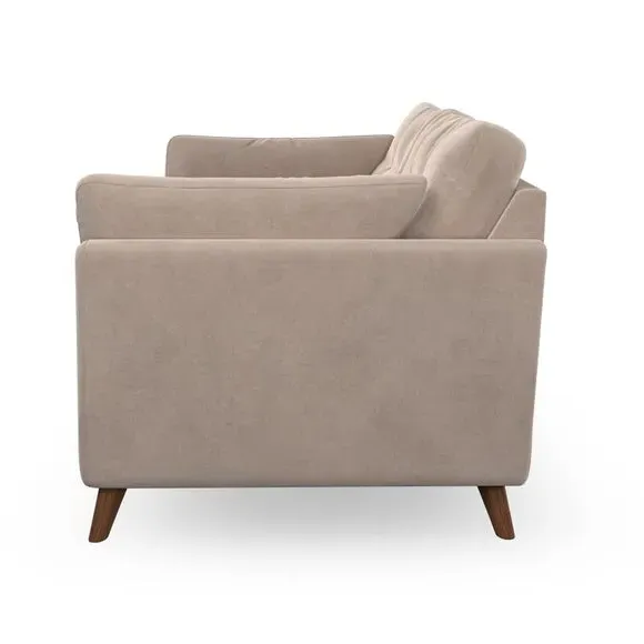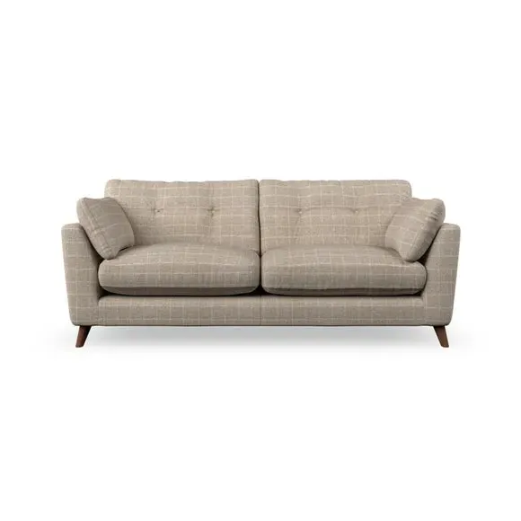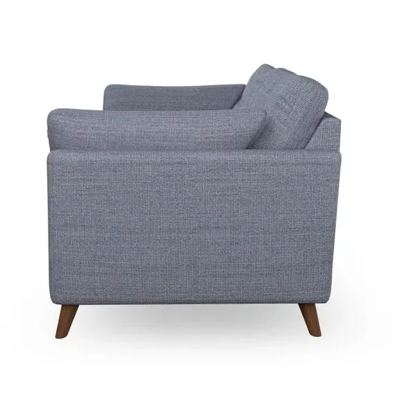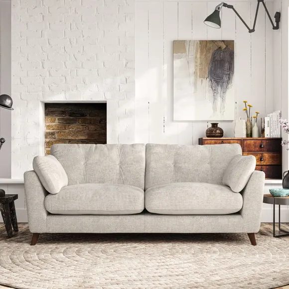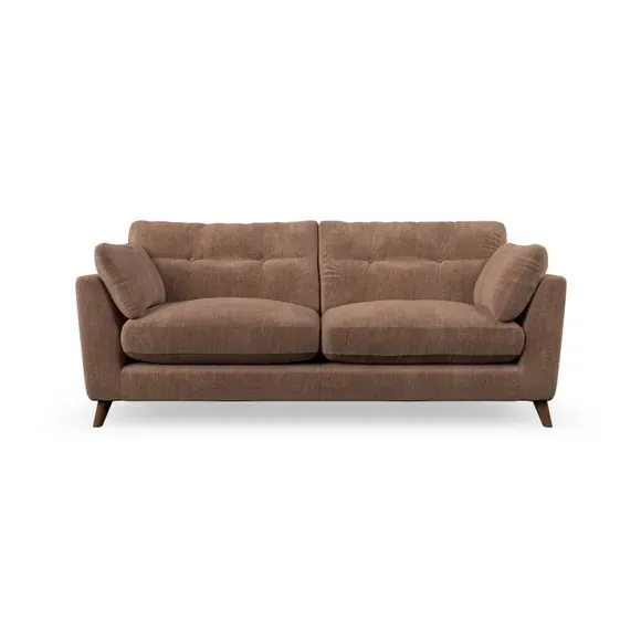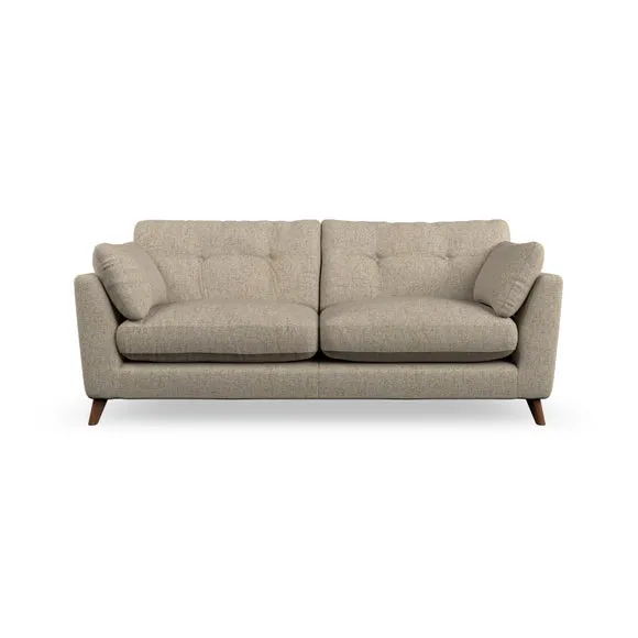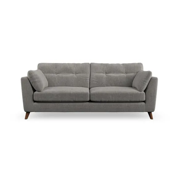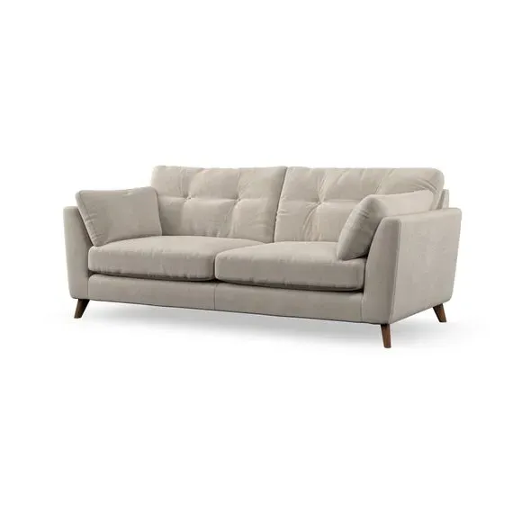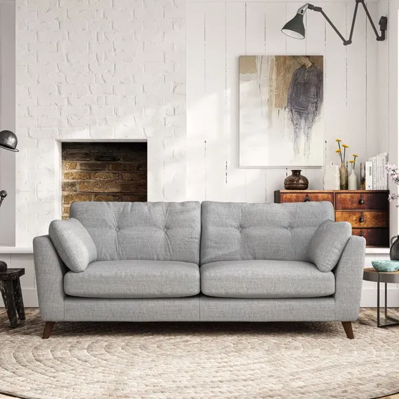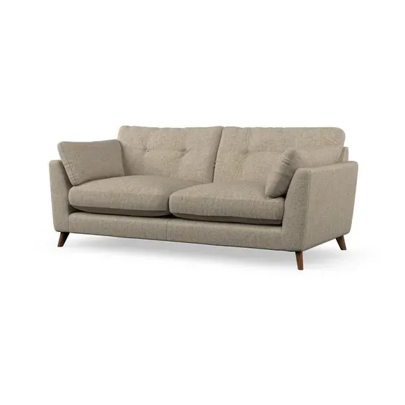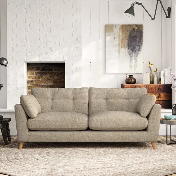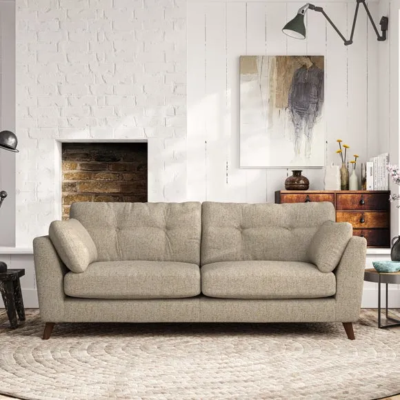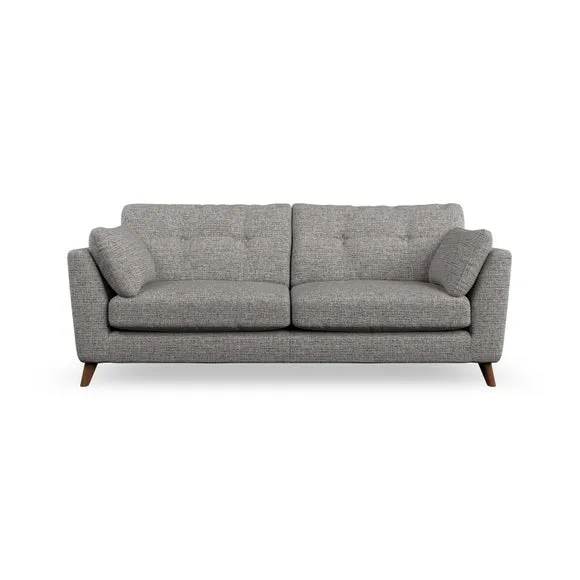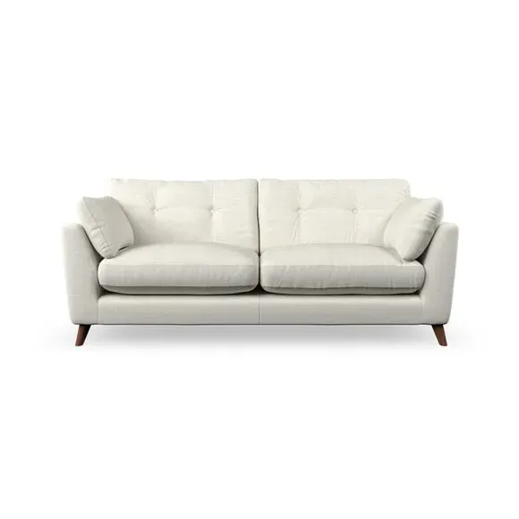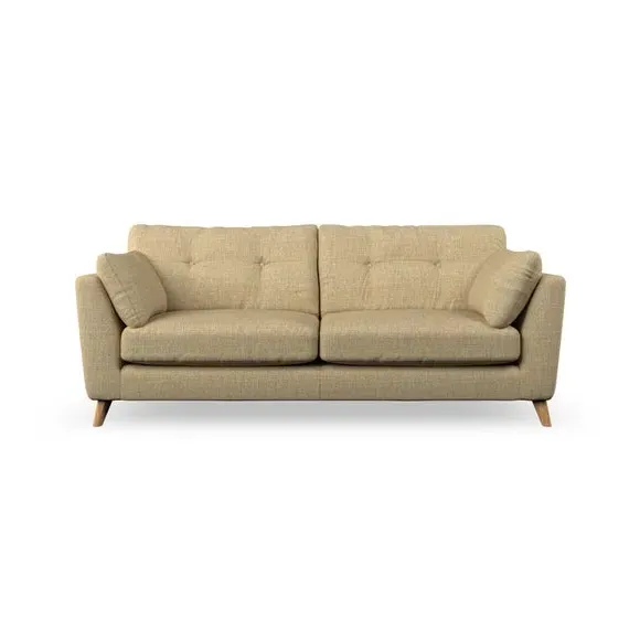 * Mid-century style* Pillow top arms* Button pull details* Choose fabric type, leg colour and cushion filling With its high legs and plush fibre-filled arm pads, this sofa provides a stylish yet inviting atmosphere. The button-pull details on the supportive, fibre-filled back cushions enhance its elegant design, while the higher back cushions ensure excellent support for your back and shoulders. You can customise your Peyton sofa by choosing between a low-maintenance foam seat or a more relaxed 'Qualofill Blue' fibre seat for added comfort. Featuring serpentine seat springs for durability and long-lasting support, the sofa is also equipped with splayed hardwood legs available in two finishes, allowing for a personalised touch.