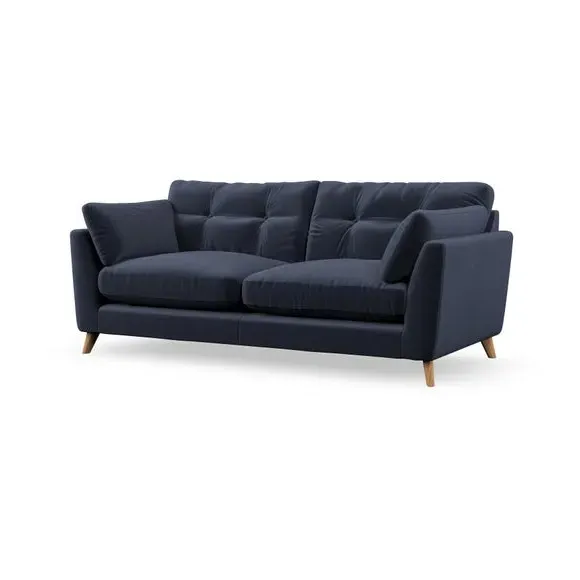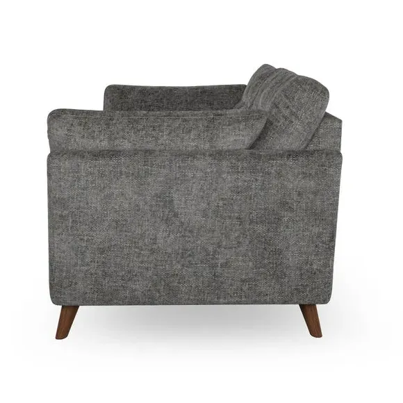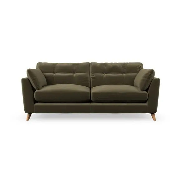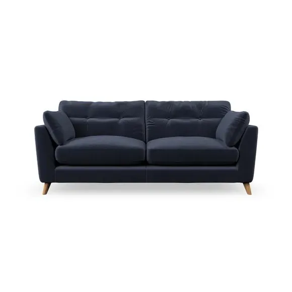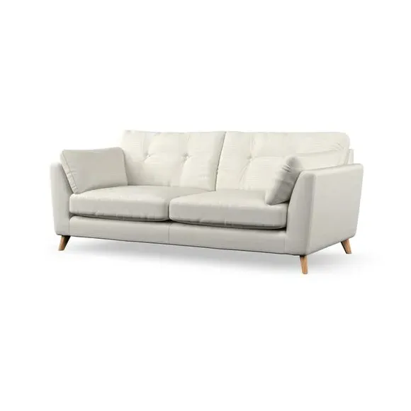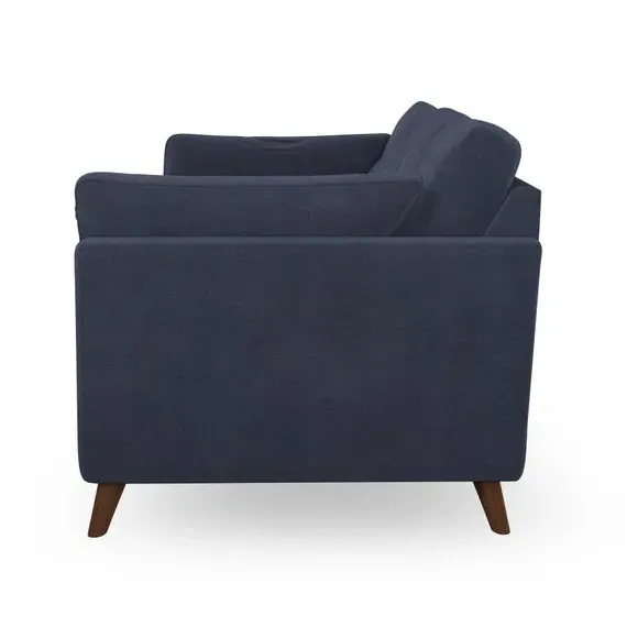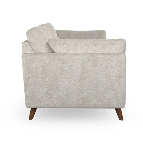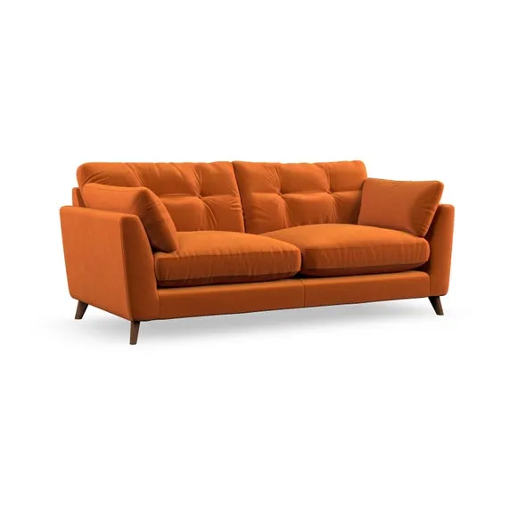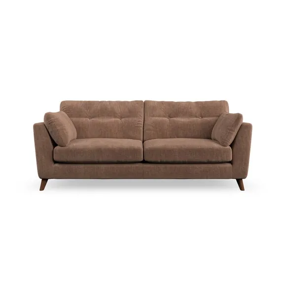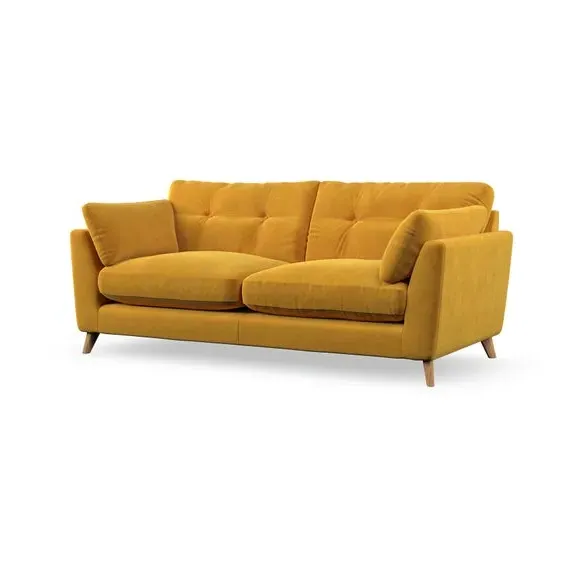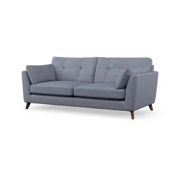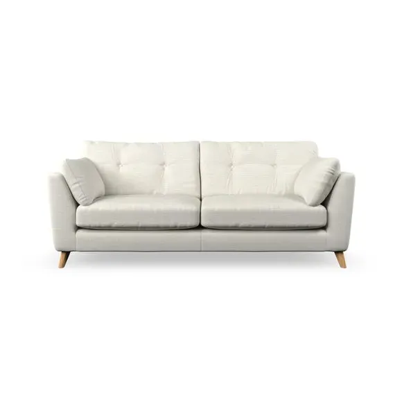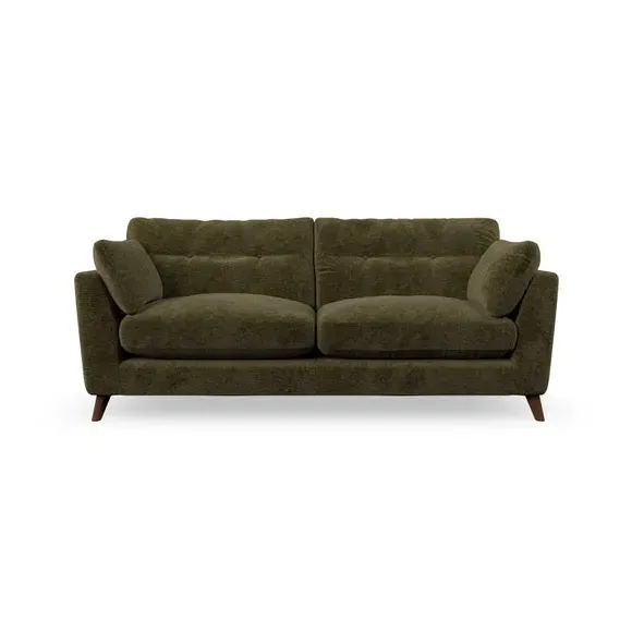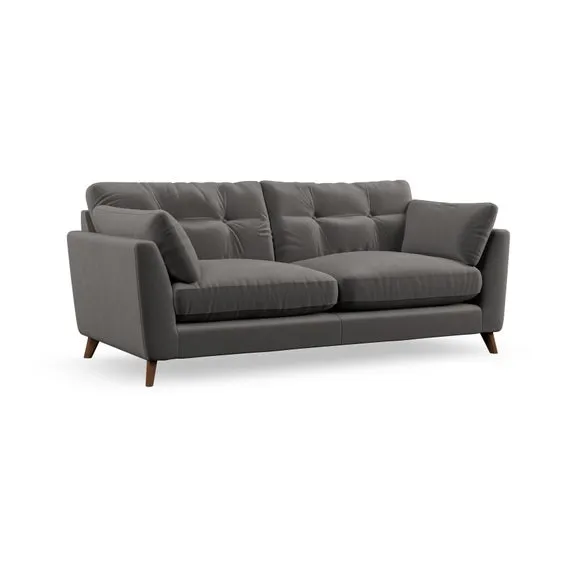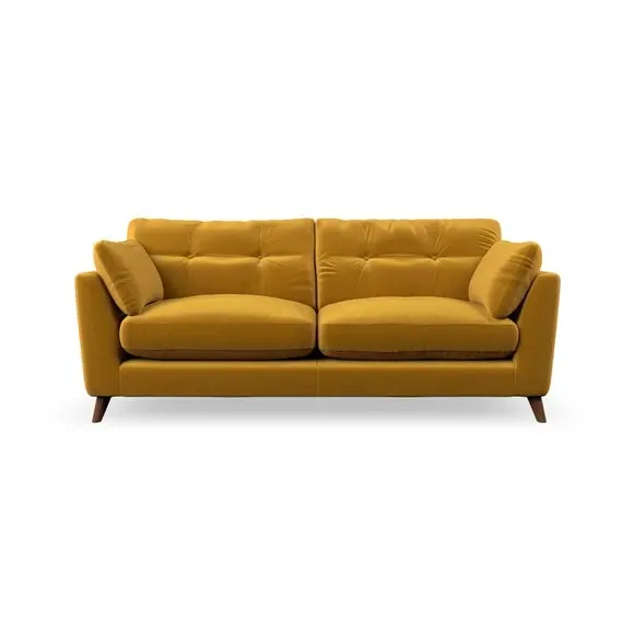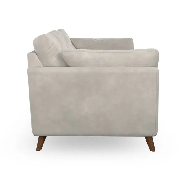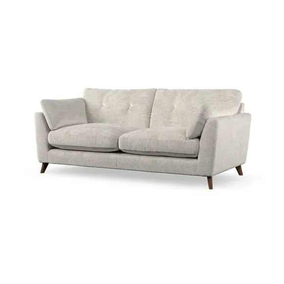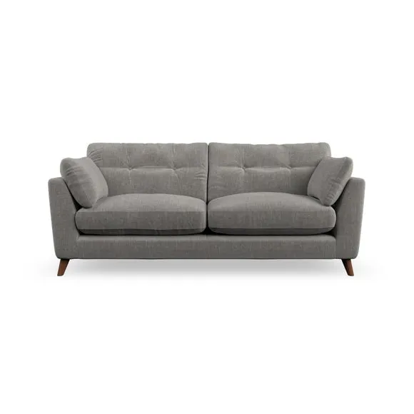 * Mid-century style* Pillow top arms* Button pull details* Choose fabric type, leg colour and cushion filling With its high legs and plush fibre-filled arm pads, this sofa provides a stylish yet inviting atmosphere. The button-pull details on the supportive, fibre-filled back cushions enhance its elegant design, while the higher back cushions ensure excellent support for your back and shoulders. You can customise your Peyton sofa by choosing between a low-maintenance foam seat or a more relaxed 'Qualofill Blue' fibre seat for added comfort. Featuring serpentine seat springs for durability and long-lasting support, the sofa is also equipped with splayed hardwood legs available in two finishes, allowing for a personalised touch.