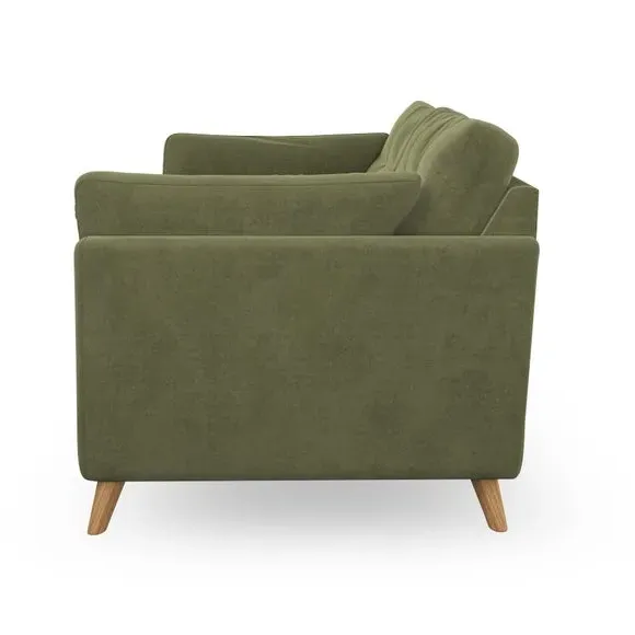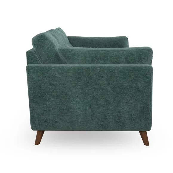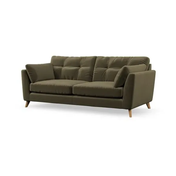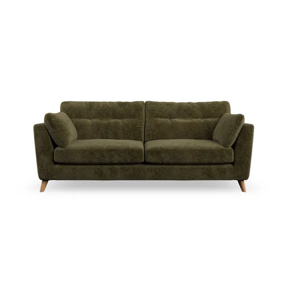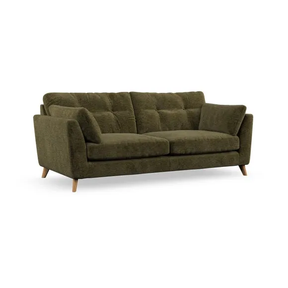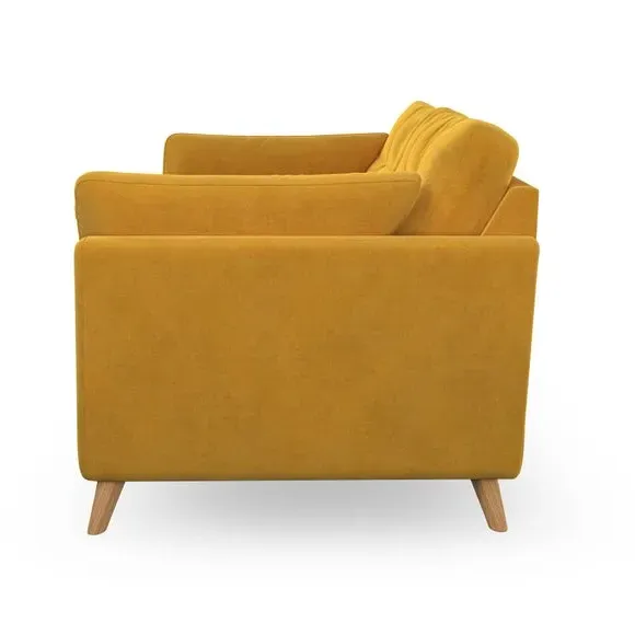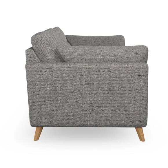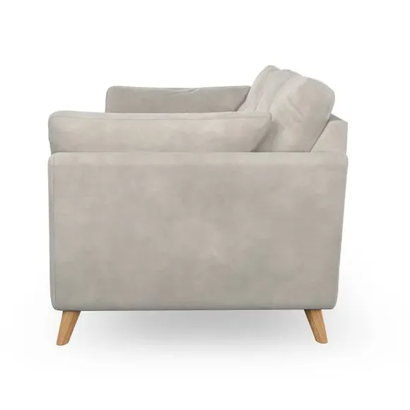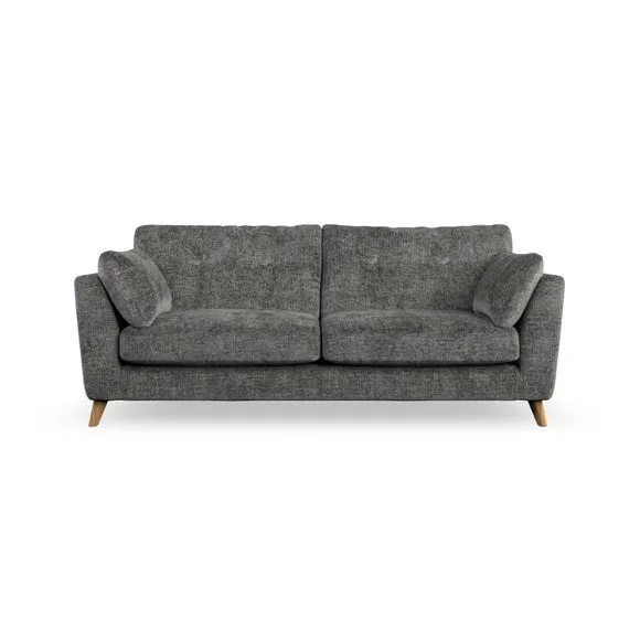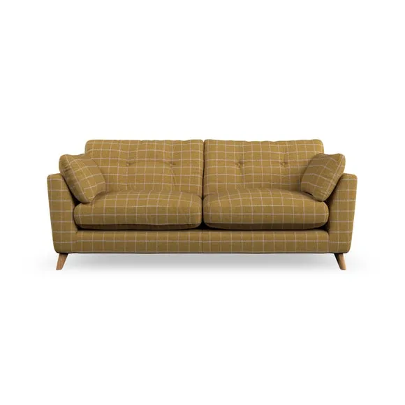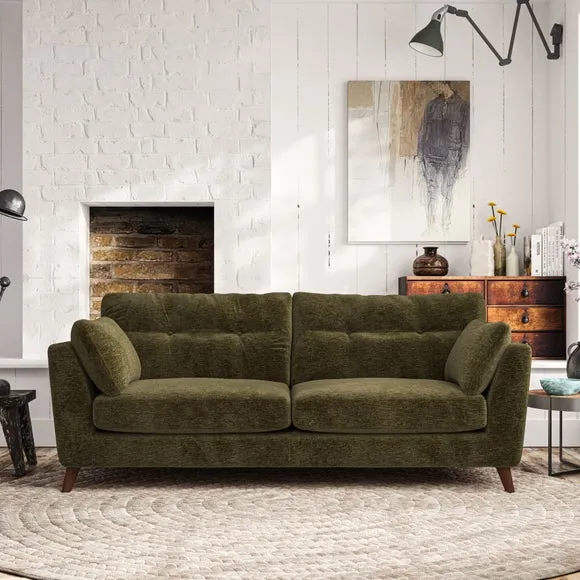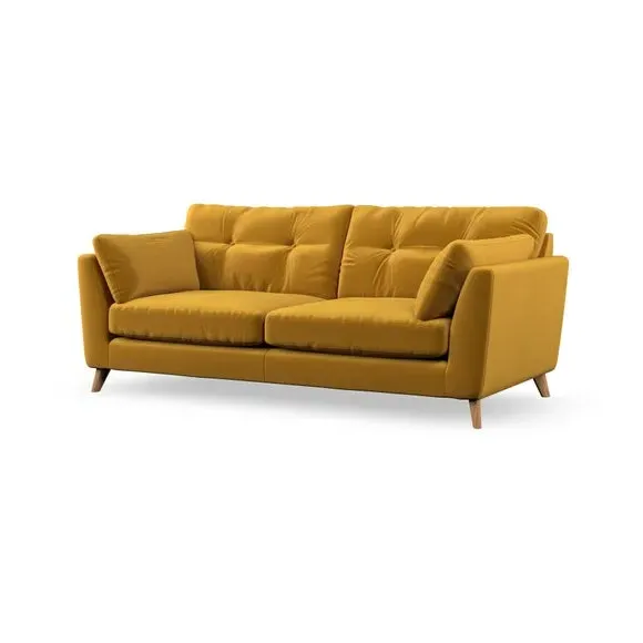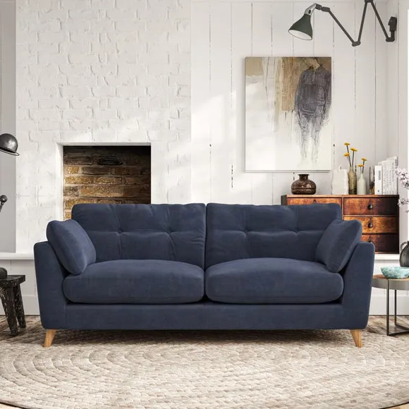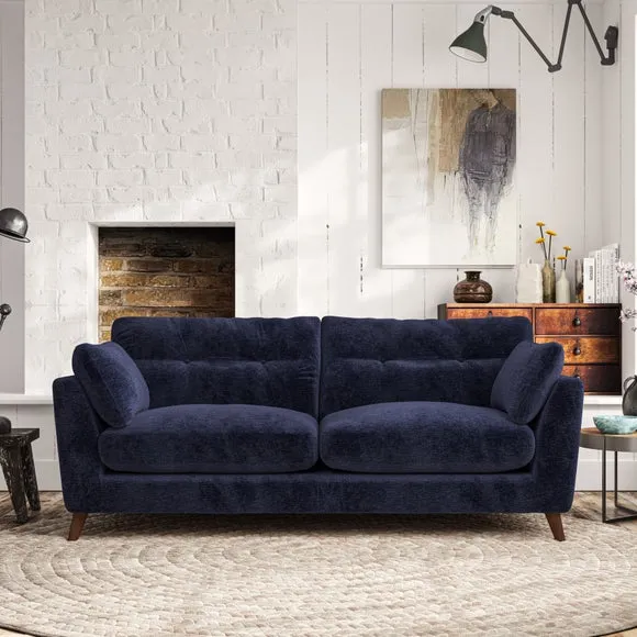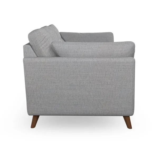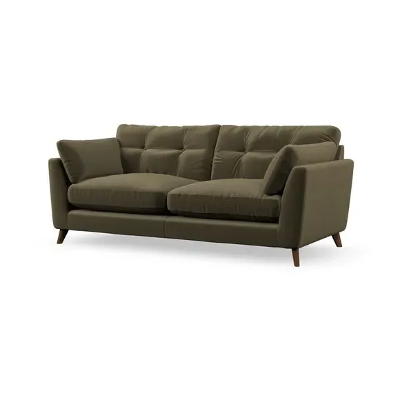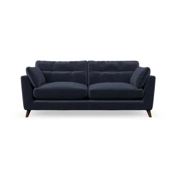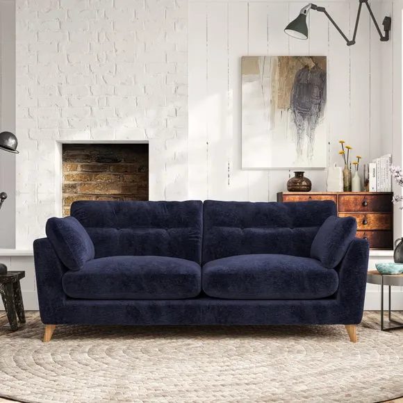 * Mid-century style* Pillow top arms* Button pull details* Choose fabric type, leg colour and cushion filling With its high legs and plush fibre-filled arm pads, this sofa provides a stylish yet inviting atmosphere. The button-pull details on the supportive, fibre-filled back cushions enhance its elegant design, while the higher back cushions ensure excellent support for your back and shoulders. You can customise your Peyton sofa by choosing between a low-maintenance foam seat or a more relaxed 'Qualofill Blue' fibre seat for added comfort. Featuring serpentine seat springs for durability and long-lasting support, the sofa is also equipped with splayed hardwood legs available in two finishes, allowing for a personalised touch.
