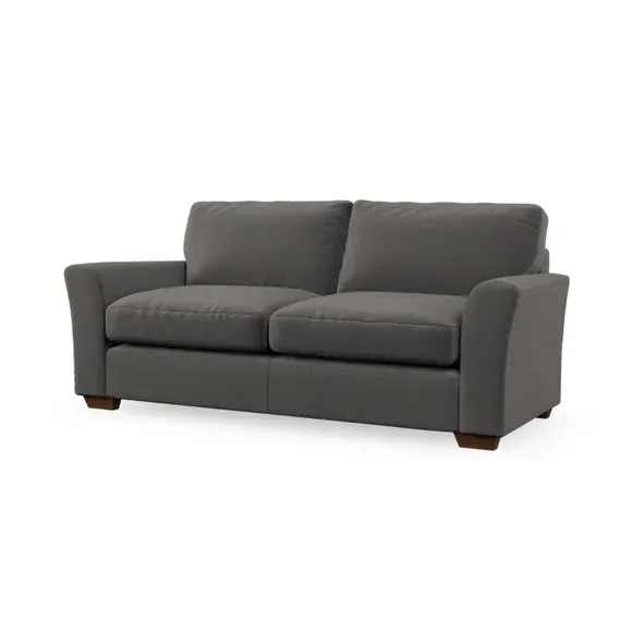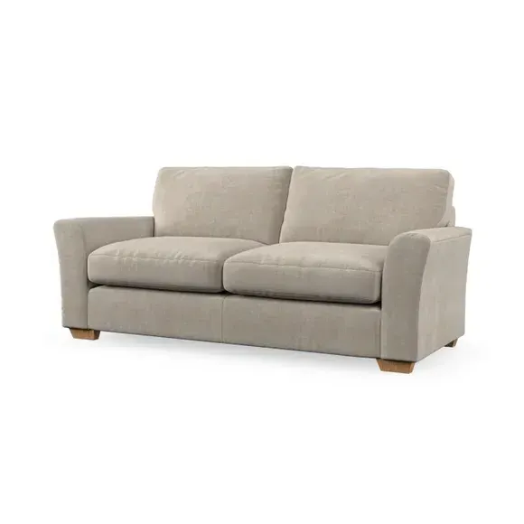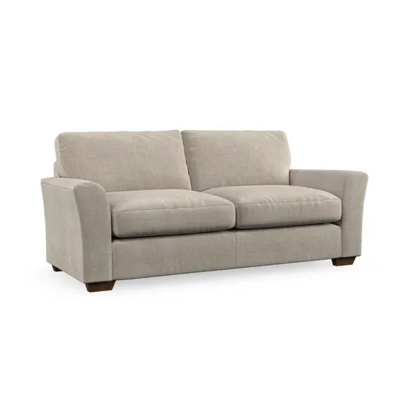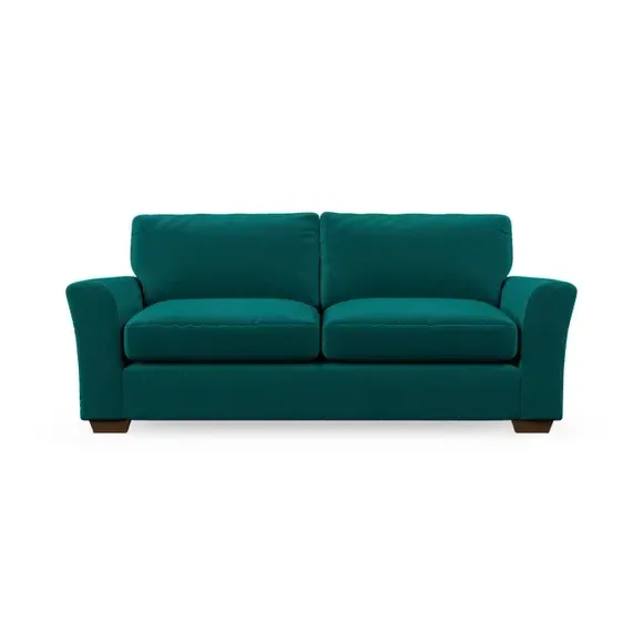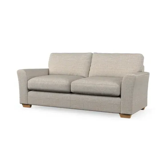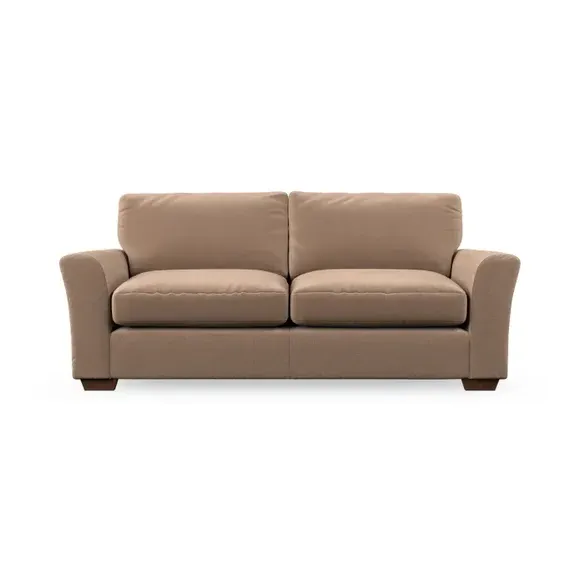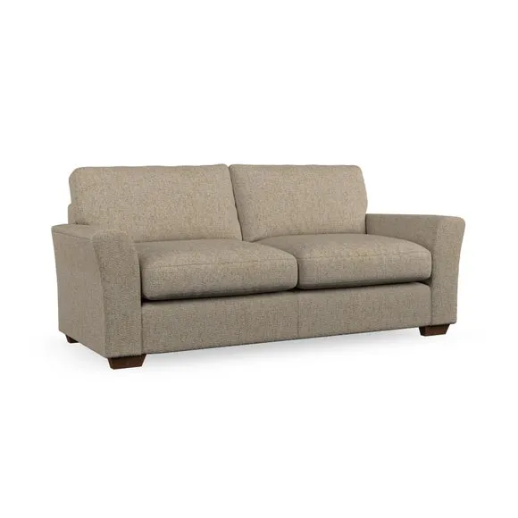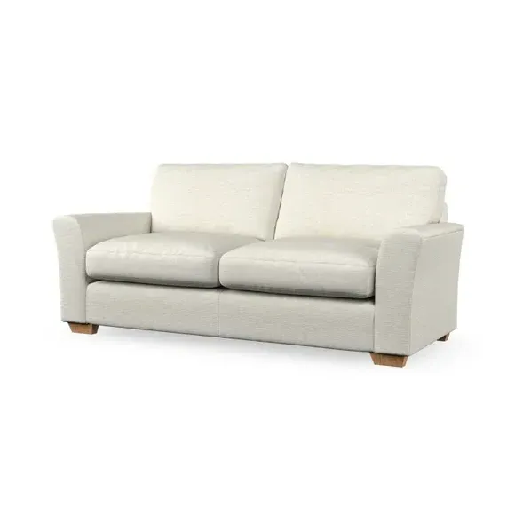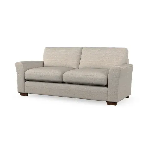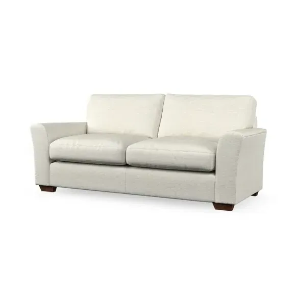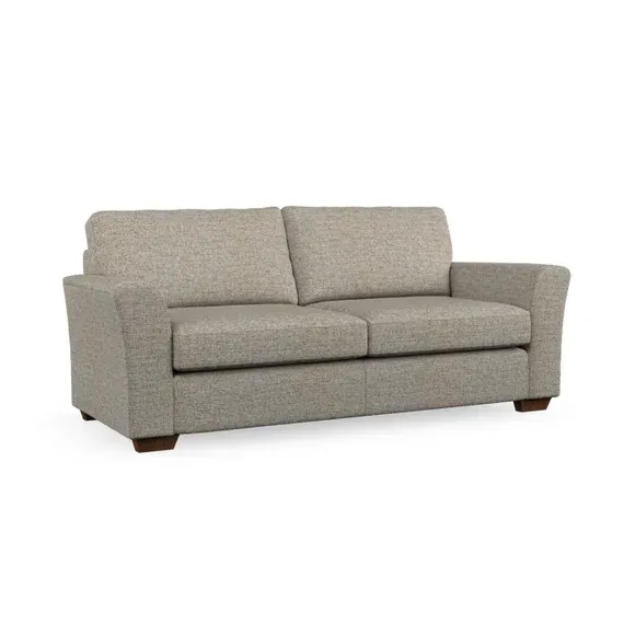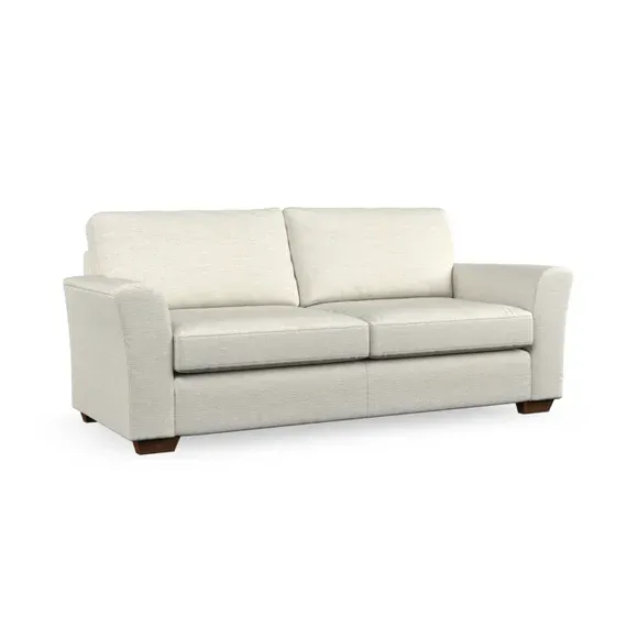 * Classical modern style* Flared arms* Stitched arm detailing* High back* Serpentine seat springs* Choose your support, fabric and leg colour This sofa embodies timeless elegance with its subtle swept arm design and refined top-stitched detailing. Generous fibre-filled higher back cushions provide exceptional back and shoulder support, ensuring lasting comfort. Customise this piece with your choice of a supportive foam seat or the softer, eco-friendly ‘Qualofill Blue’ fibre seat. Built for durability, it features serpentine seat springs and solid hardwood legs available in two finishes.