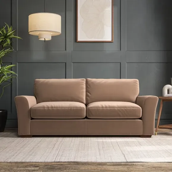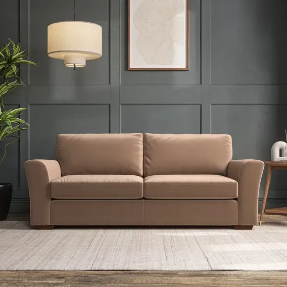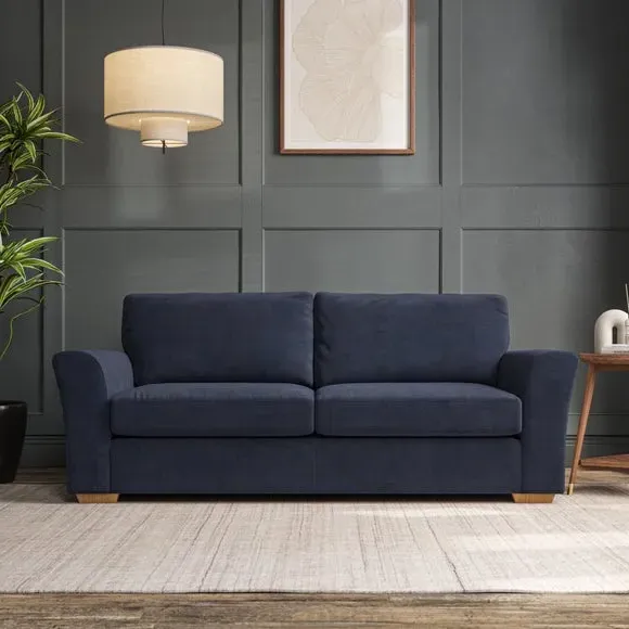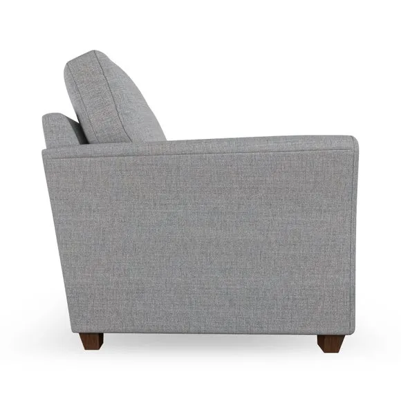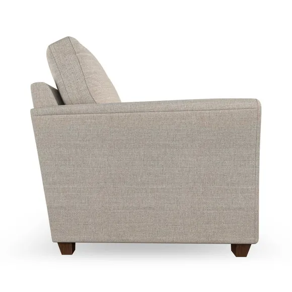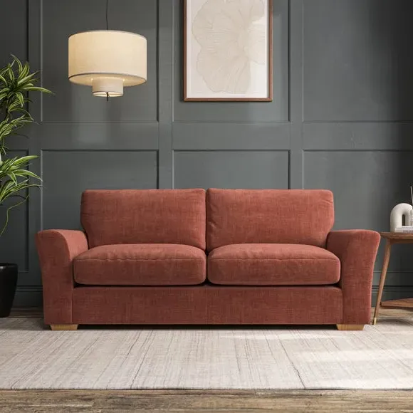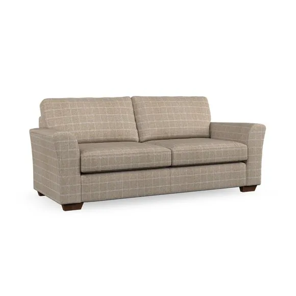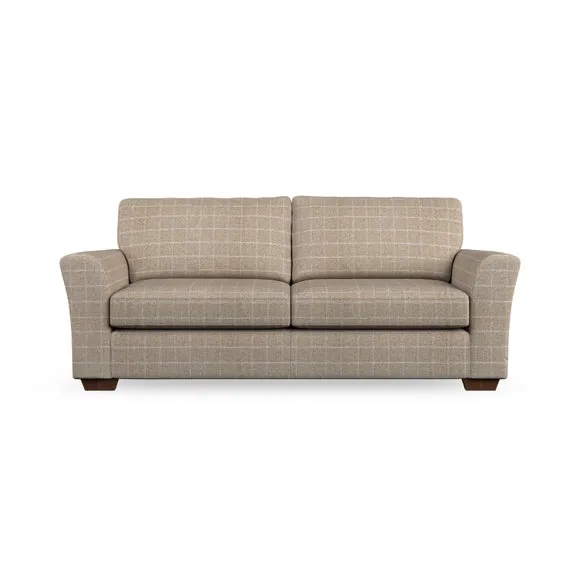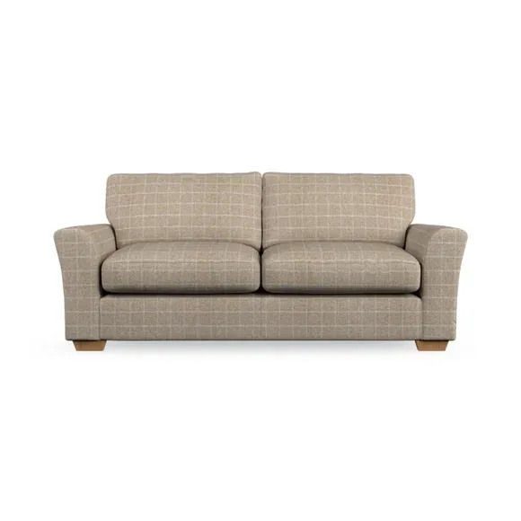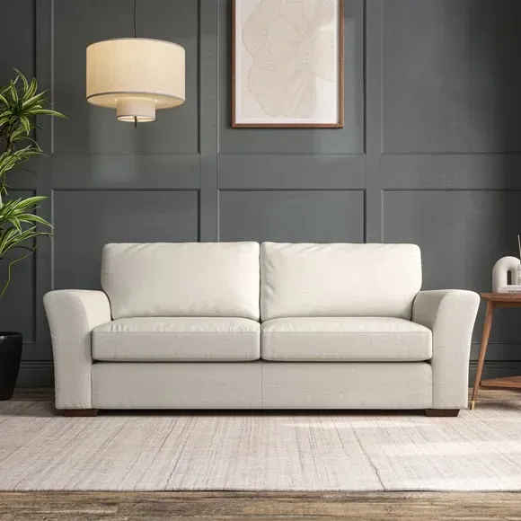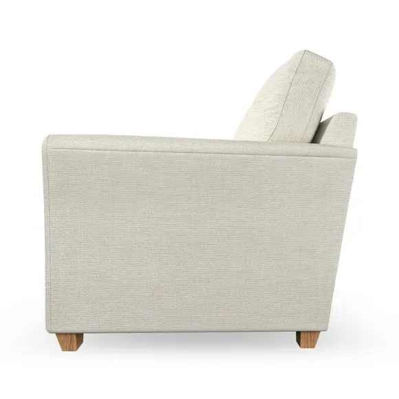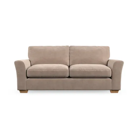 * Classical modern style* Flared arms* Stitched arm detailing* High back* Serpentine seat springs* Choose your support, fabric and leg colour This sofa embodies timeless elegance with its subtle swept arm design and refined top-stitched detailing. Generous fibre-filled higher back cushions provide exceptional back and shoulder support, ensuring lasting comfort. Customise this piece with your choice of a supportive foam seat or the softer, eco-friendly ‘Qualofill Blue’ fibre seat. Built for durability, it features serpentine seat springs and solid hardwood legs available in two finishes.