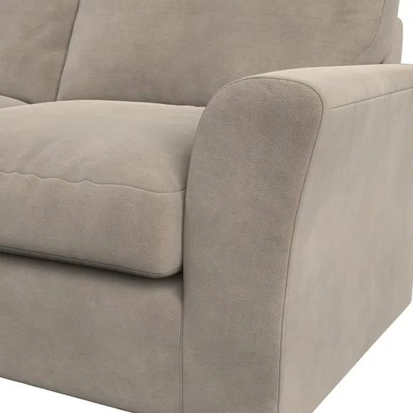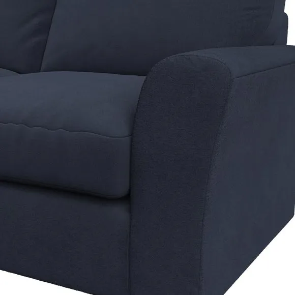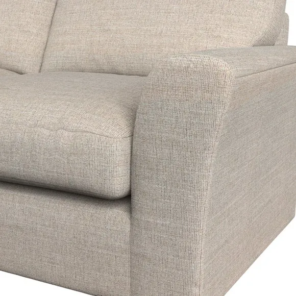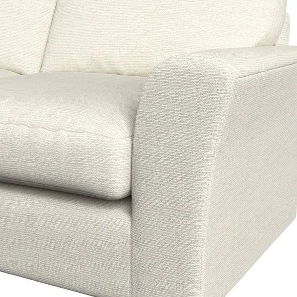The sofa combines classical modern style with its subtle swept arm design and refined top-stitched detailing. Generous fibre-filled higher back cushions provide exceptional back and shoulder support, while the flared arms add contemporary appeal. Built with serpentine seat springs for lasting durability, it features solid hardwood legs and offers customizable seat support options including supportive foam or eco-friendly Qualofill Blue fibre filling.