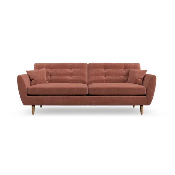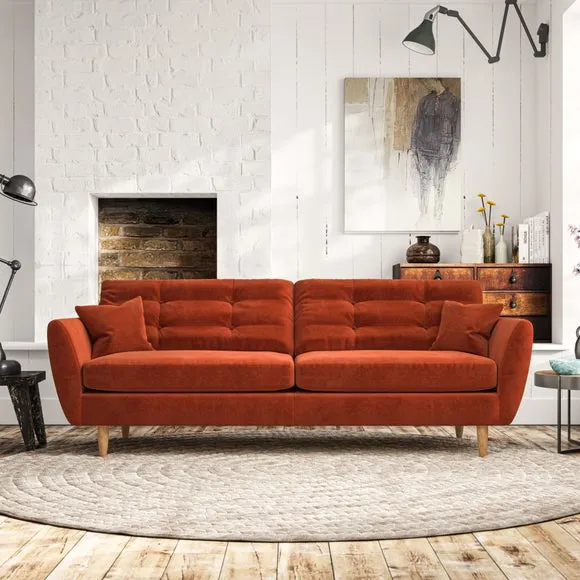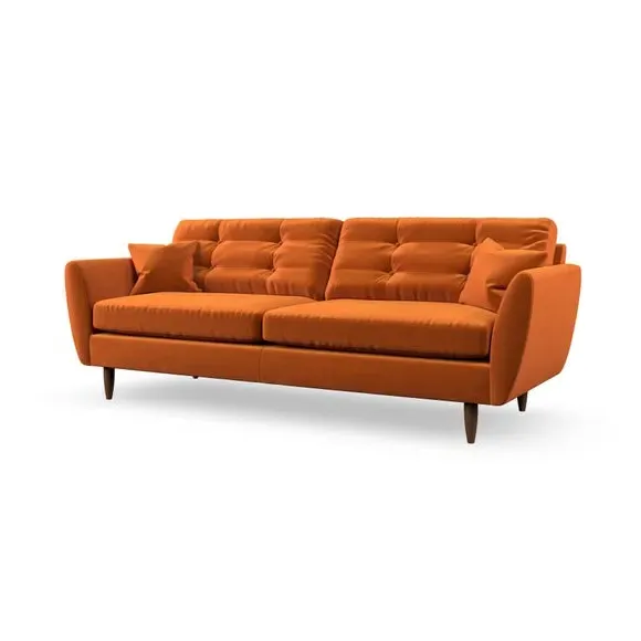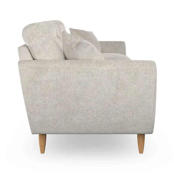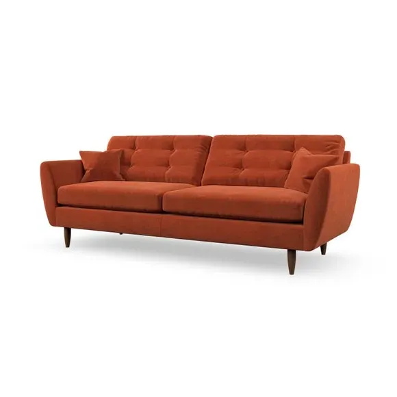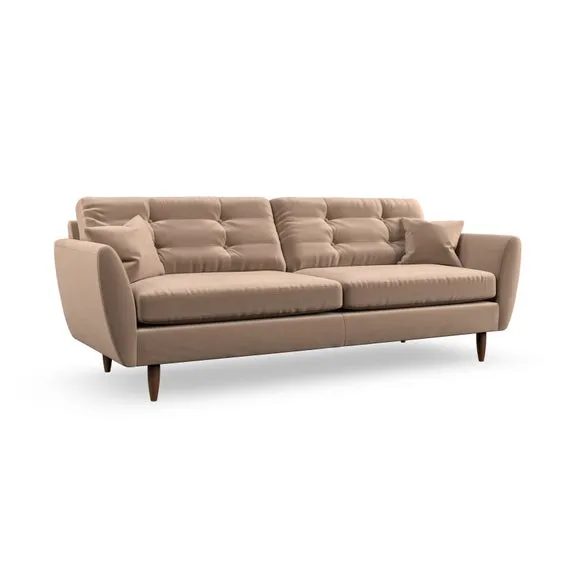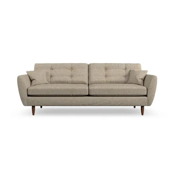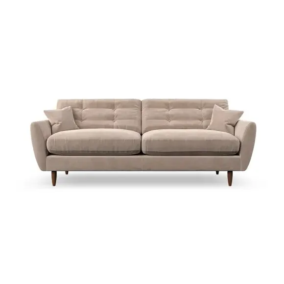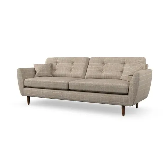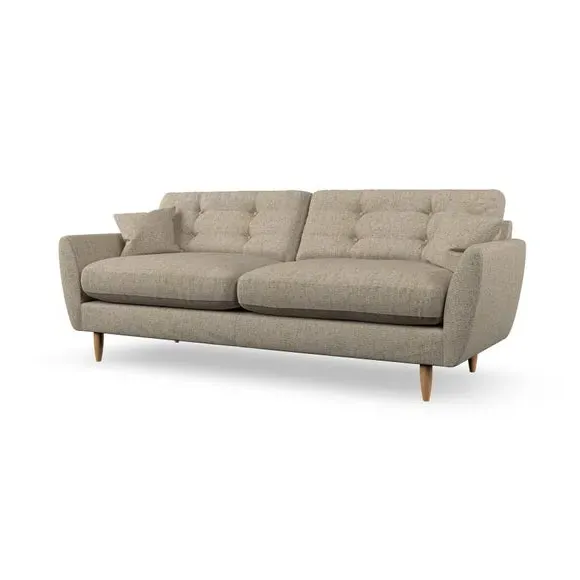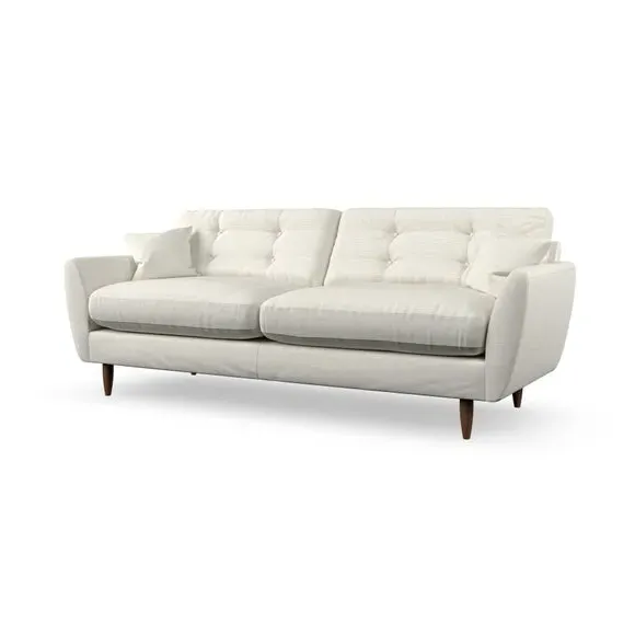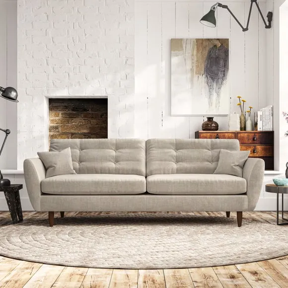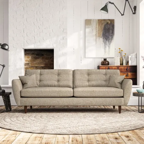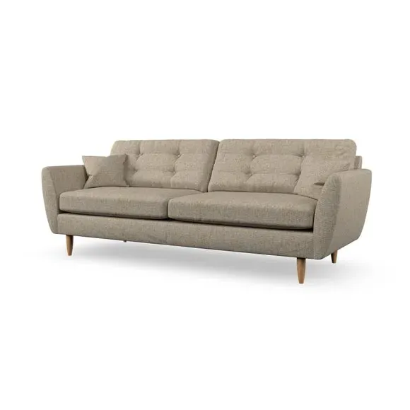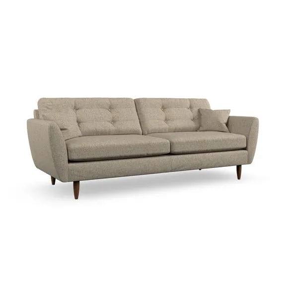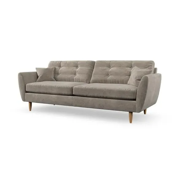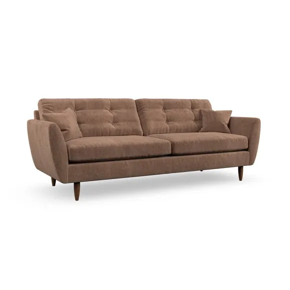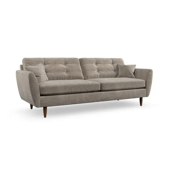 * Scandi design* Tear drop arms* Scatter cushions* Top stitched arm details* Serpentine seat springs* Choose your support, fabric and leg colour The Anders 4 Seater Sofa combines Scandinavian-inspired elegance with spacious comfort, making it the perfect addition to any living space. Its tear-drop shaped arms and fibre-filled scatter cushions offer a refined yet cosy look, while the sleek hardwood legs, available in two finishes, complete the stylish design. The fibre-filled back cushions, featuring a double-row button pull detail, provide both support and a touch of sophistication. For your ideal seating experience, choose between a supportive foam seat or a more relaxed and inviting fibre seat.