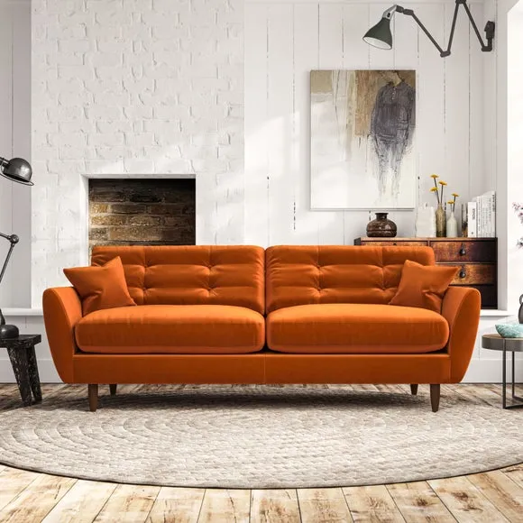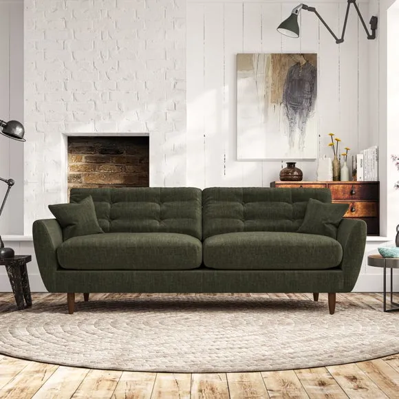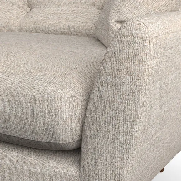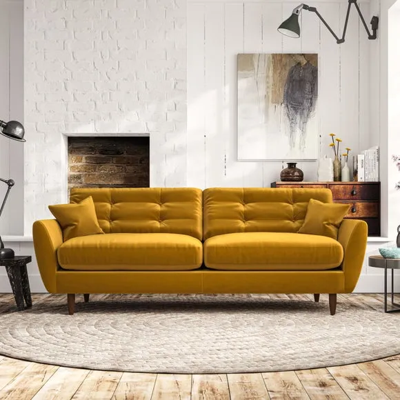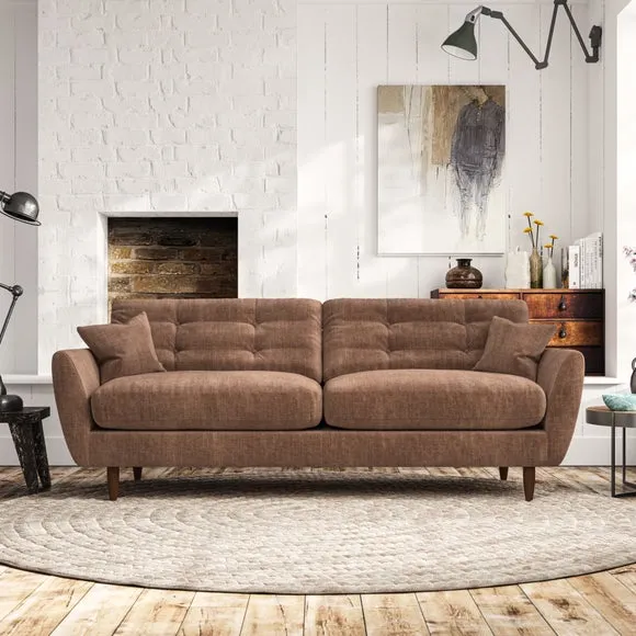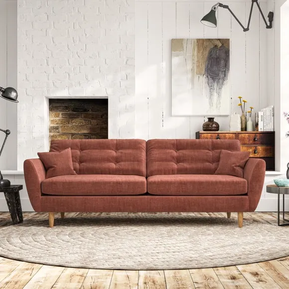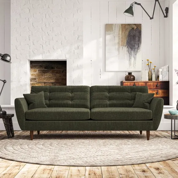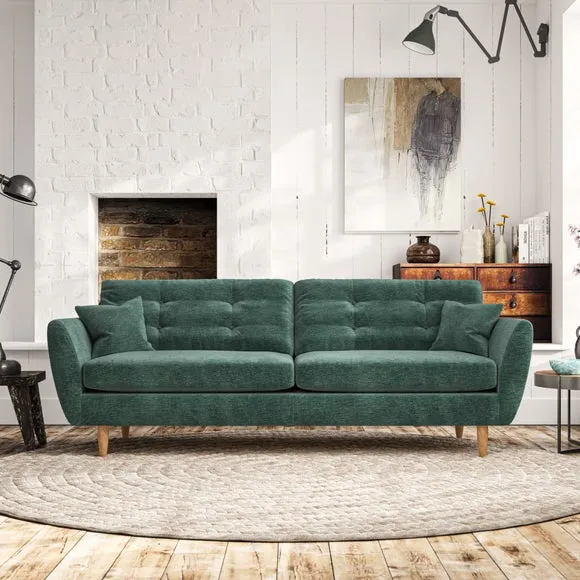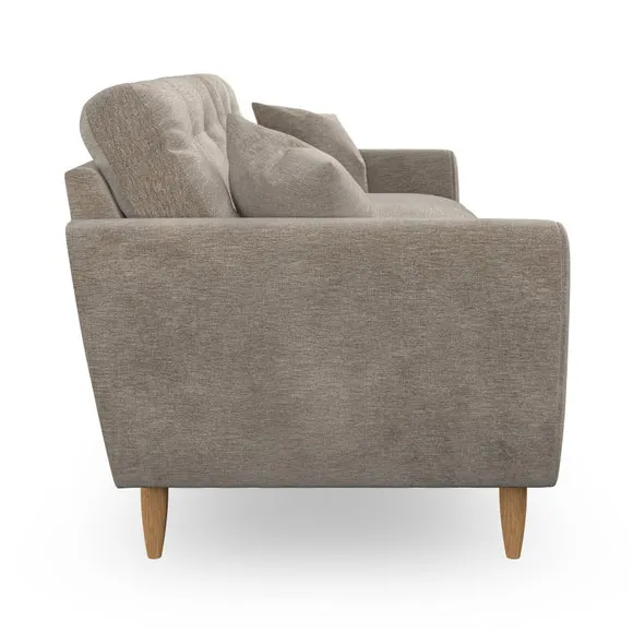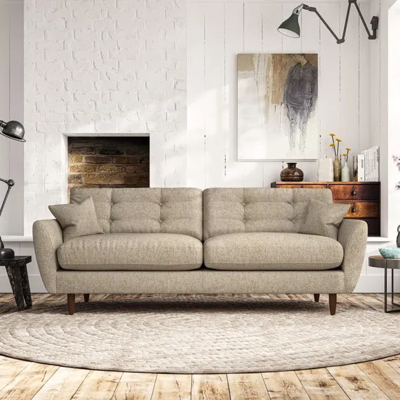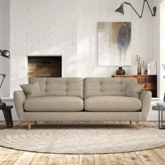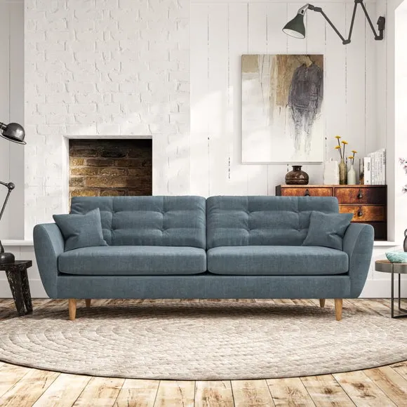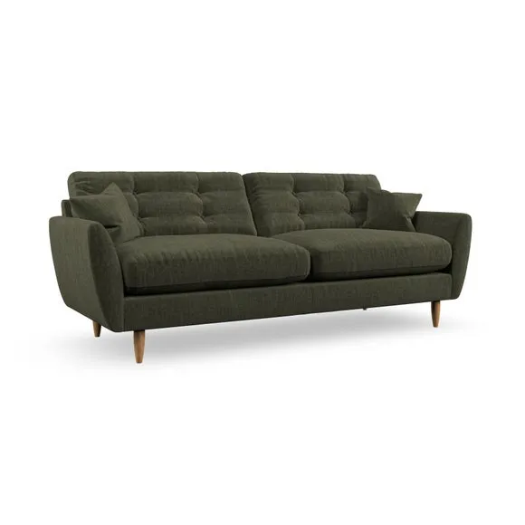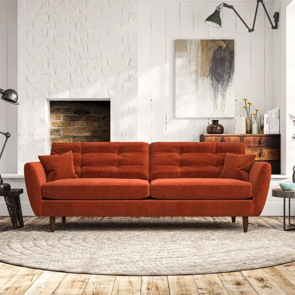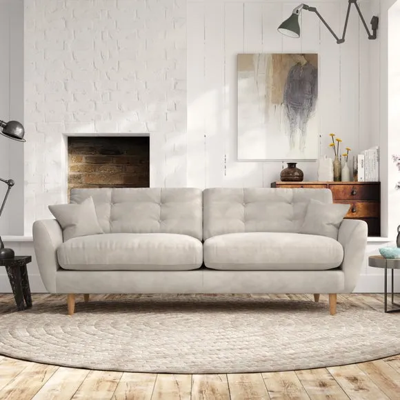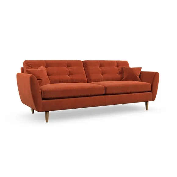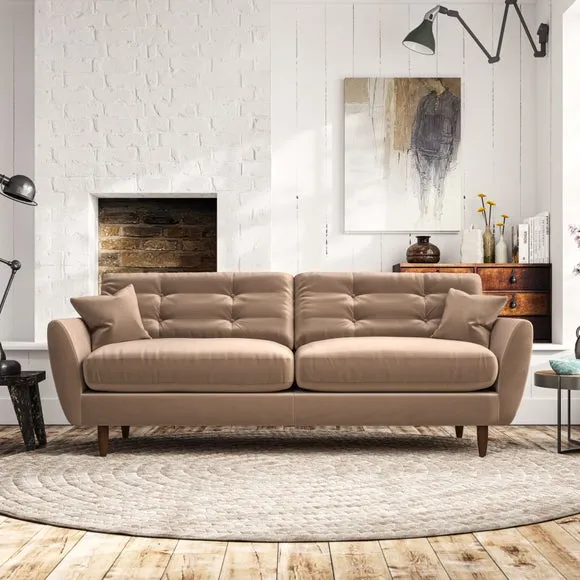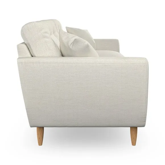 * Scandi design* Tear drop arms* Scatter cushions* Top stitched arm details* Serpentine seat springs* Choose your support, fabric and leg colour The Anders 4 Seater Sofa combines Scandinavian-inspired elegance with spacious comfort, making it the perfect addition to any living space. Its tear-drop shaped arms and fibre-filled scatter cushions offer a refined yet cosy look, while the sleek hardwood legs, available in two finishes, complete the stylish design. The fibre-filled back cushions, featuring a double-row button pull detail, provide both support and a touch of sophistication. For your ideal seating experience, choose between a supportive foam seat or a more relaxed and inviting fibre seat.