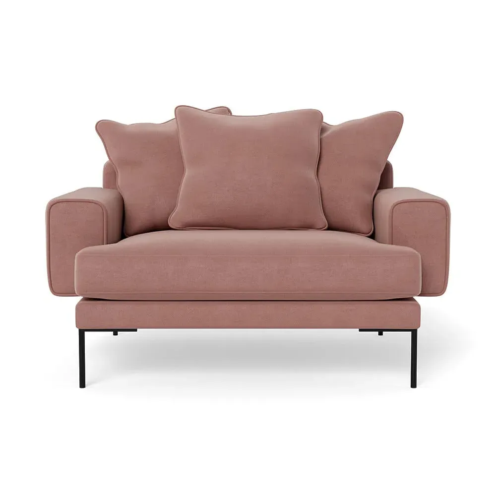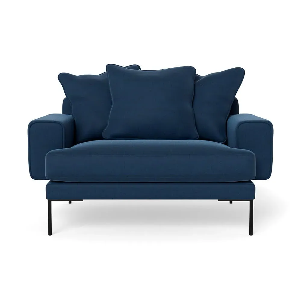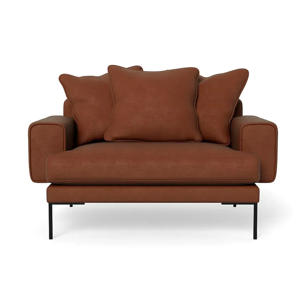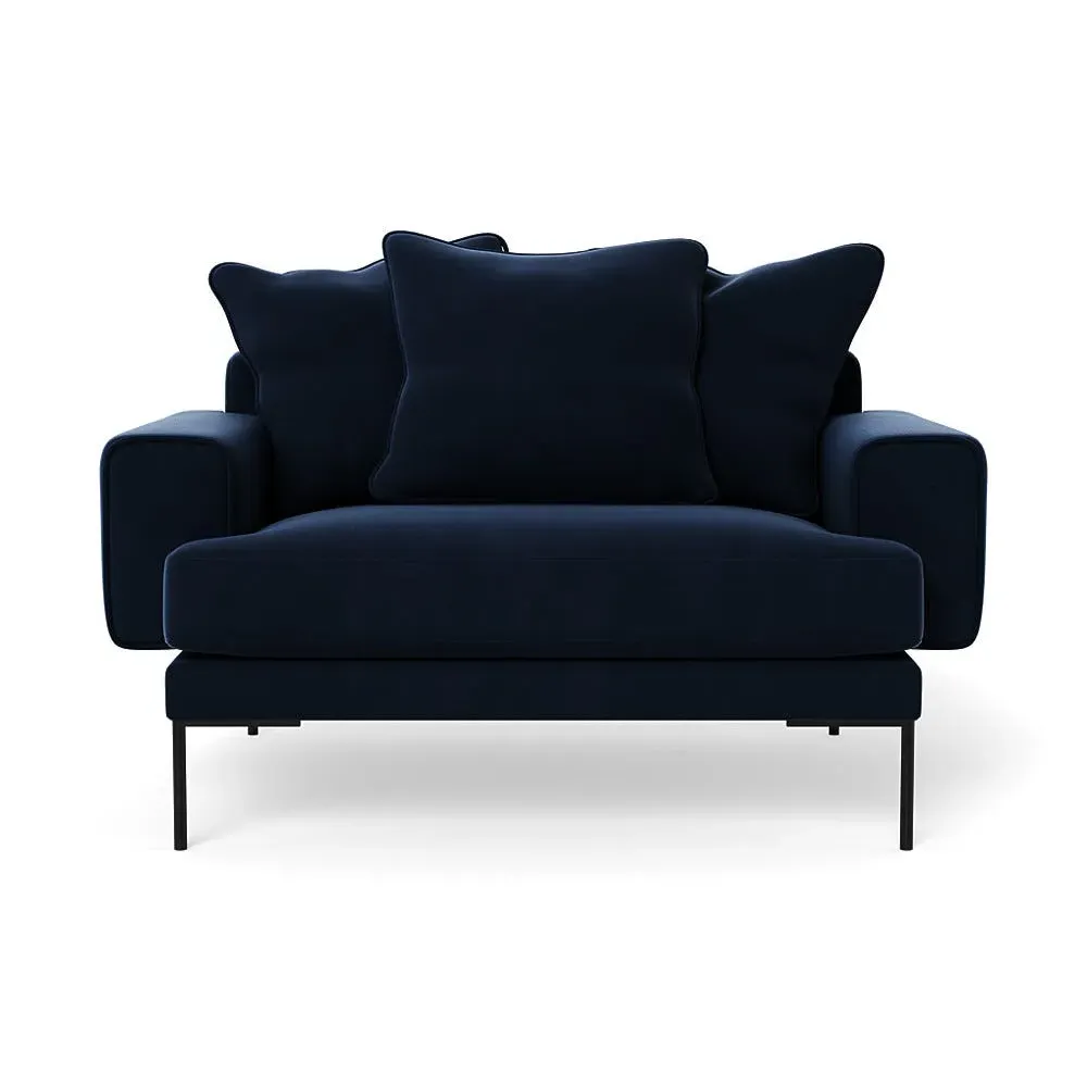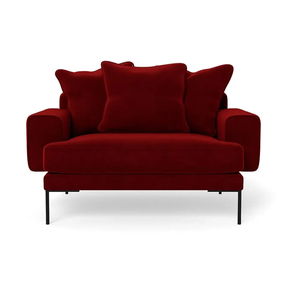 The loveseat combines comfort with its plush brushed cotton upholstery, featuring a rich pine green finish. Its cozy two-seater design provides intimate seating, while the black feet add modern contrast. The brushed cotton fabric offers enhanced softness and warmth, and the solid frame ensures reliable support.