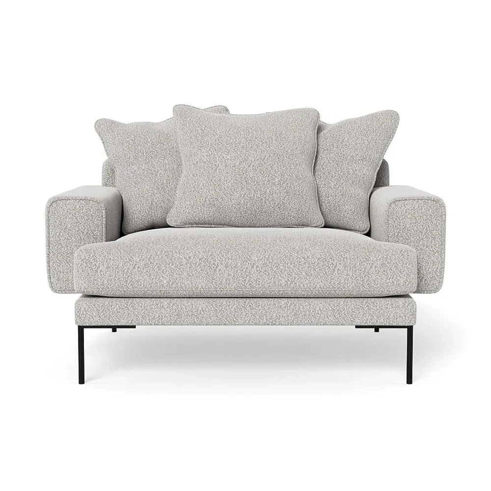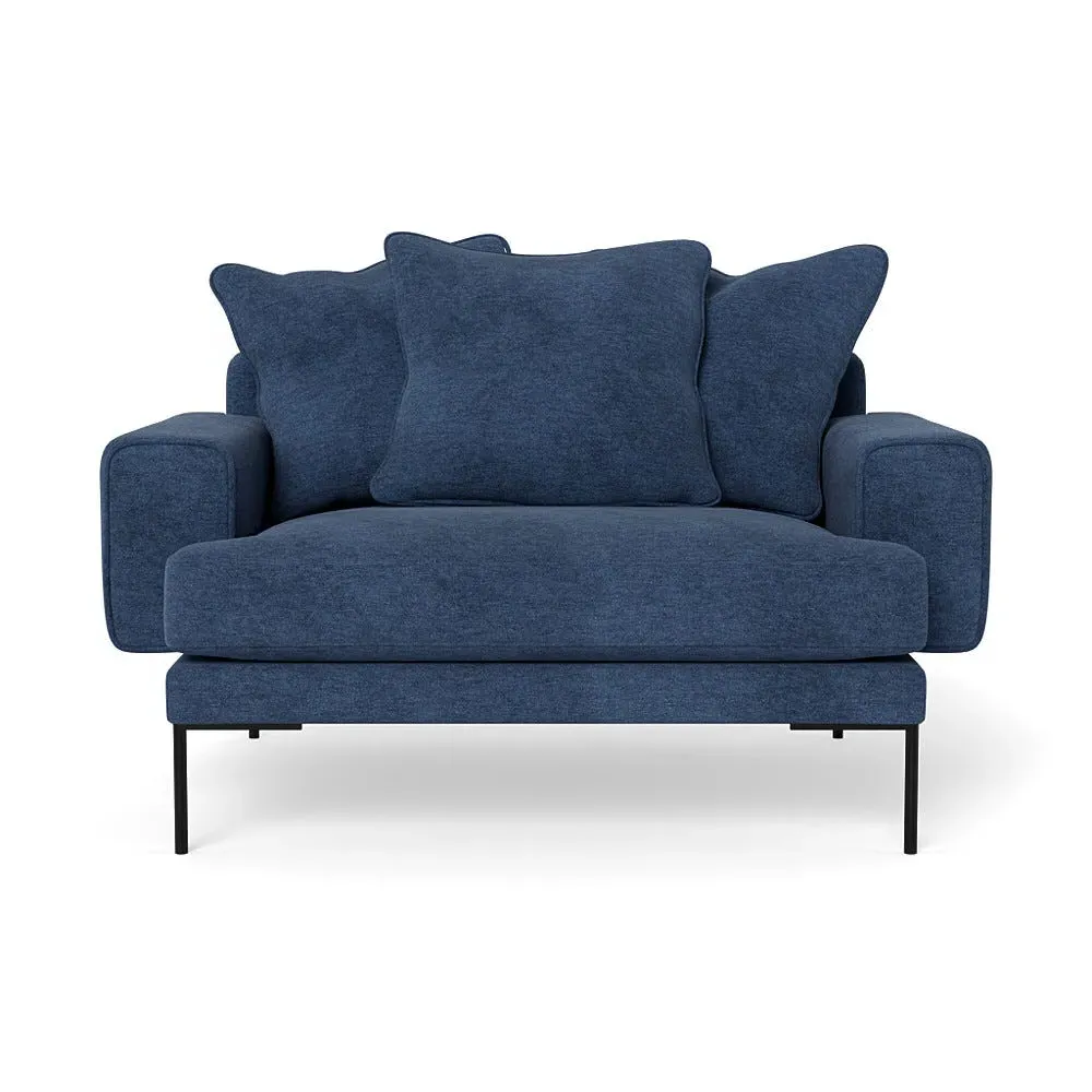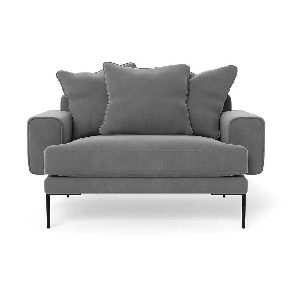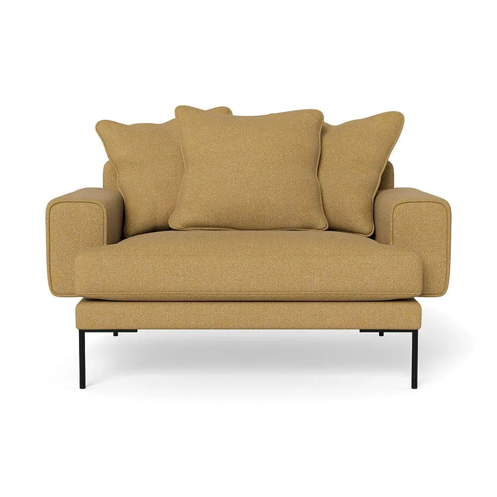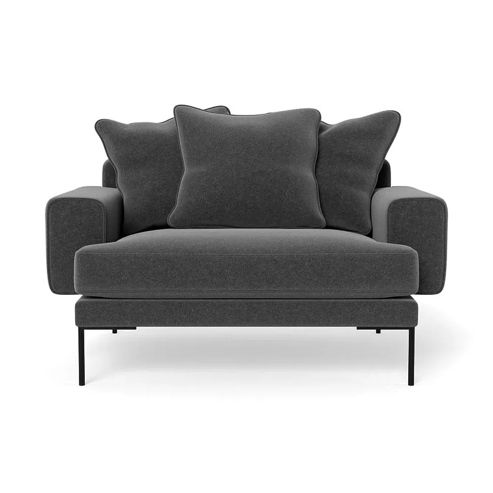 The loveseat combines comfort with its plush brushed cotton upholstery, featuring a rich pine green finish. Its cozy two-seater design provides intimate seating, while the black feet add modern contrast. The brushed cotton fabric offers enhanced softness and warmth, and the solid frame ensures reliable support.