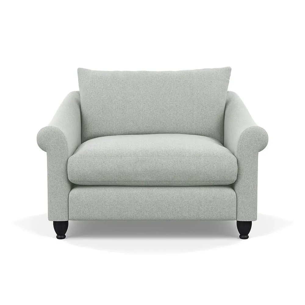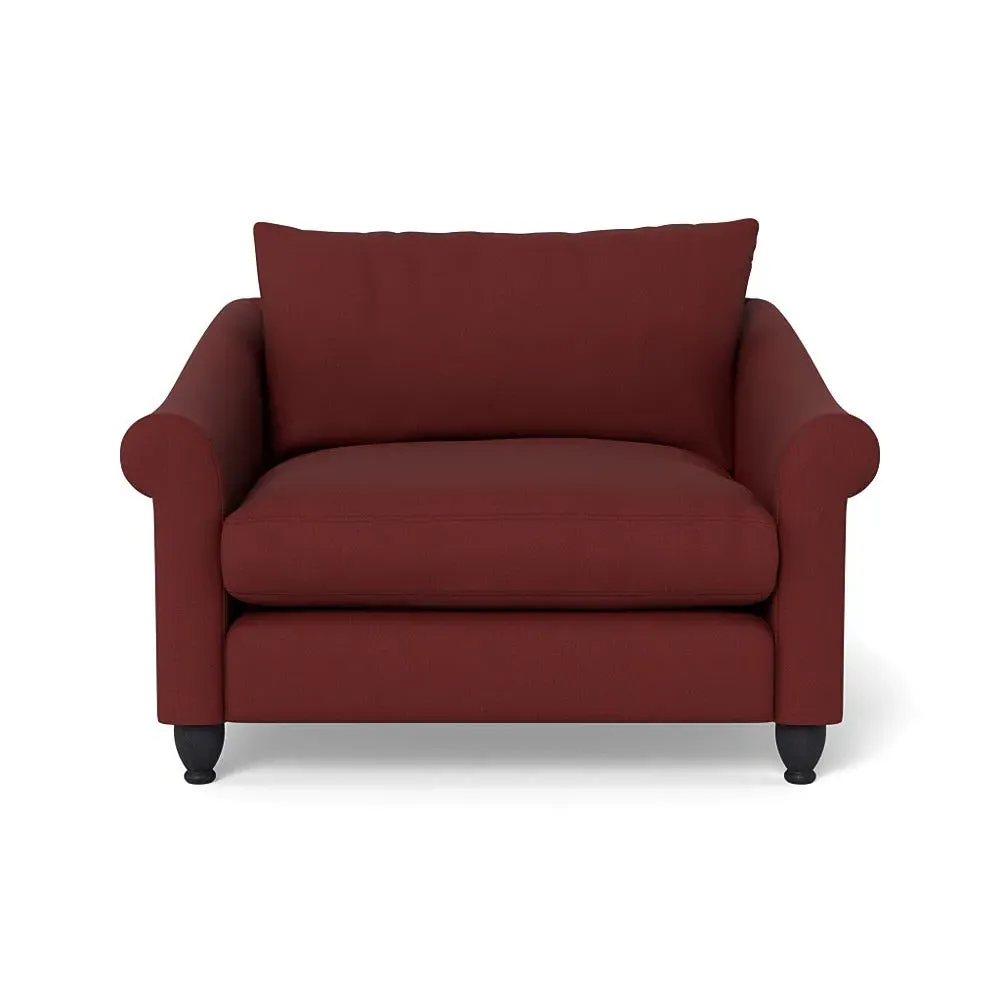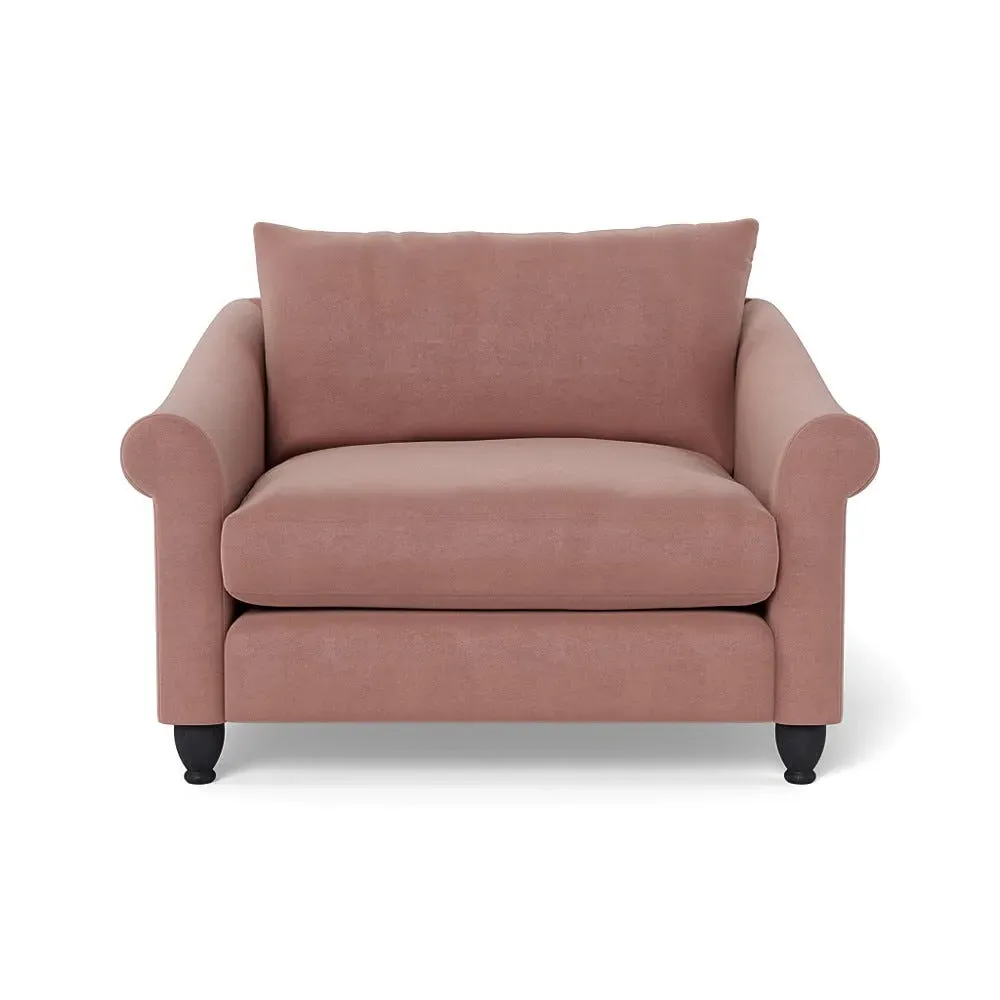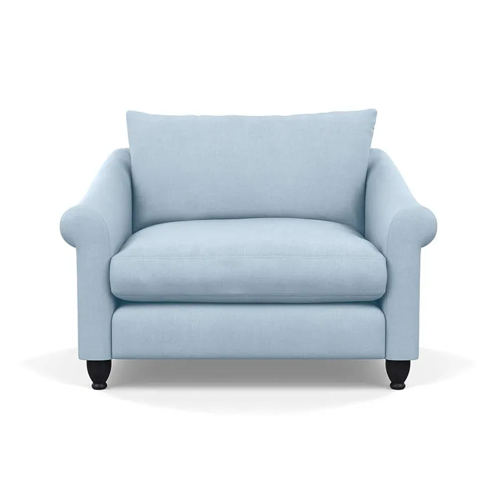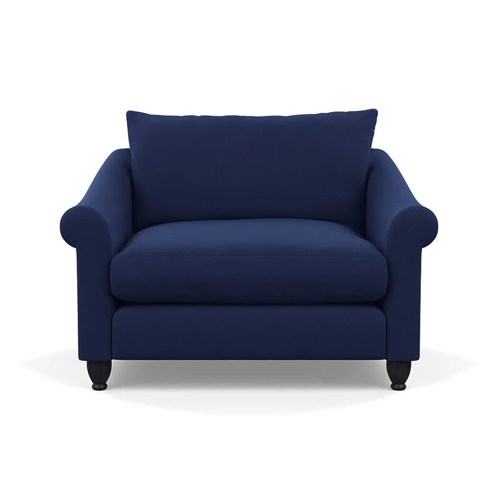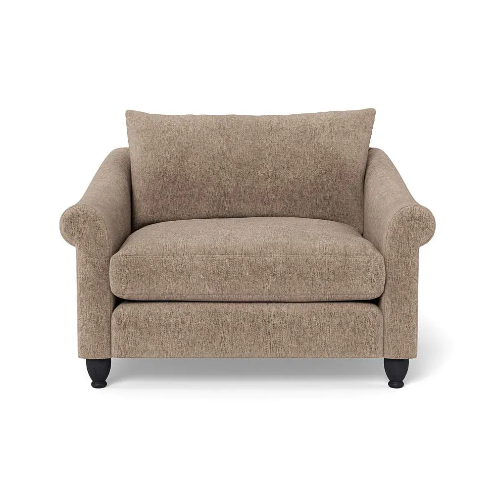The loveseat provides comfortable seating with its brushed cotton upholstery, supported by black-stained beech feet. Its compact two-seater design offers intimate seating, while the durable cotton construction adds lasting quality. The sturdy frame ensures reliable support for daily use.
