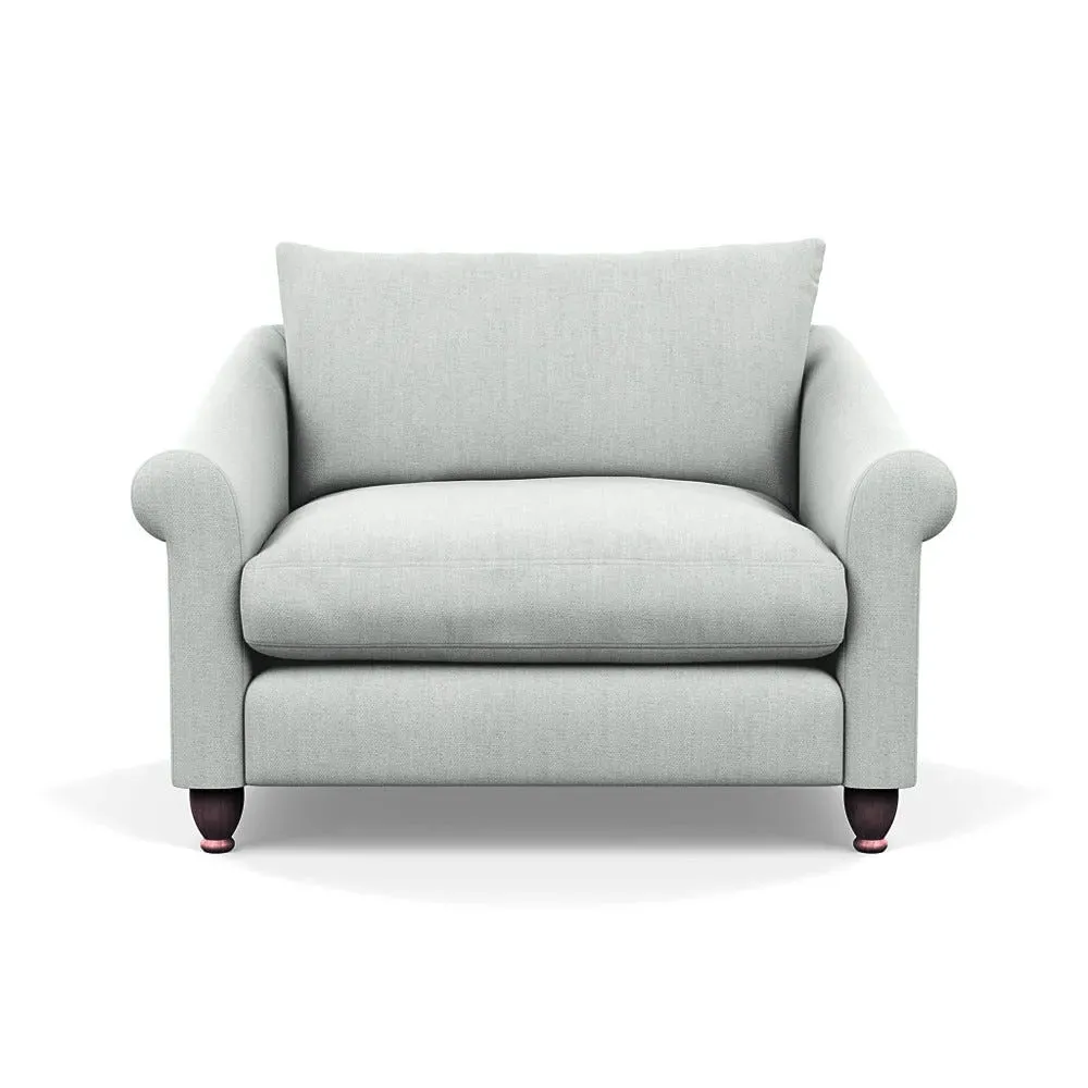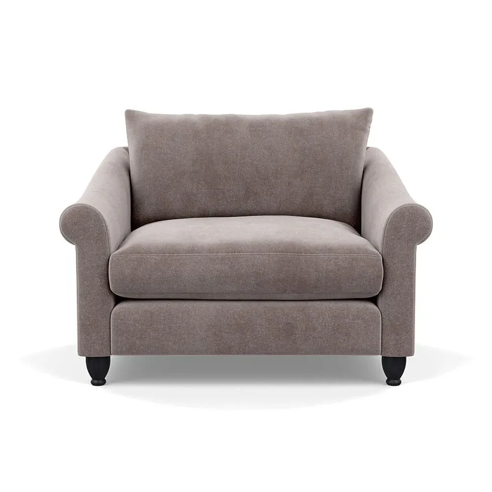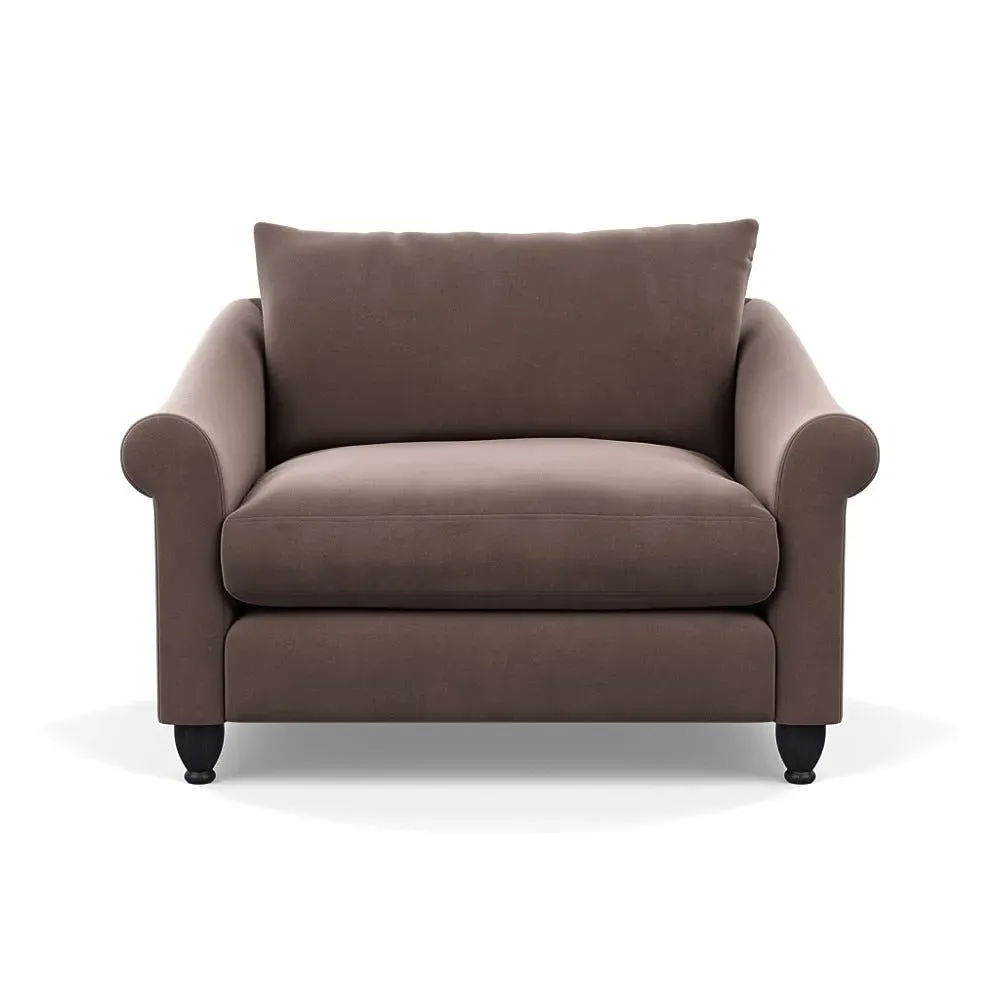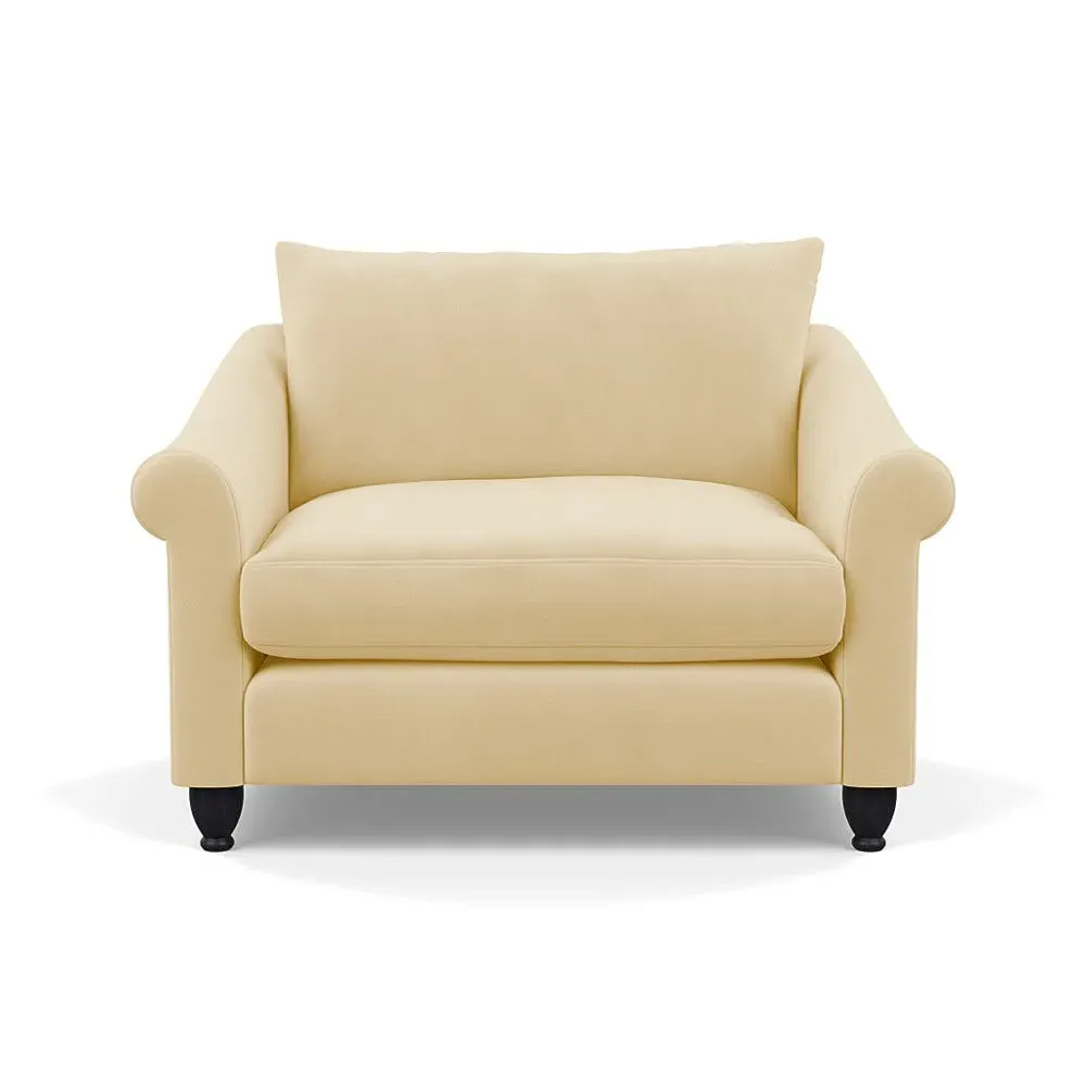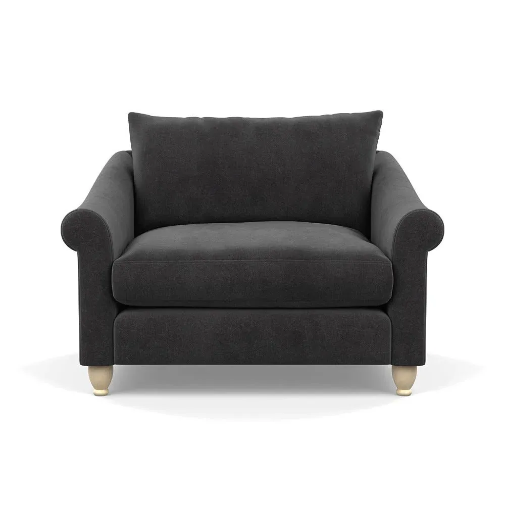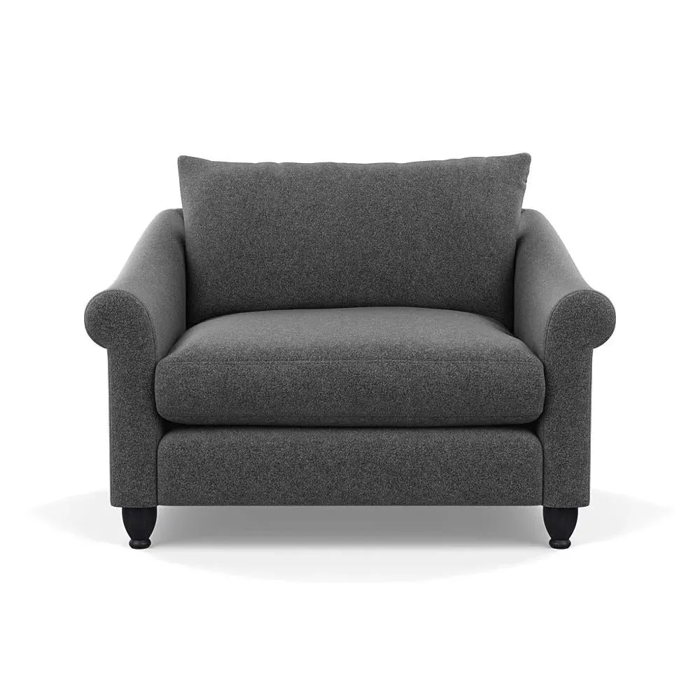 The loveseat provides comfortable seating with its brushed cotton upholstery, supported by black-stained beech feet. Its compact two-seater design offers intimate seating, while the durable cotton construction adds lasting quality. The sturdy frame ensures reliable support for daily use.