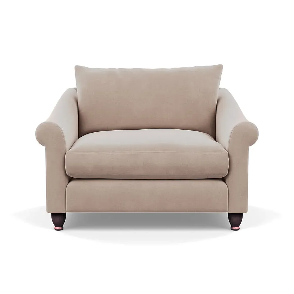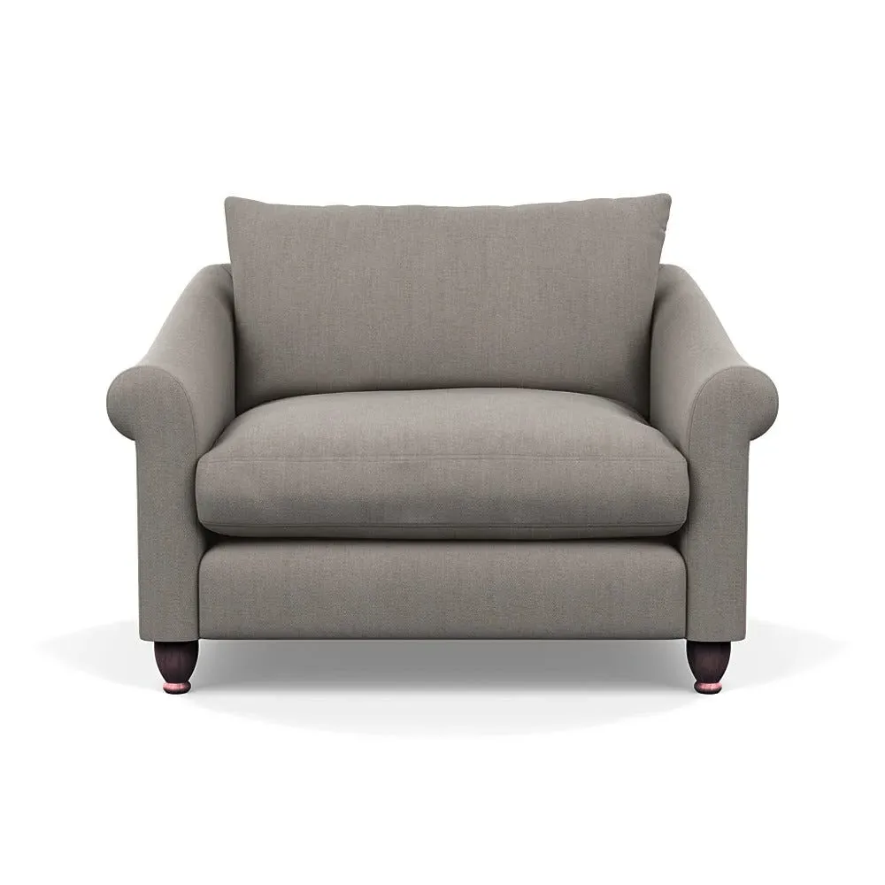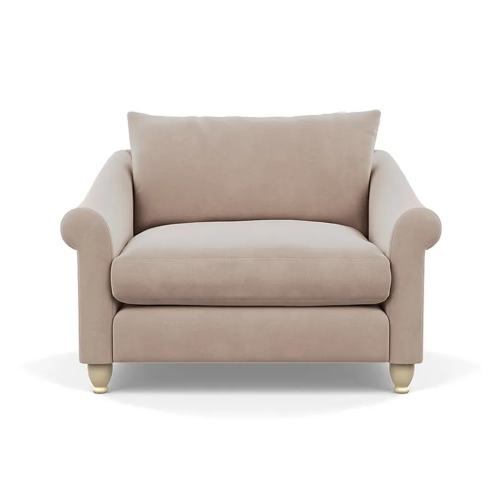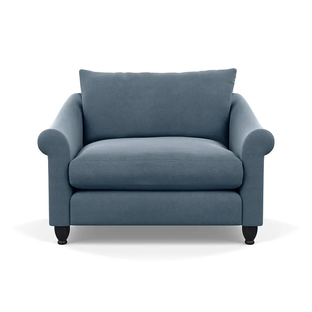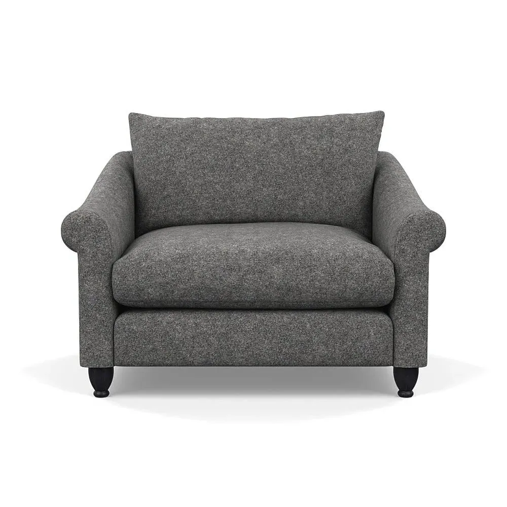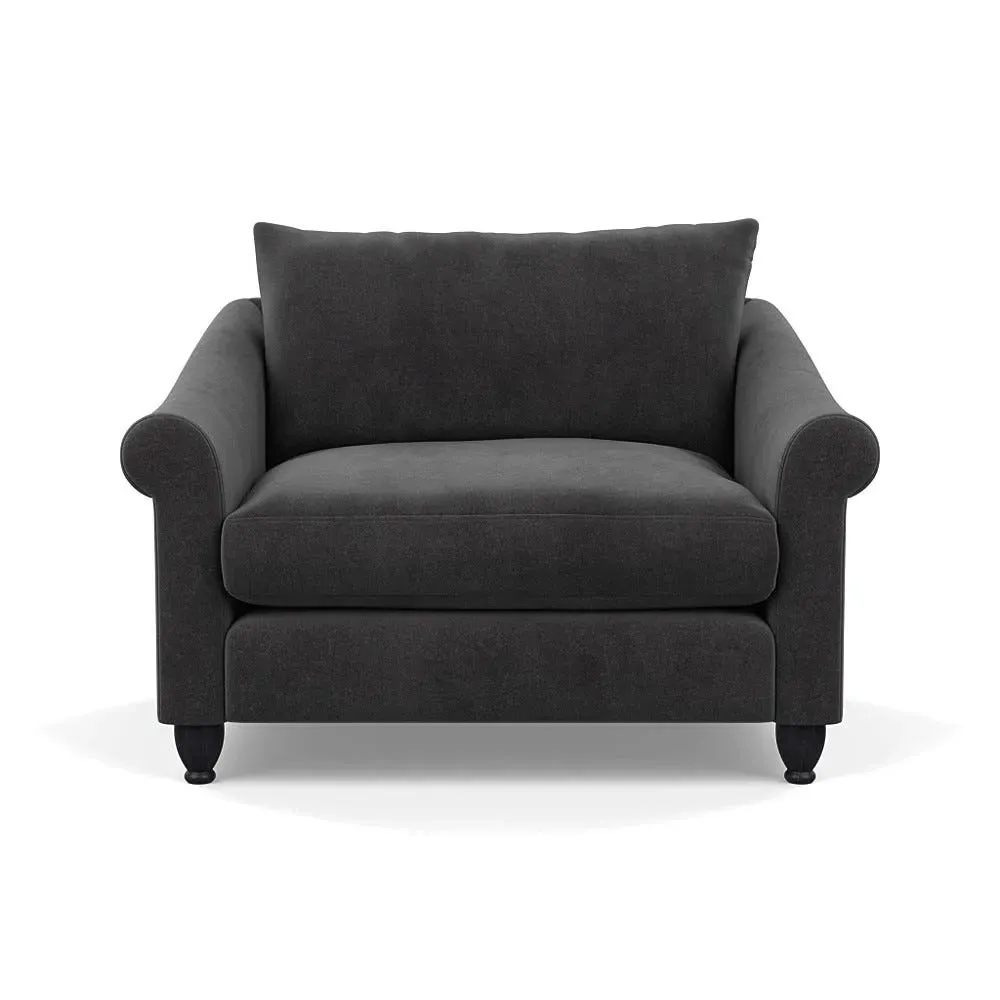 The loveseat provides comfortable seating with its brushed cotton upholstery, supported by black-stained beech feet. Its compact two-seater design offers intimate seating, while the durable cotton construction adds lasting quality. The sturdy frame ensures reliable support for daily use.