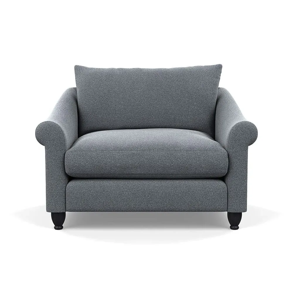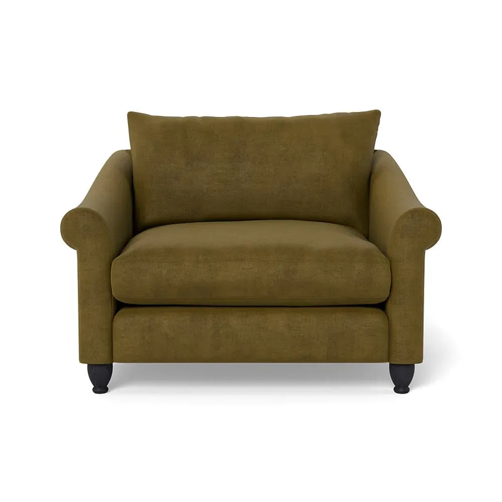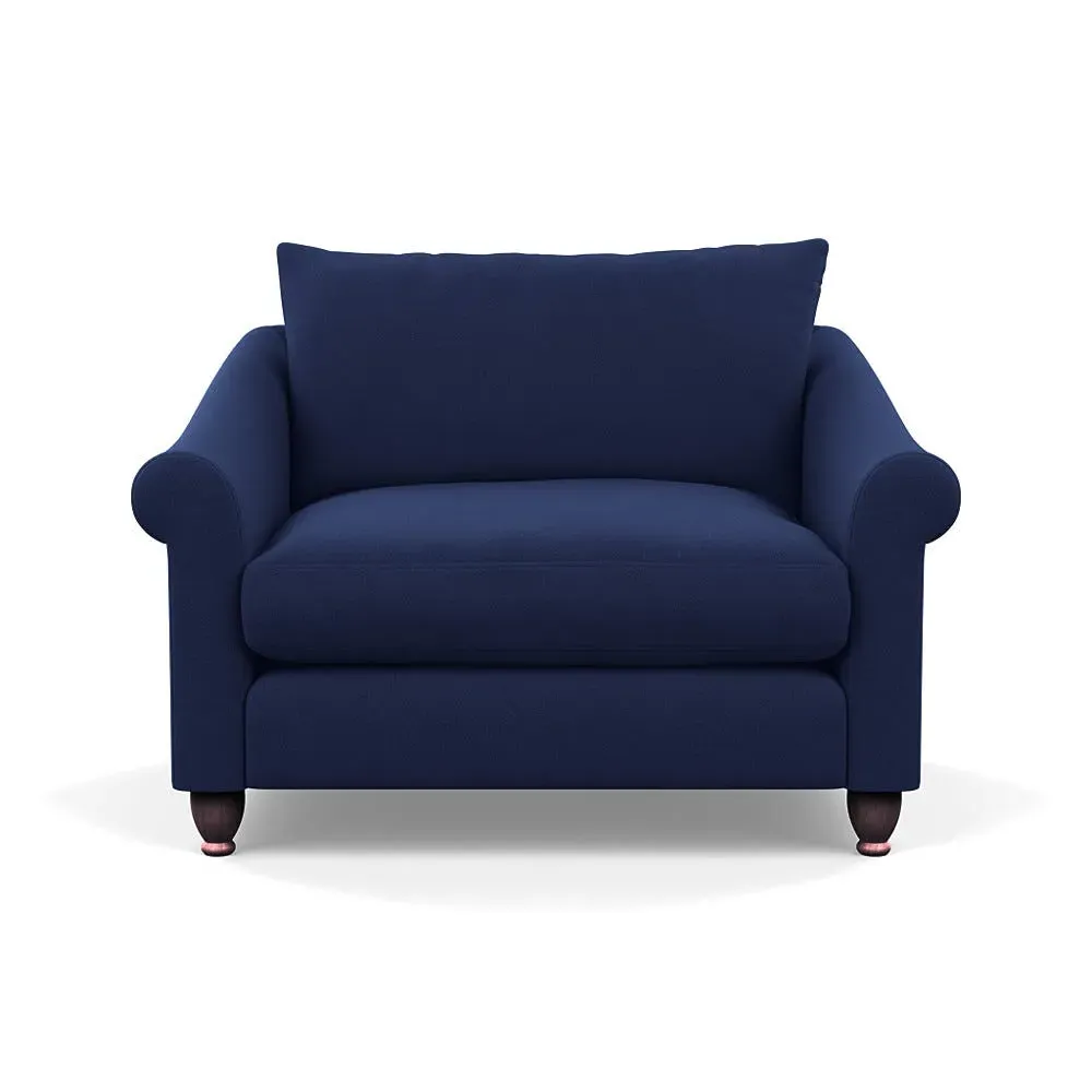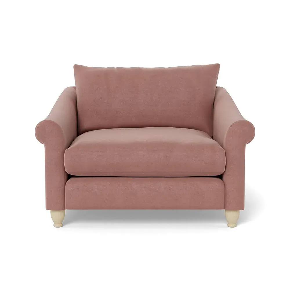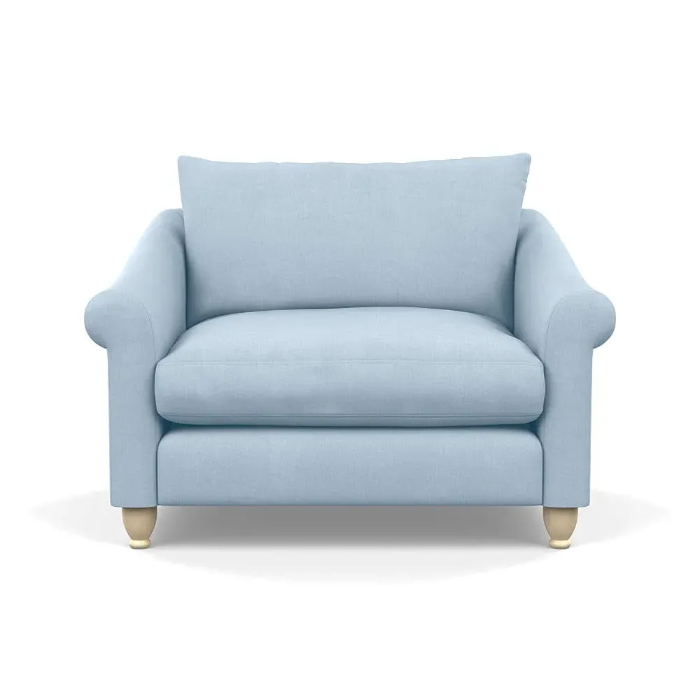The loveseat provides comfortable seating with its brushed cotton upholstery, supported by black-stained beech feet. Its compact two-seater design offers intimate seating, while the durable cotton construction adds lasting quality. The sturdy frame ensures reliable support for daily use.